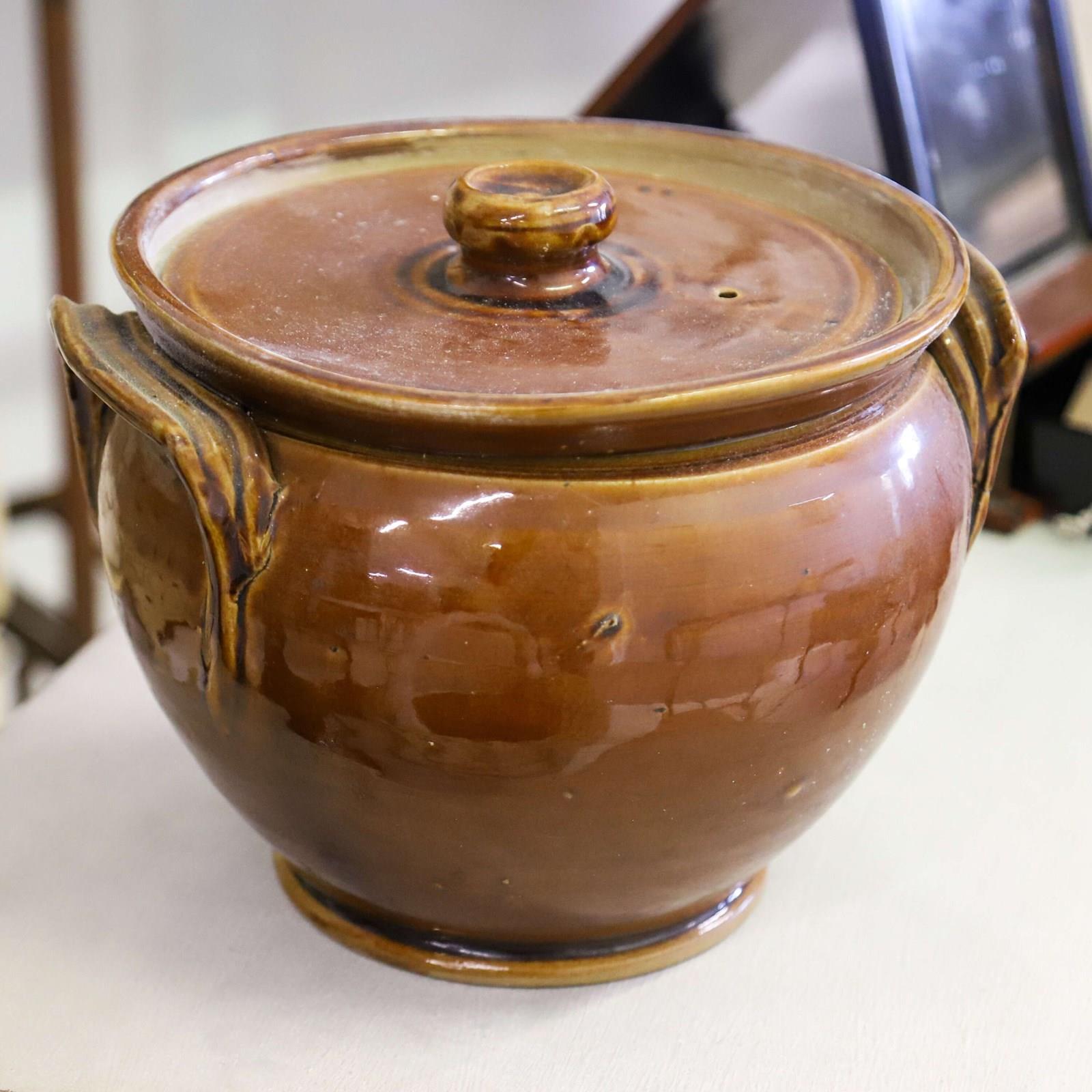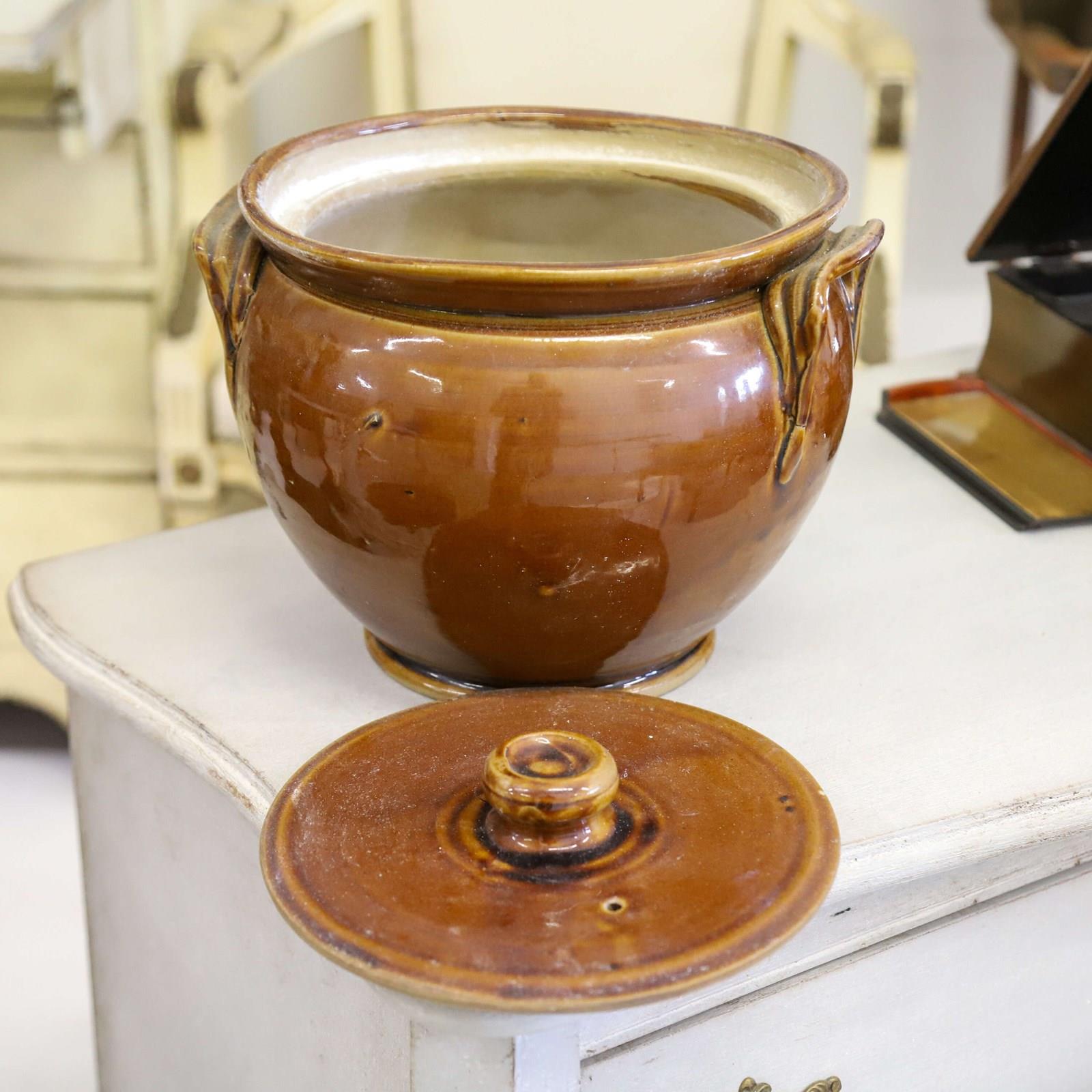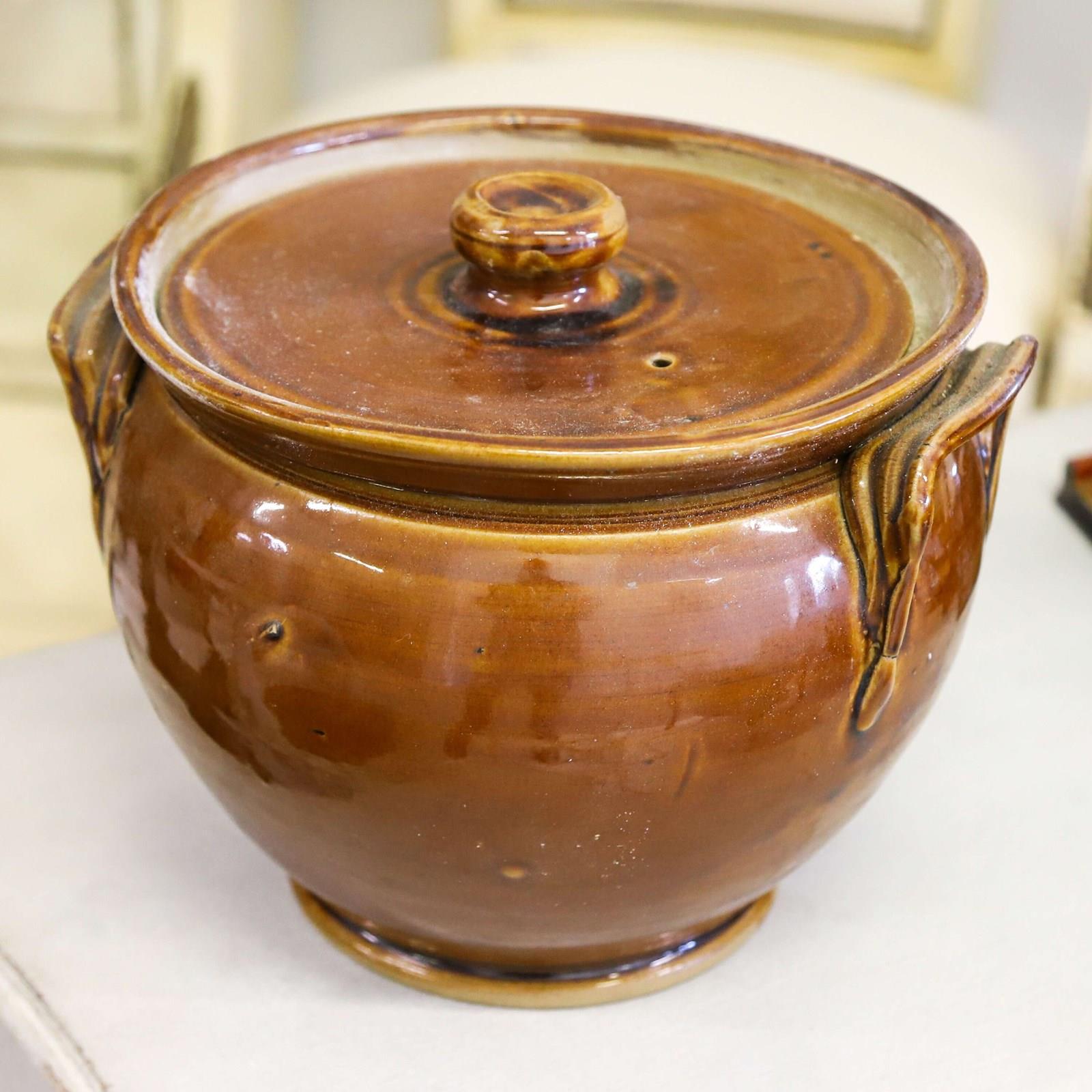 French Early 20th Century Terre de Fer Brown Glazed Serving Bowl or Flour Bowl with Lid