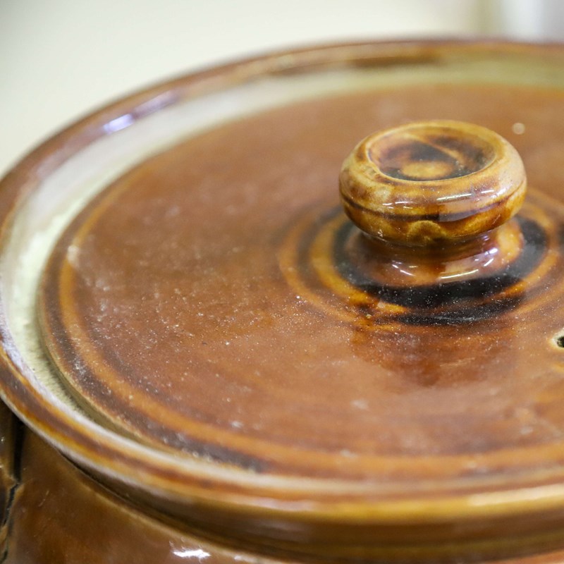 French Early 20th Century brown glazed Terre de Fer serving bowl with lid