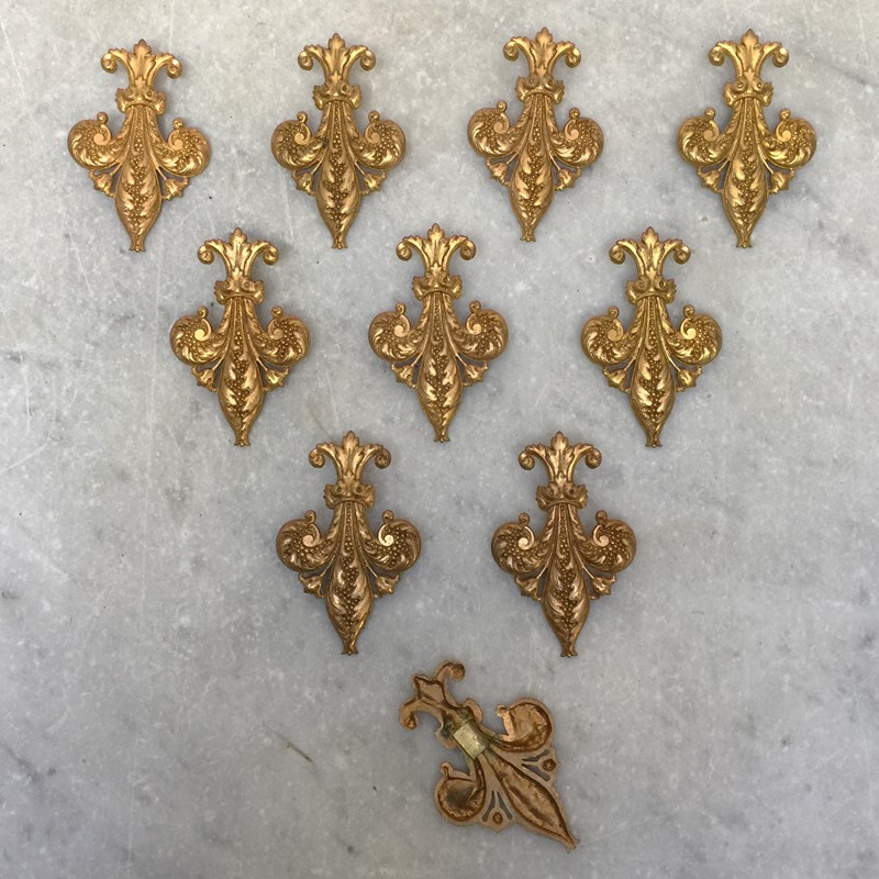 Lovely set of ten 'Prince Of Wales Feather' Repousse Furniture trims