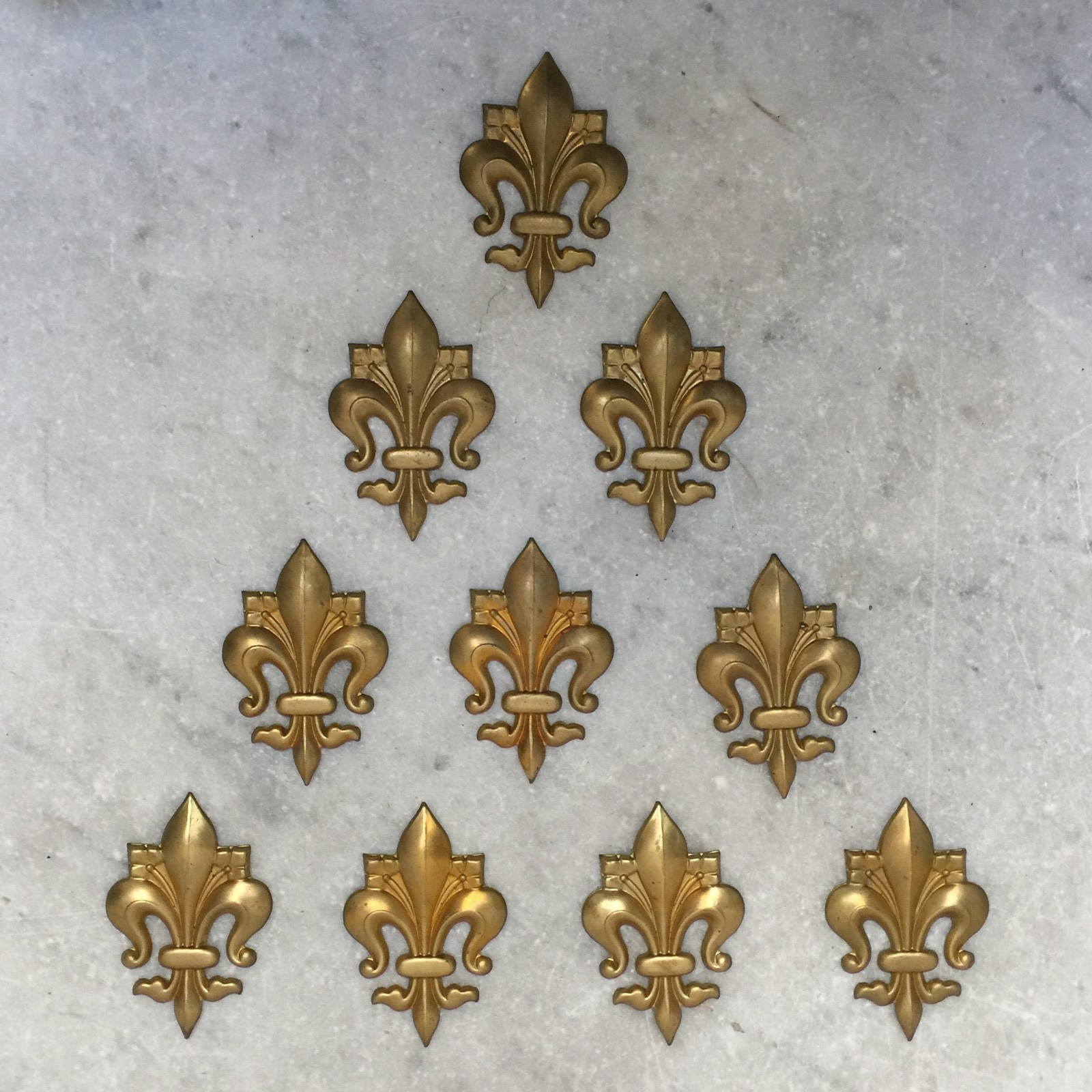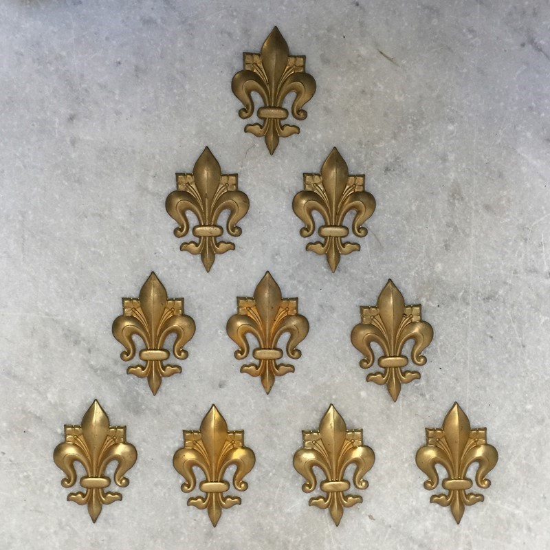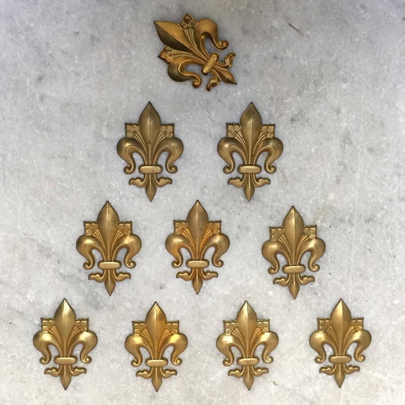 Set Of Ten Brass 'Fleur De Lis' Applique Mounts
