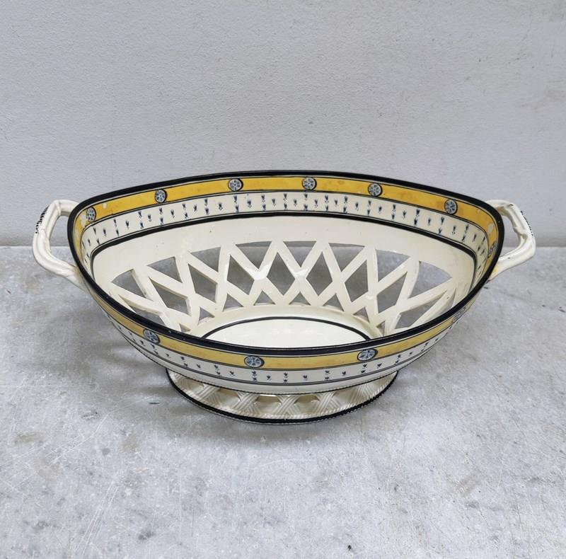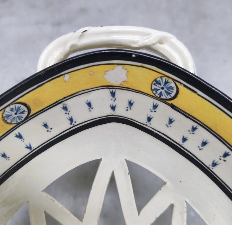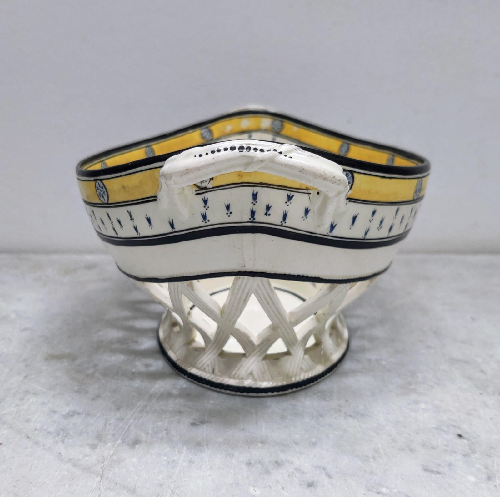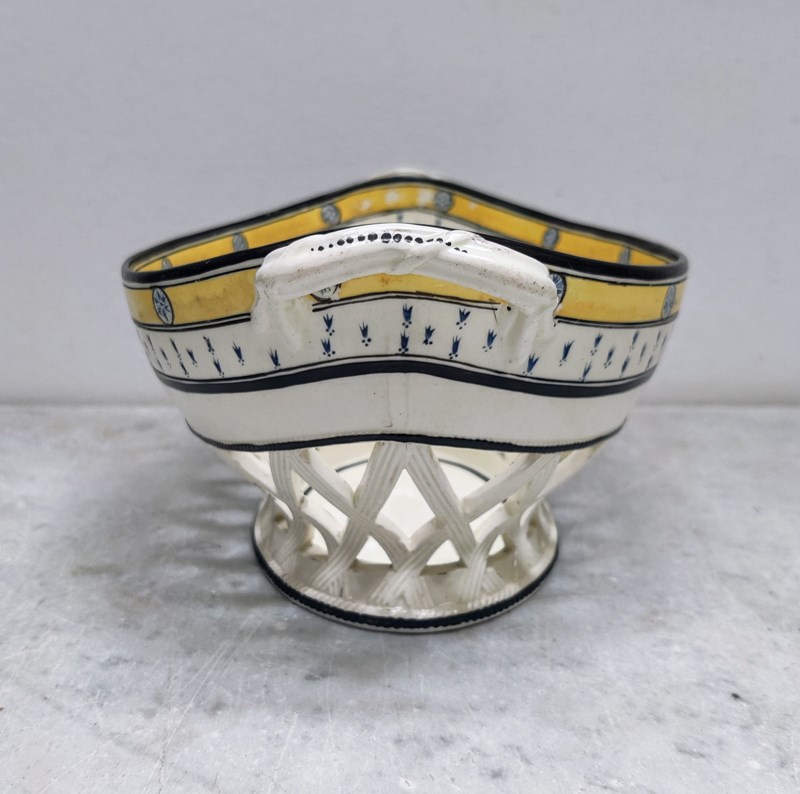 Very rare Creamware basket, probably by Elijah Mayer & Son, Hanley, Staffordshire, enamelled in Yellow, Blue and Black