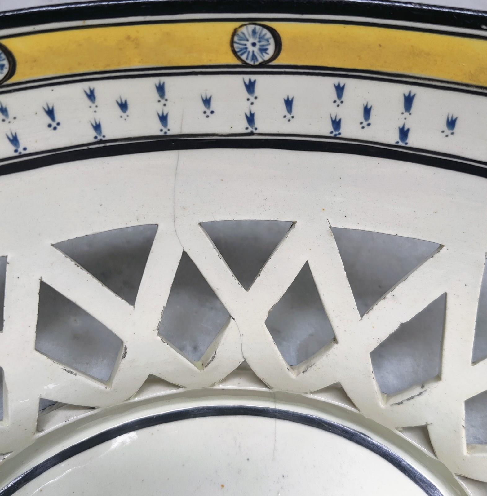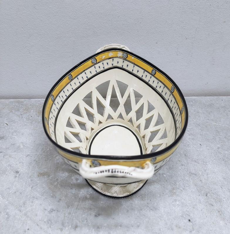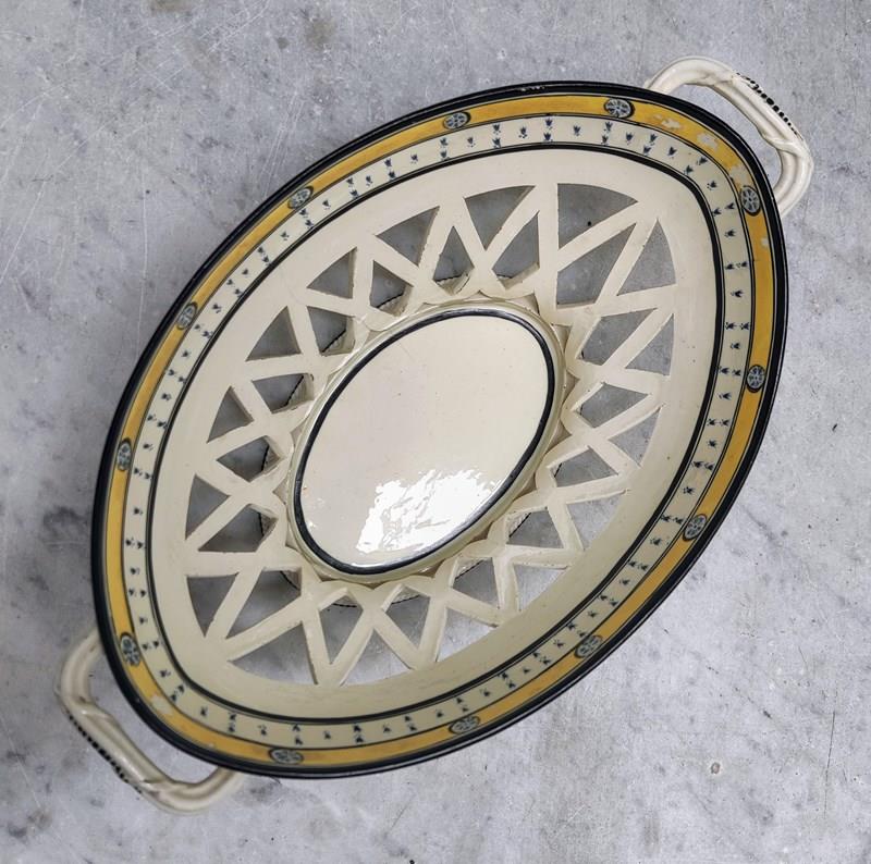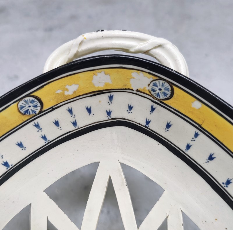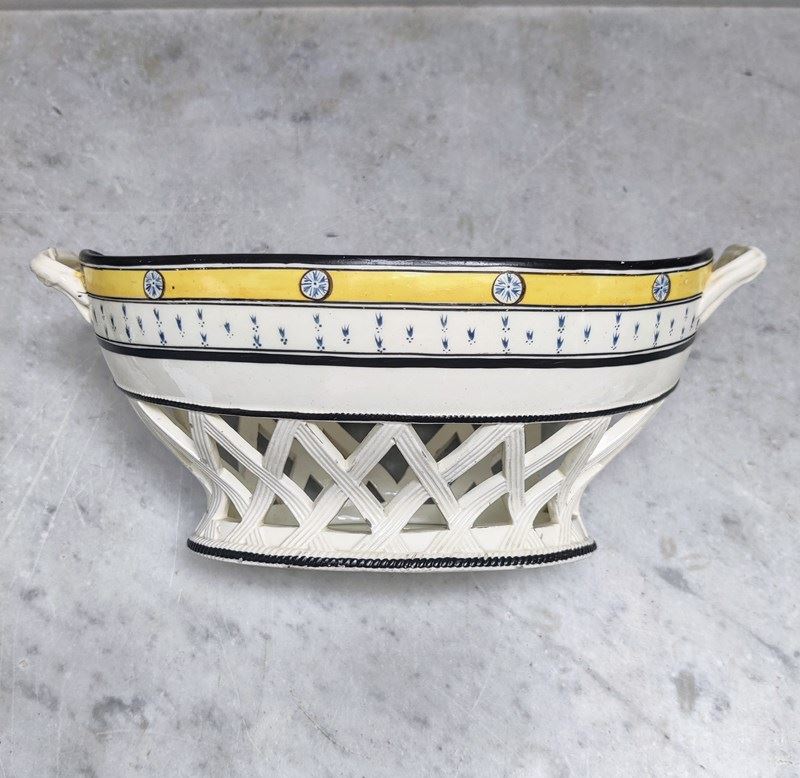 Very rare Creamware basket, probably by Elijah Mayer & Son, Hanley, Staffordshire, enamelled in Yellow, Blue and Black