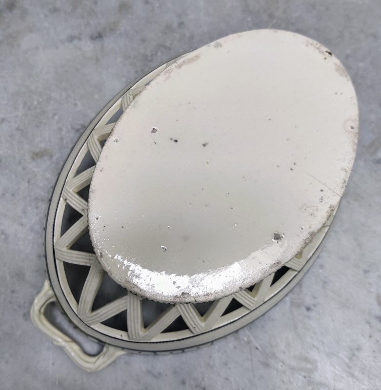 In very good condition considering its age, no chips, slight patches of yellow enamelling missing- images 8 & 9, a fine hairline through the basket, images 10 & 11
