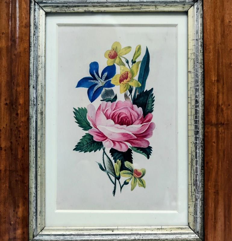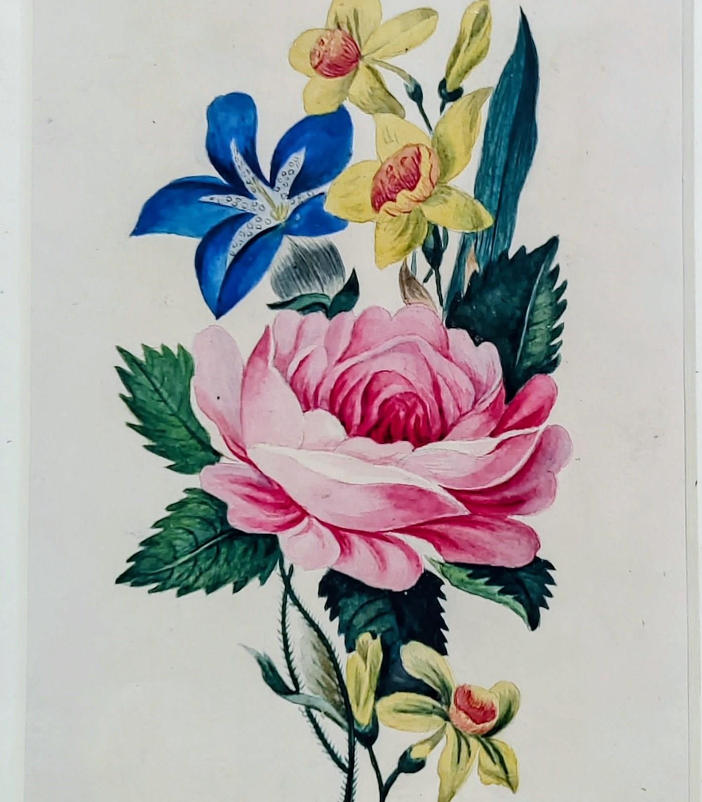 Lovely Georgian floral watercolour, a spray of Roses, Narcissi and Morning Glory