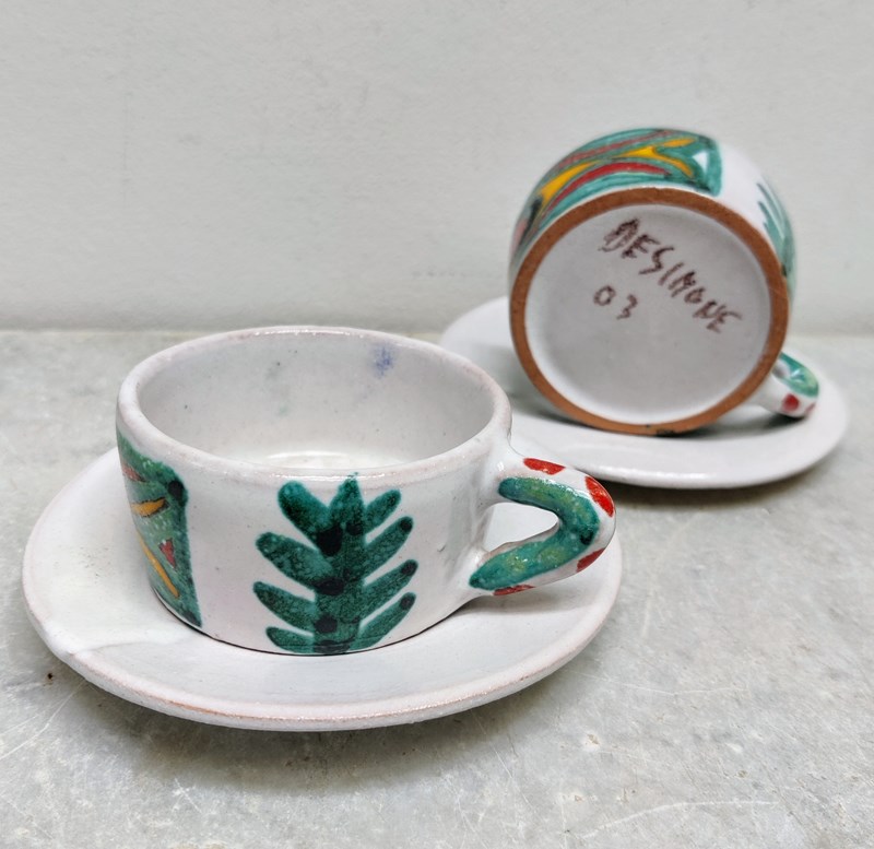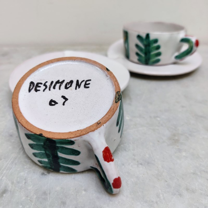 A Rare Pair Of 1960'S Desimone Cups & Saucers