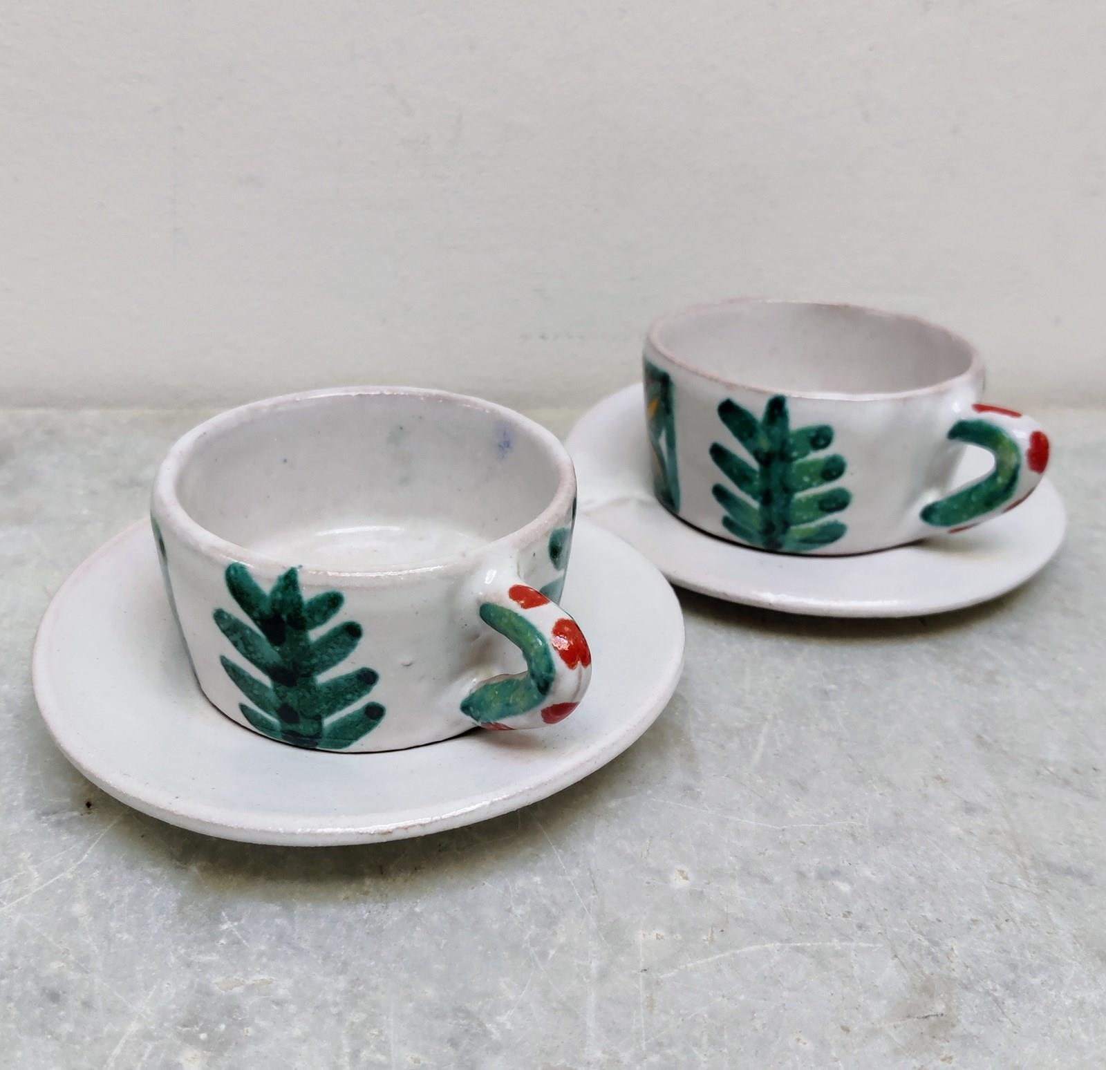 Wonderful Italian 1960's 'DESIMONE' pair of pottery Coffee Cups & Saucers, Picasso Inspired.