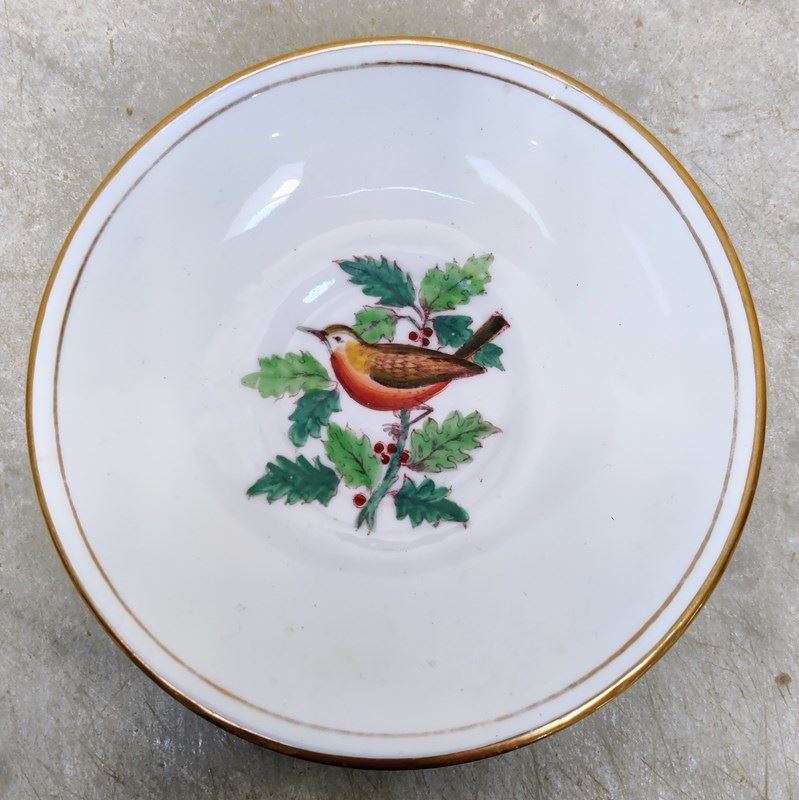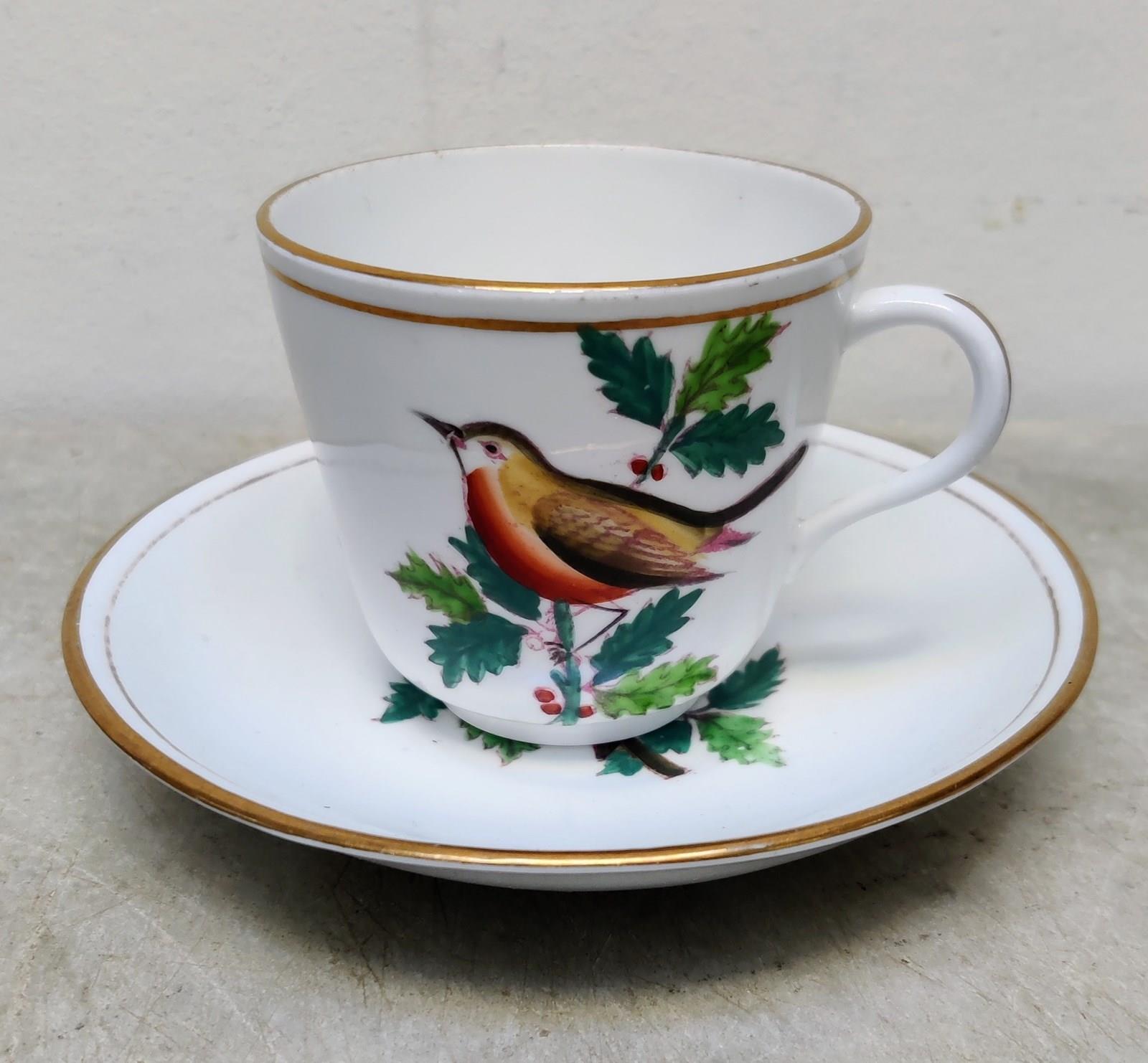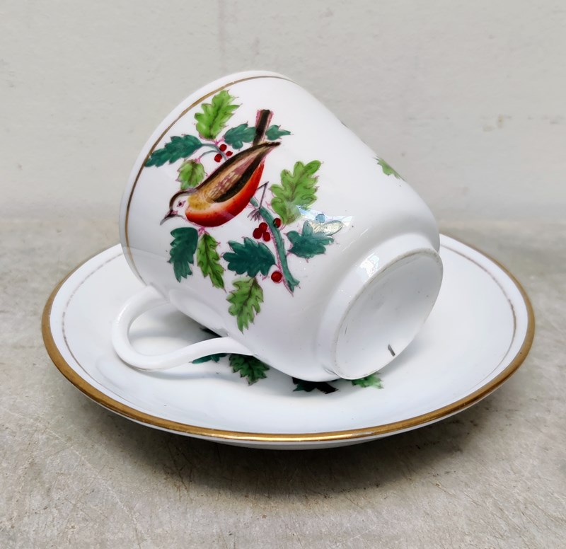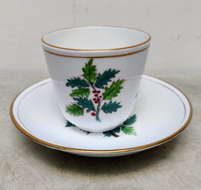 A very pretty 19th century porcelain cup and saucer hand painted with Holly and Robins