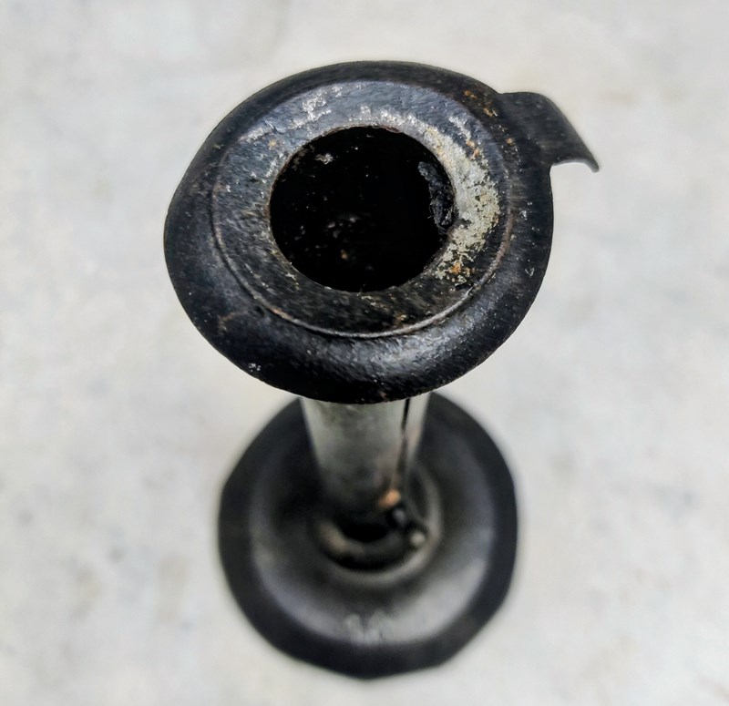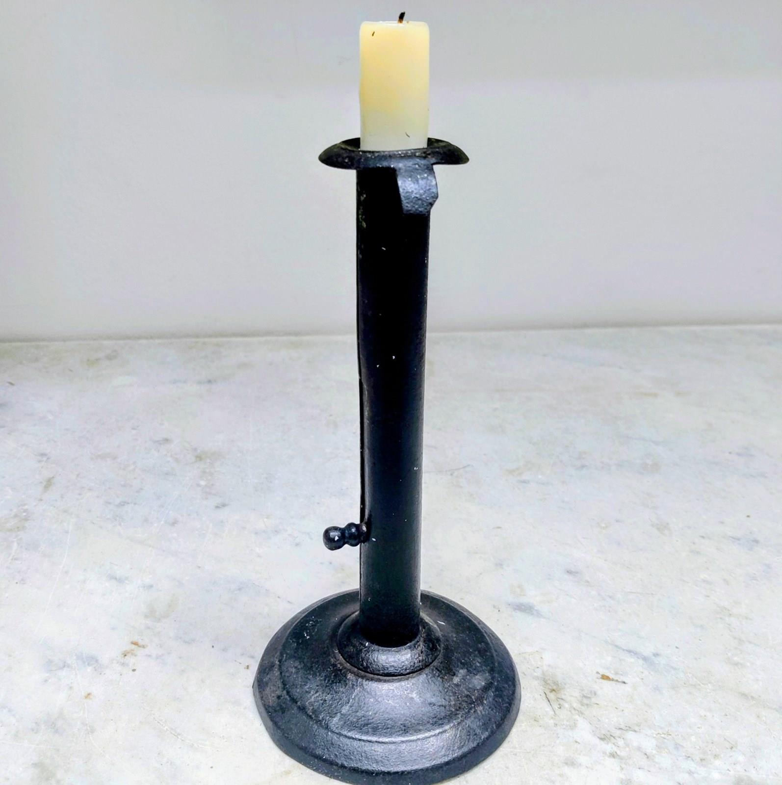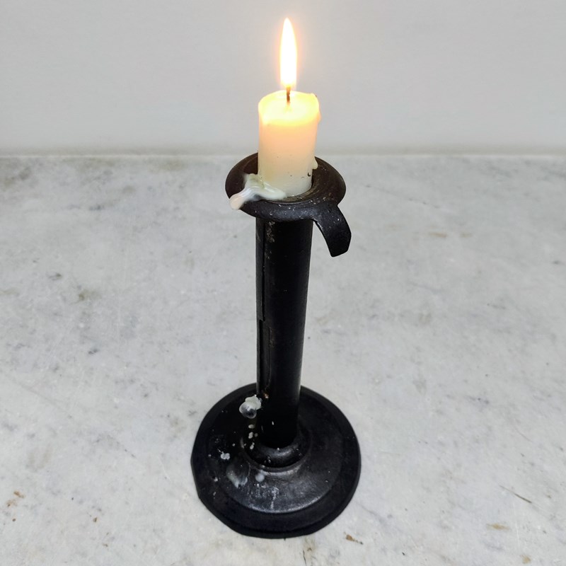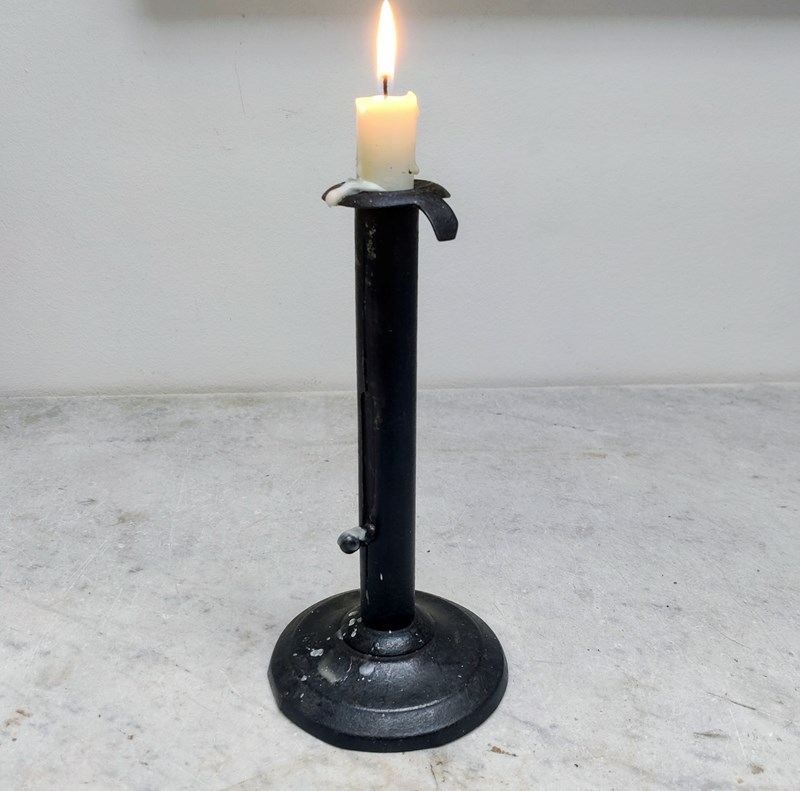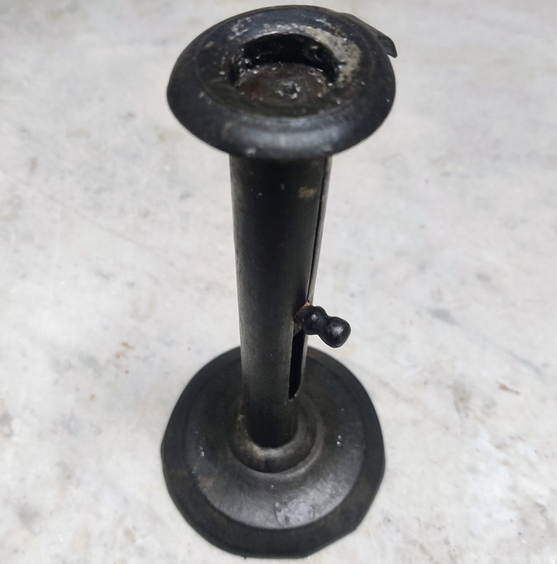 Pretty tin ‘push-up’ candlestick with a lever on the side to lift the candle upwards when it burns down