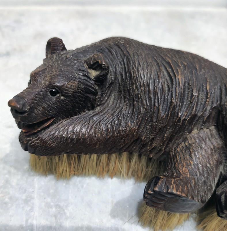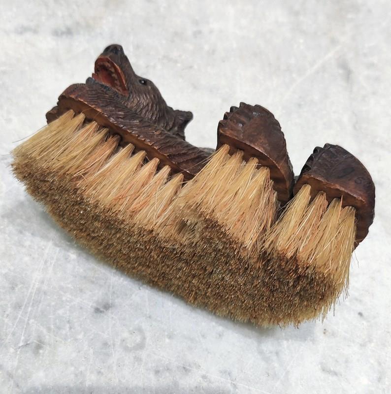 Finely Carved German Folk Art 'Schwarzwald' Bear Brush