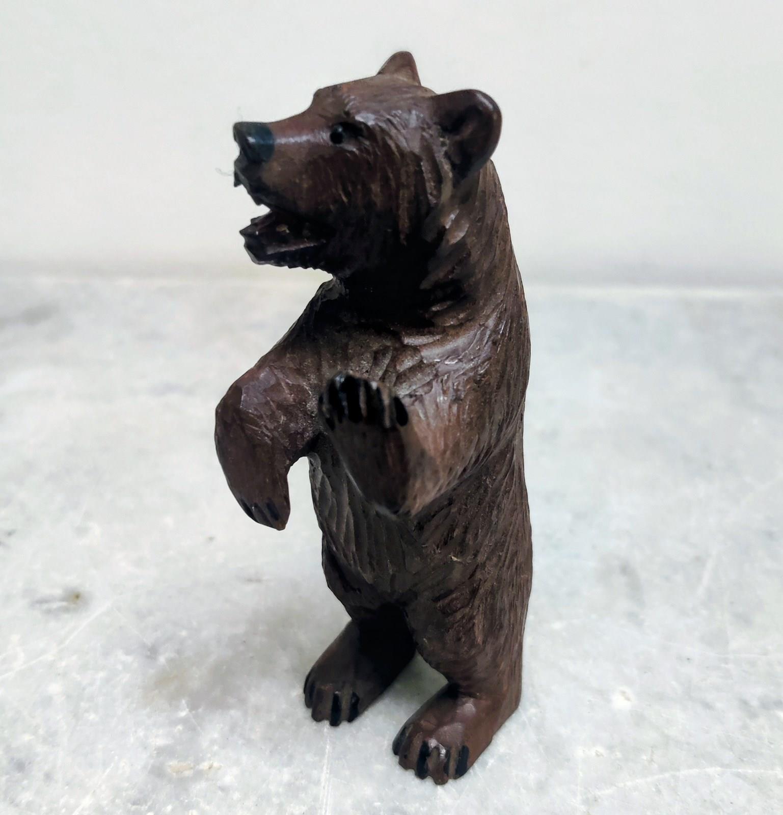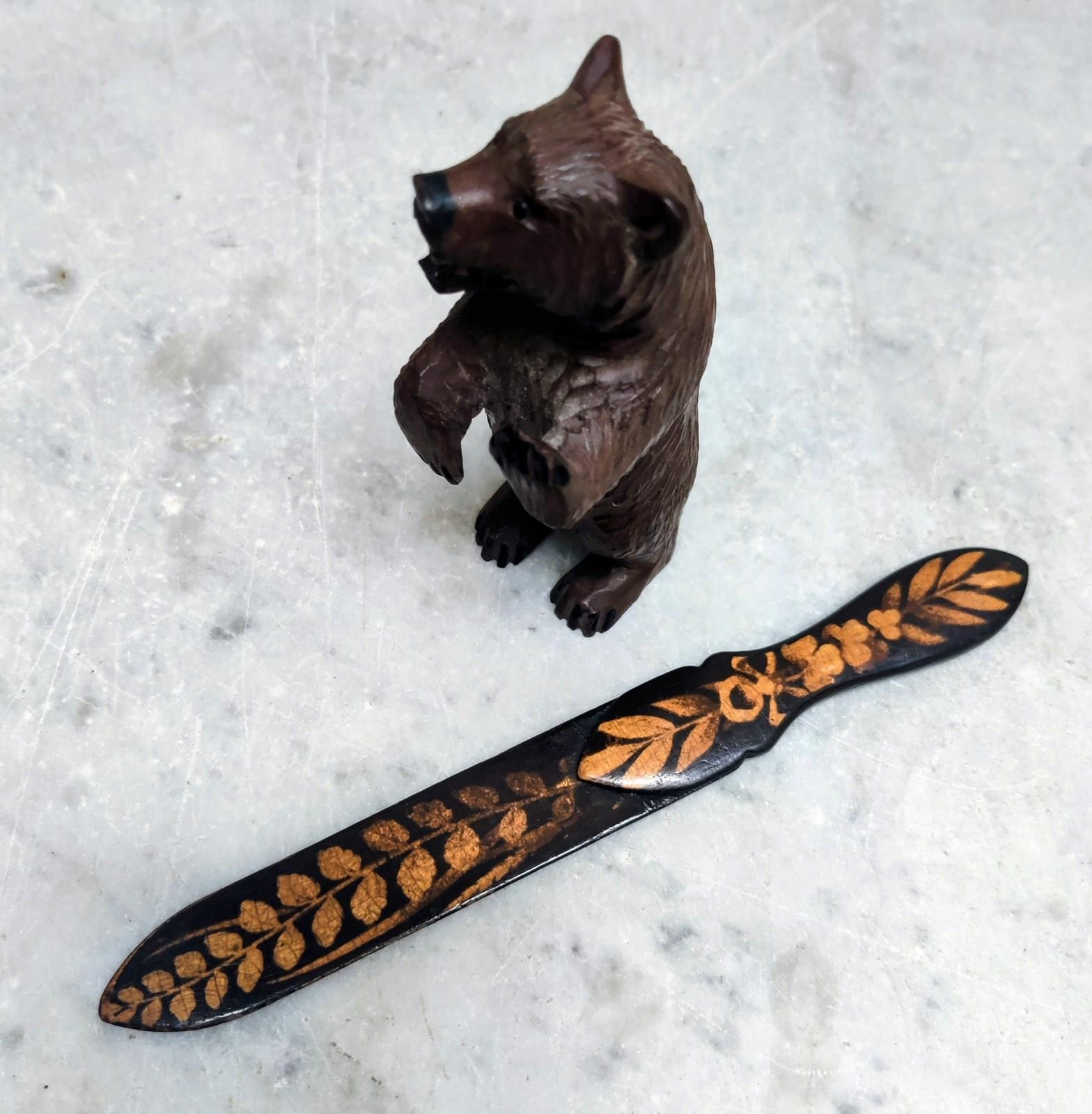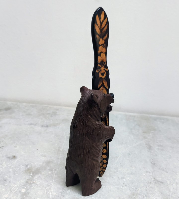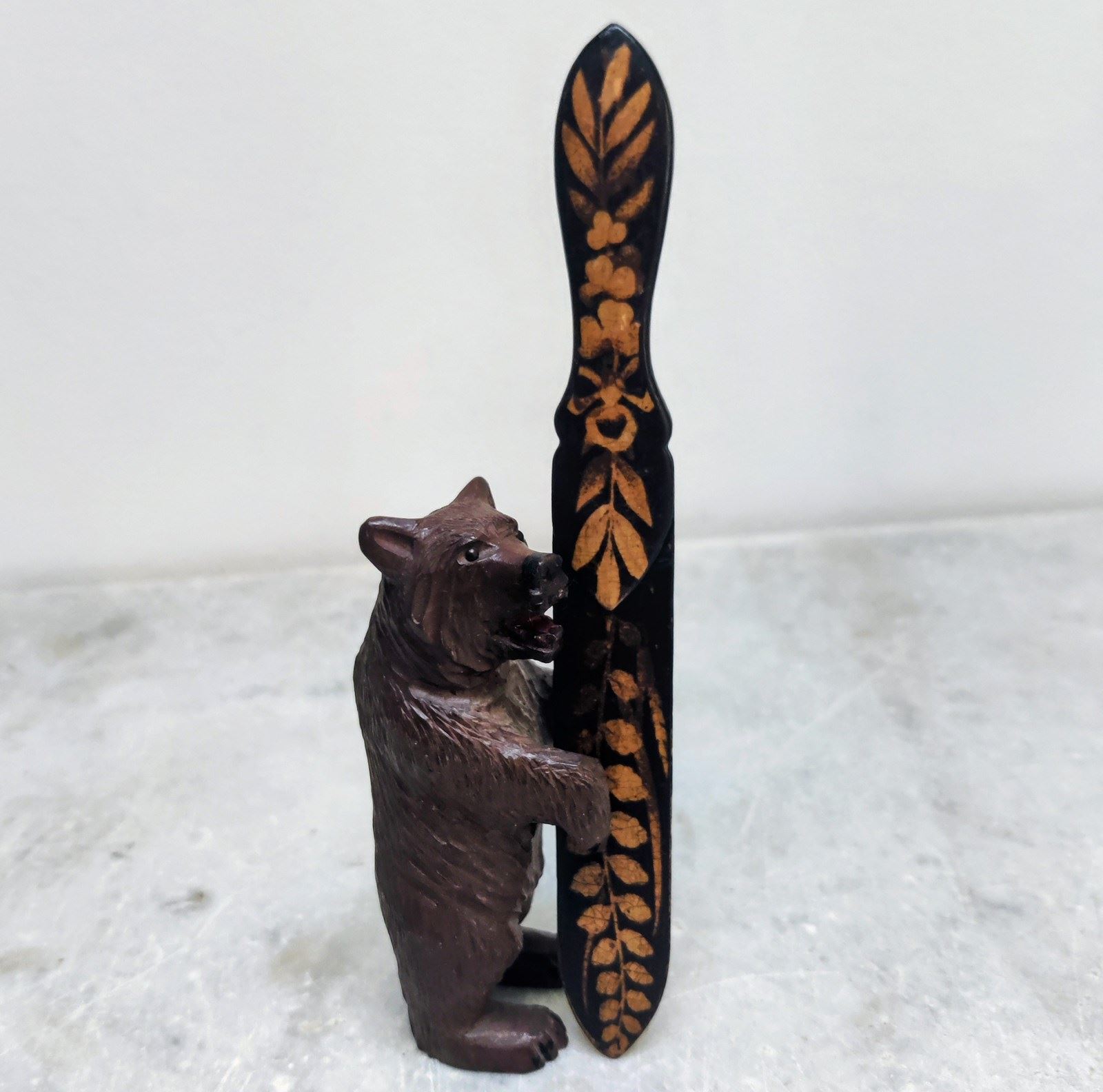 Finely Carved little German Folk Art 'Schwarzwald' 'Growling' Bear, made to hold a pen on a desk (here holding a paper knife)