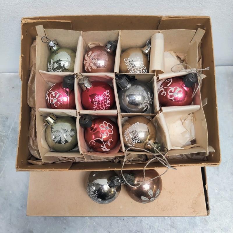 Lovely box of Christmas Tree Baubles, in wonderful, subtle colours