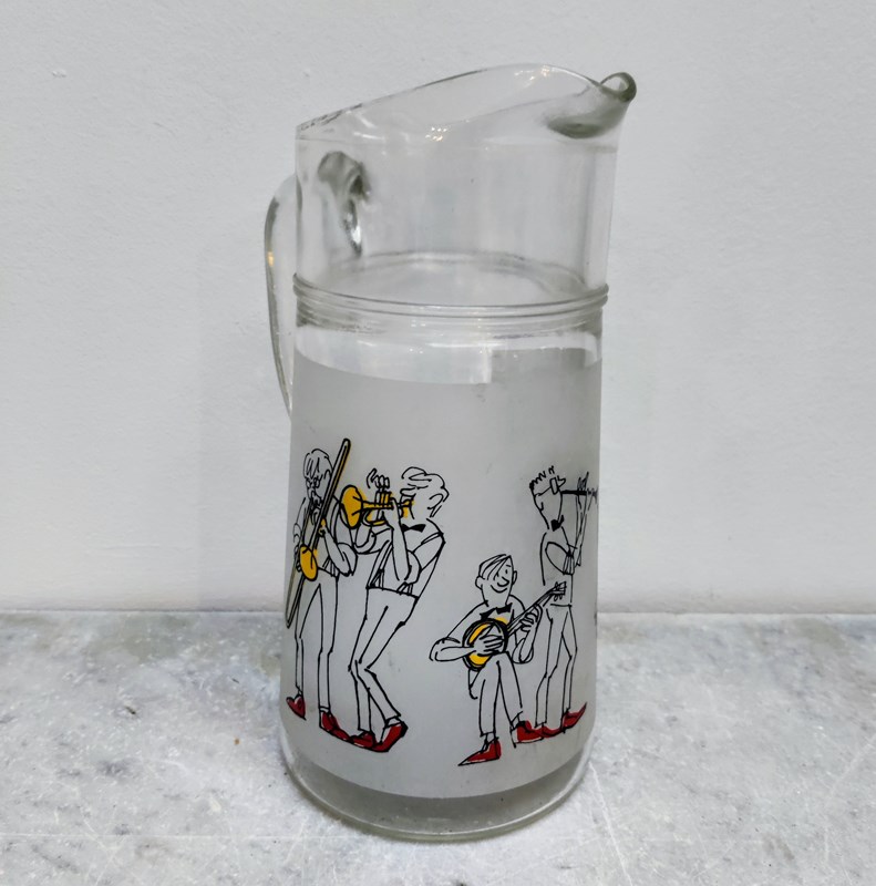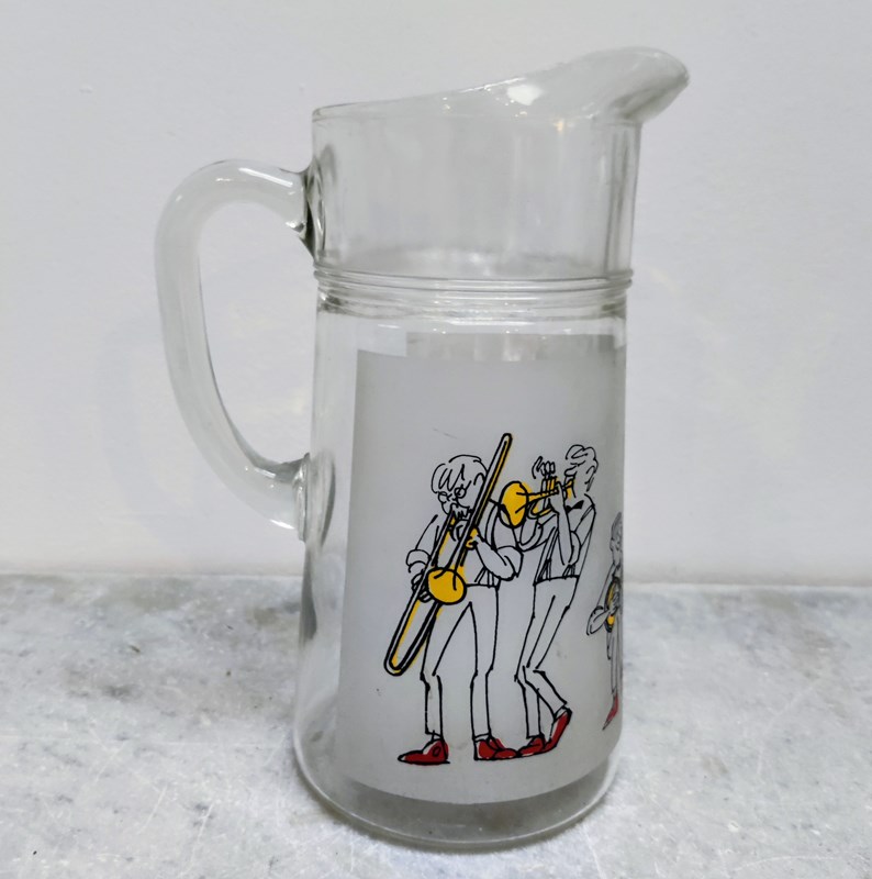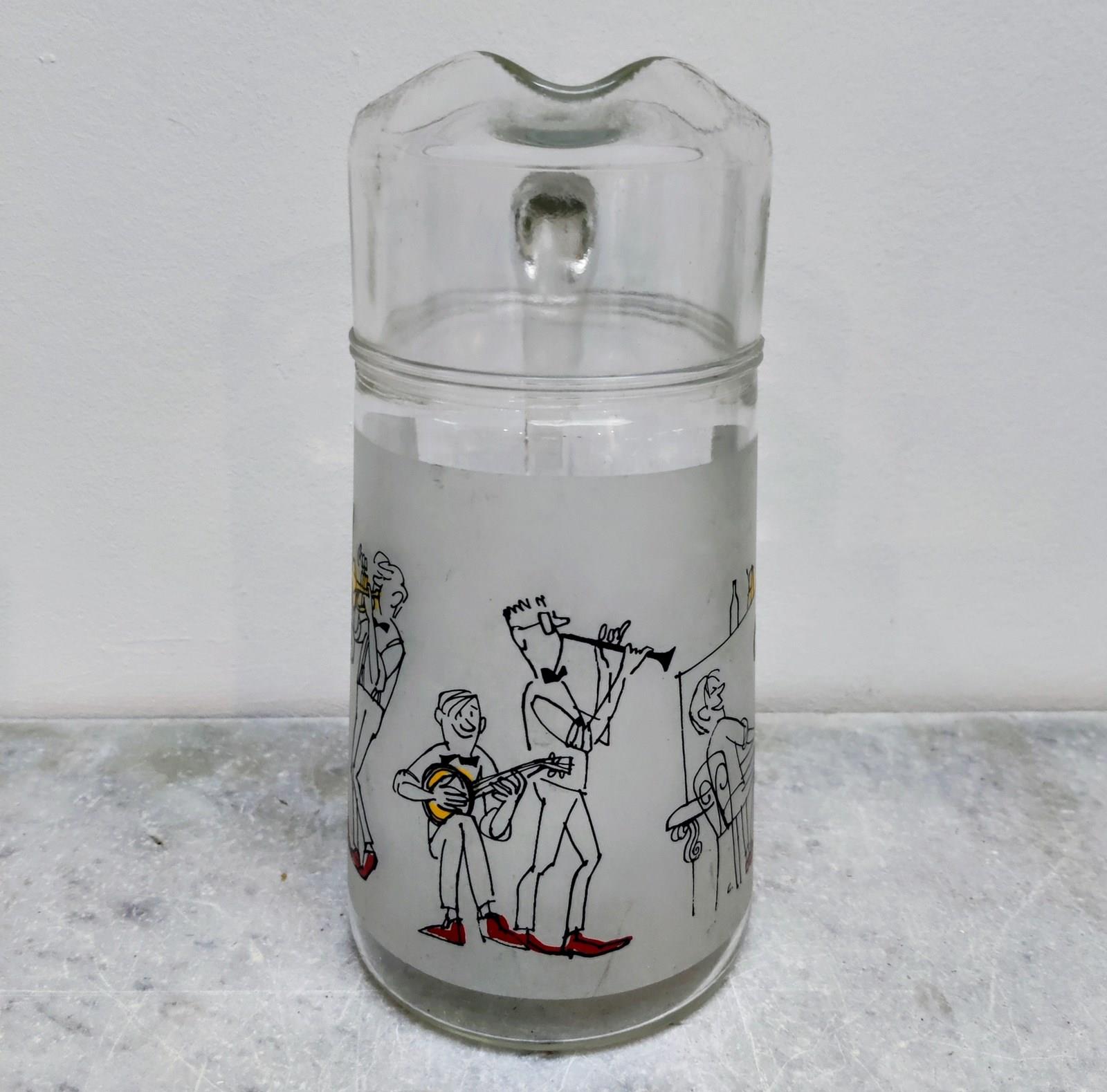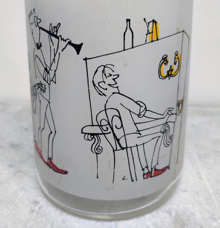 Stylish French 1970's frosted Cocktail jug illustrated by cartoonist Cabu