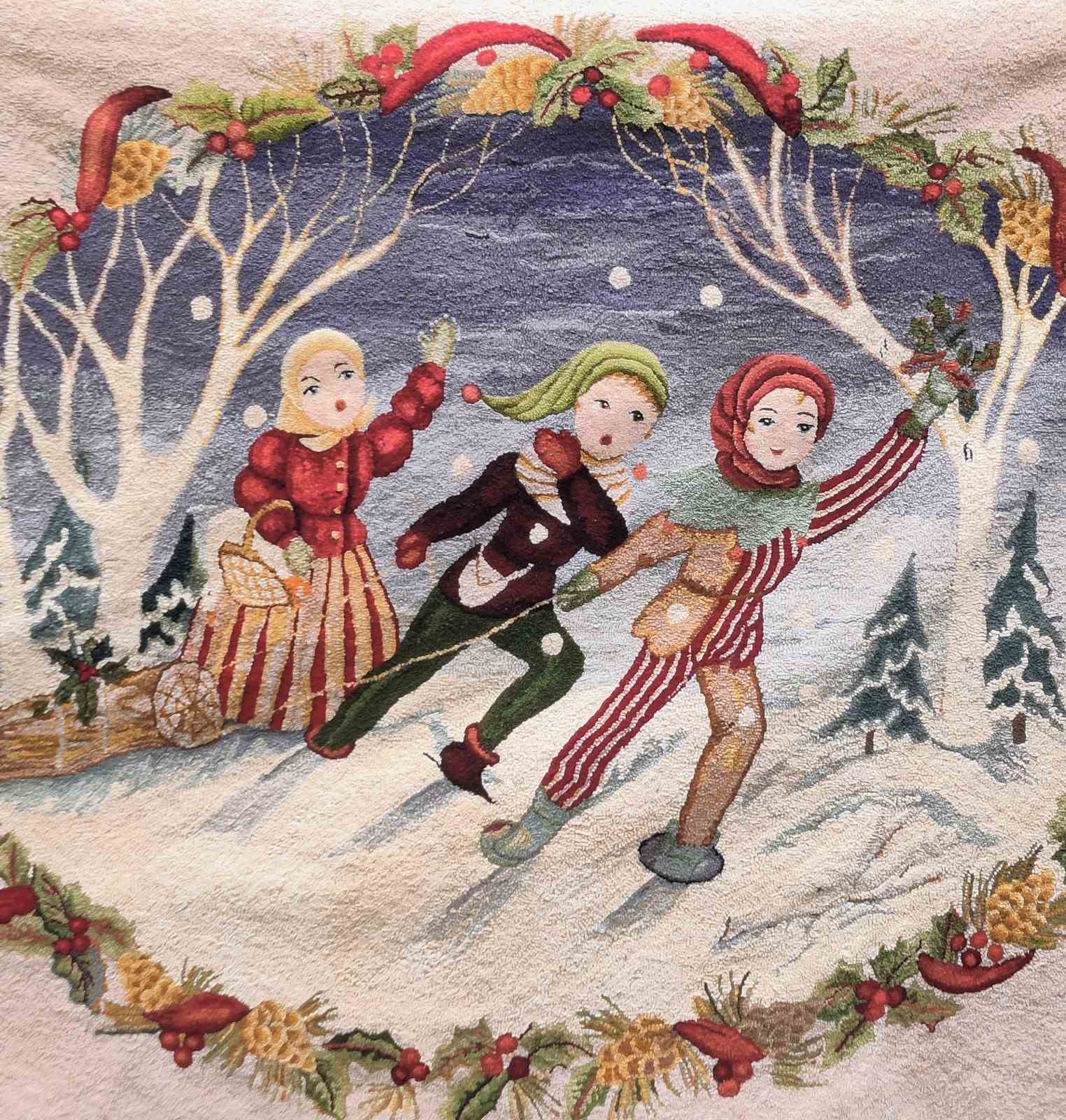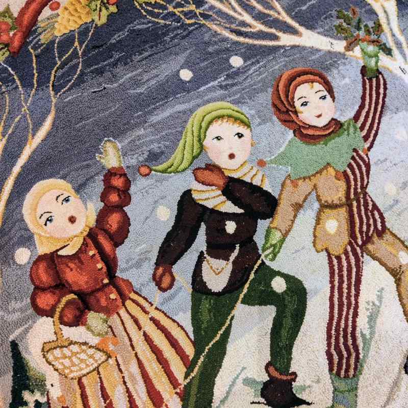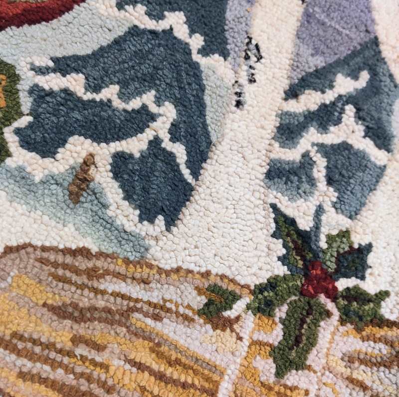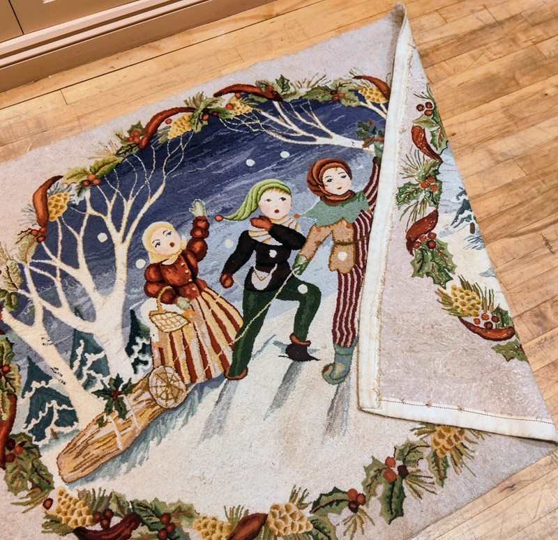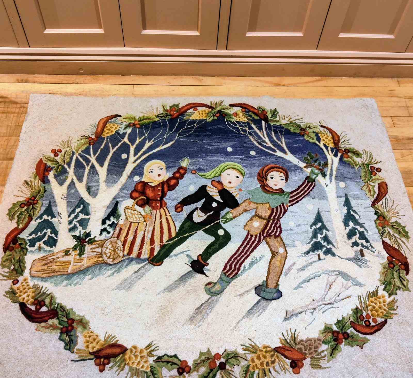 Lovely large American made Woolwork Rug with a charming Christmas theme