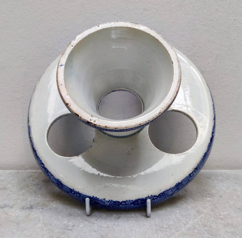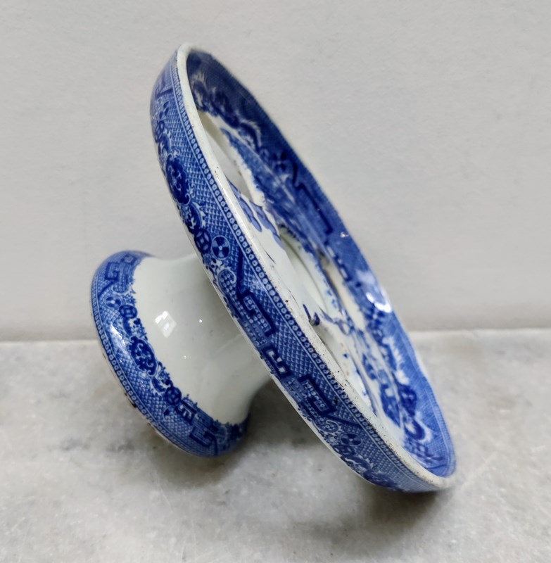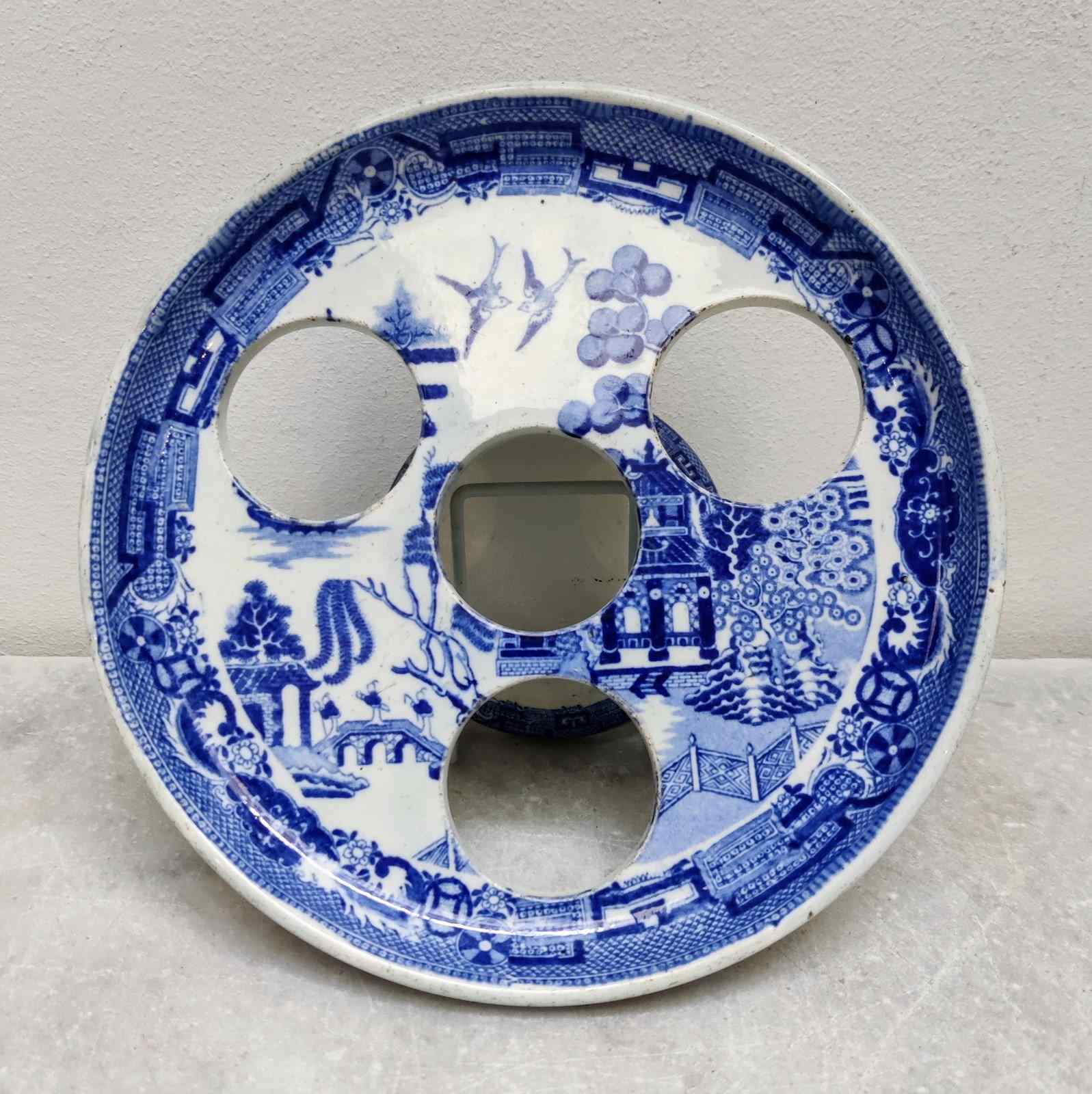 Charming 19th century Staffordshire Willow Pattern egg stand for 4 eggs