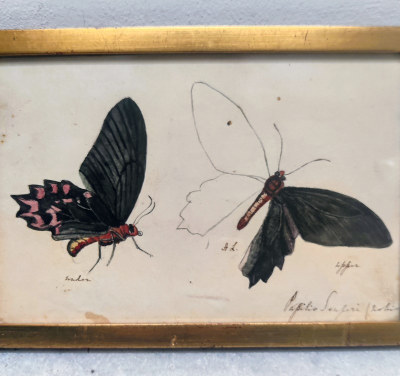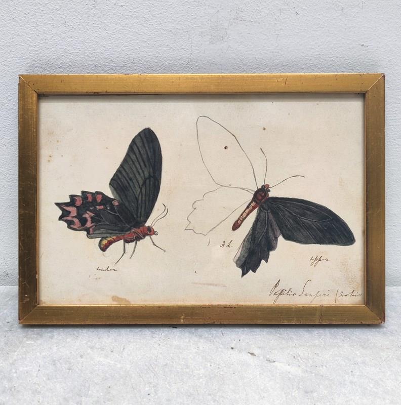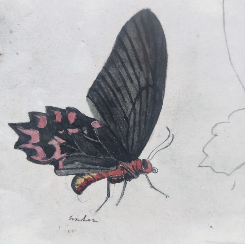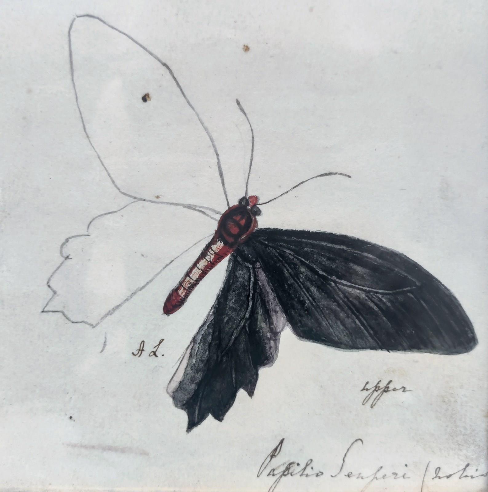 Charming unfinished watercolour of a 'Papilio Semperi', with pencil annotations
