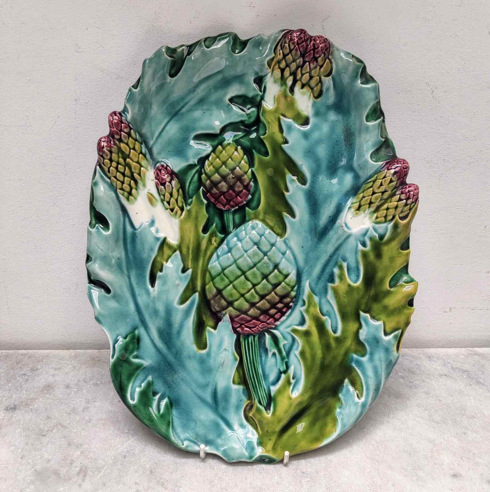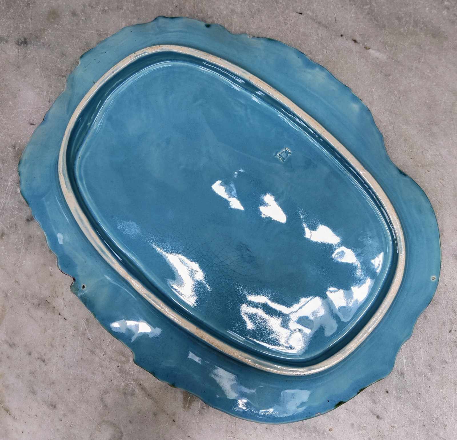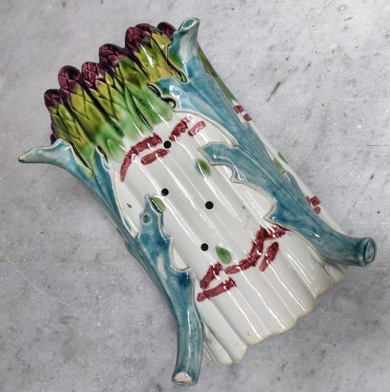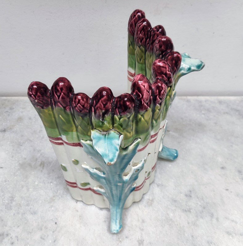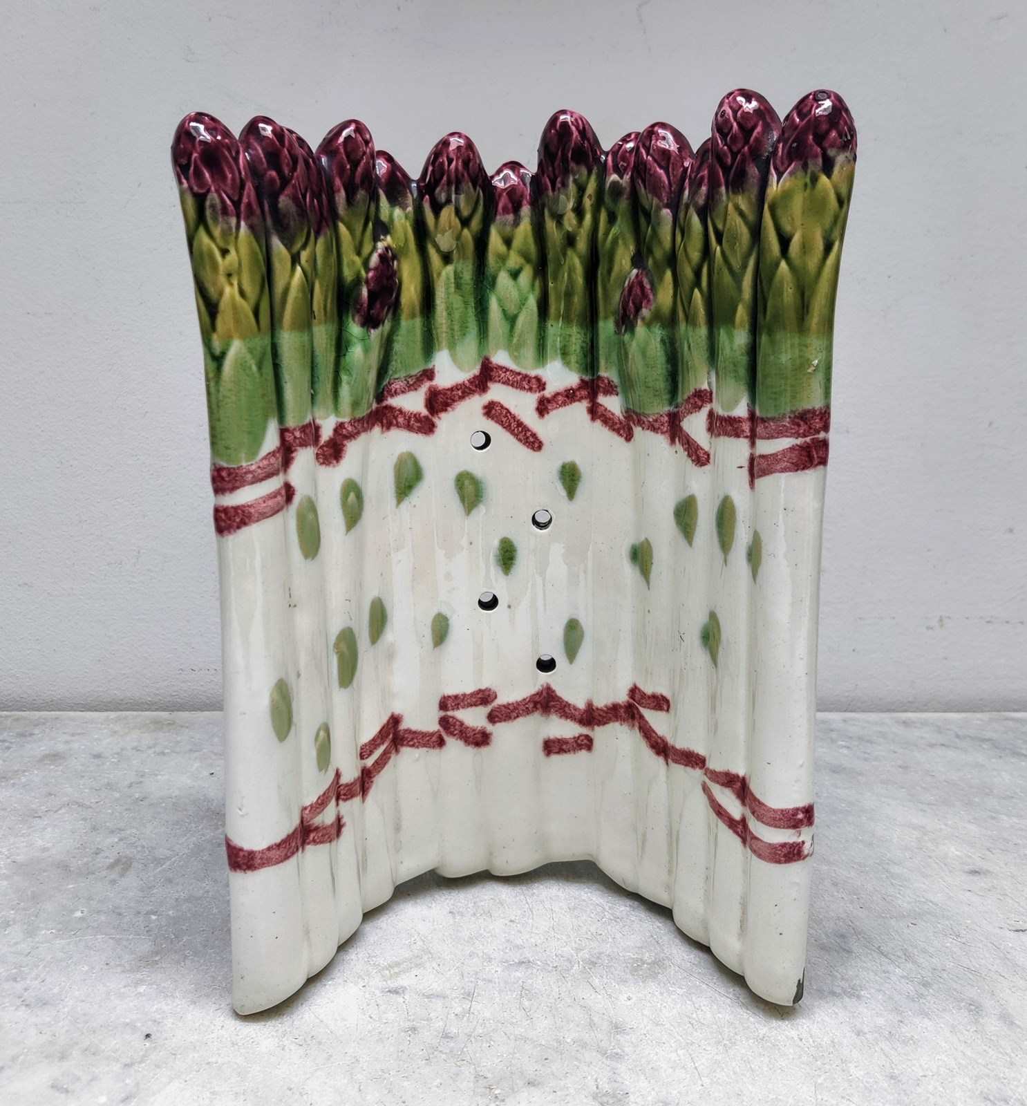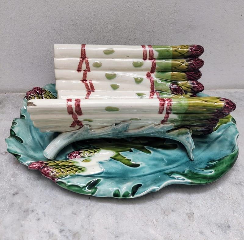 'Barbotine' or Majolica, a heavily moulded Asparagus platter and Asparagus serving dish, manufactured by Luneville