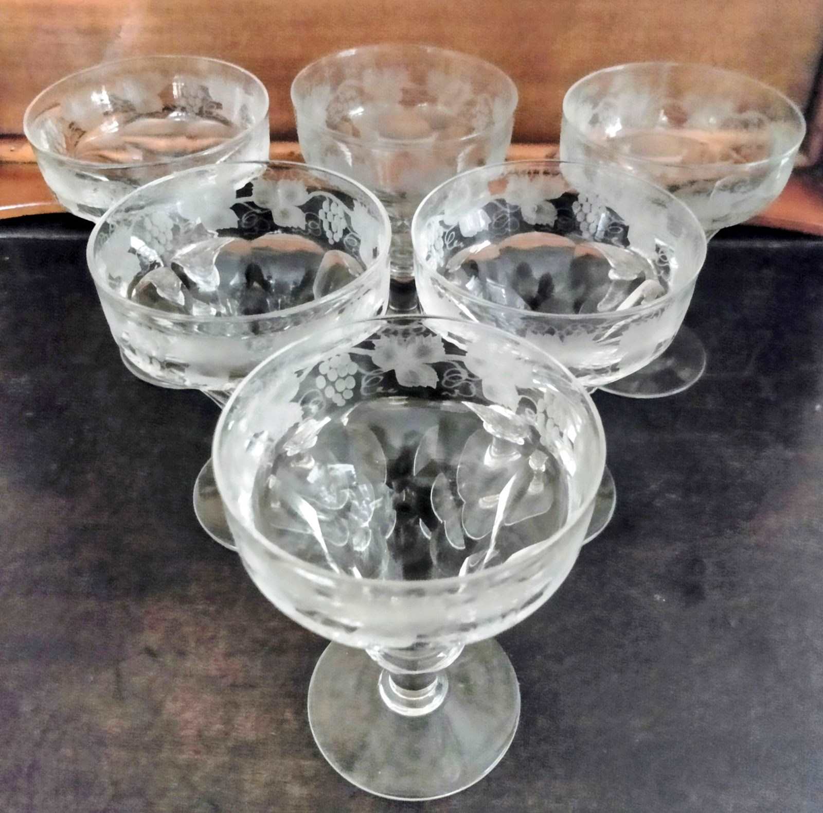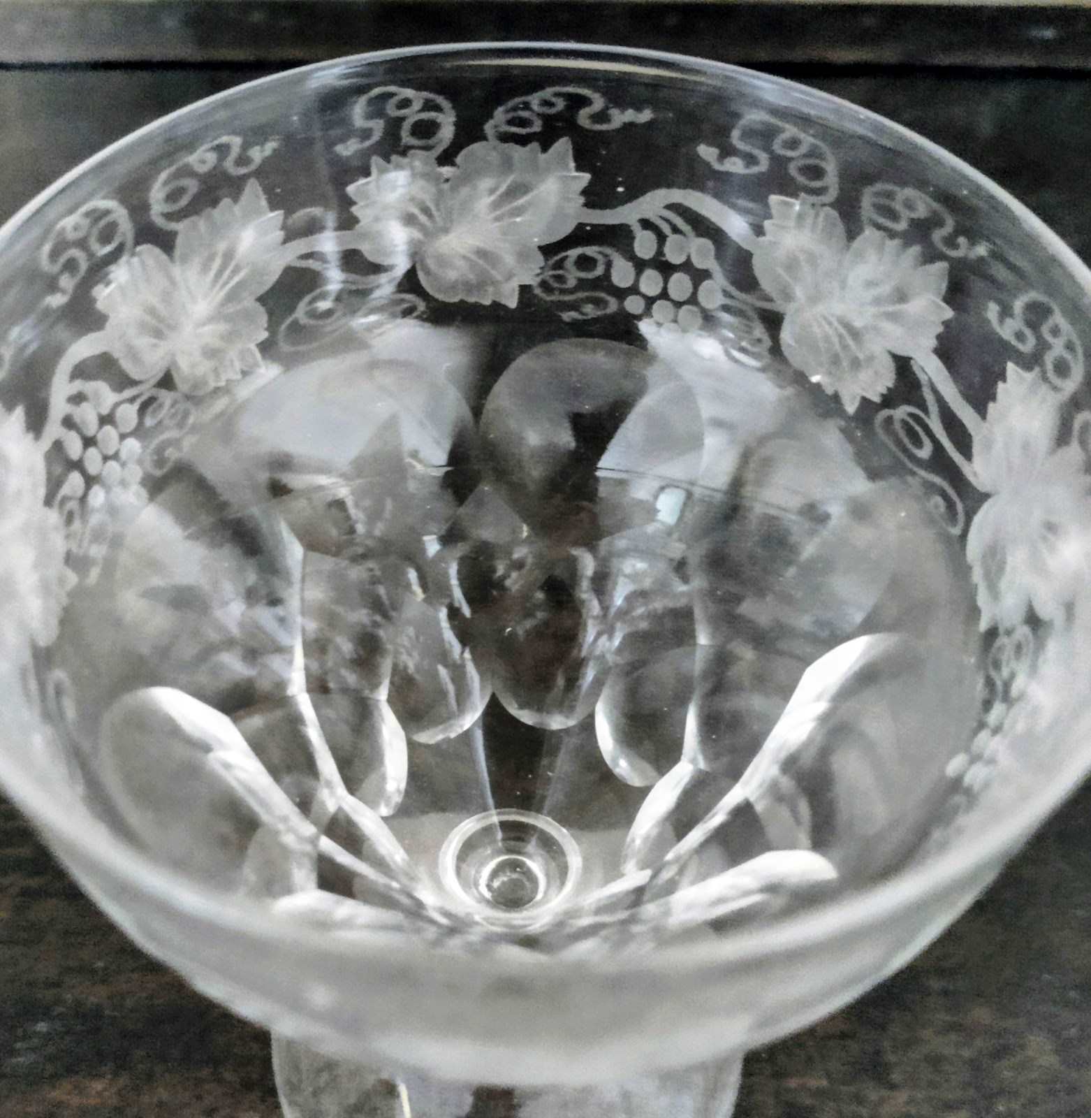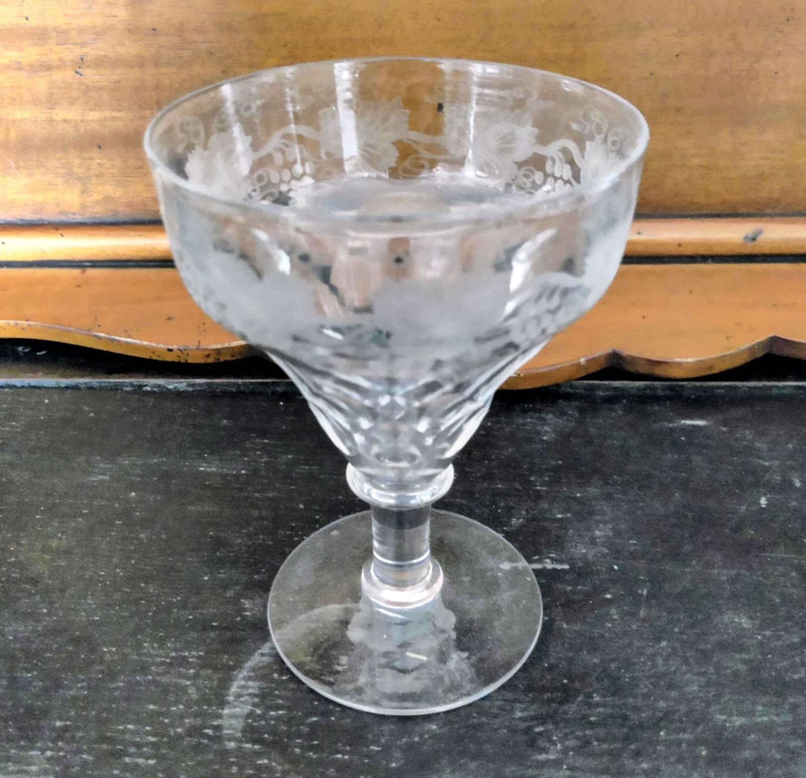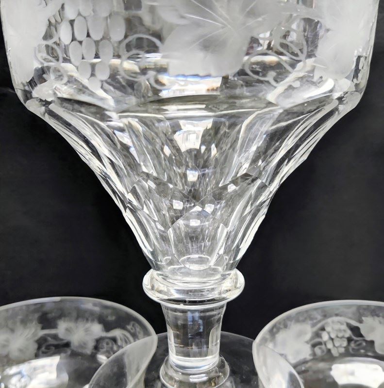 Fabulous Set Of Large Etched Glass Wine Rummers