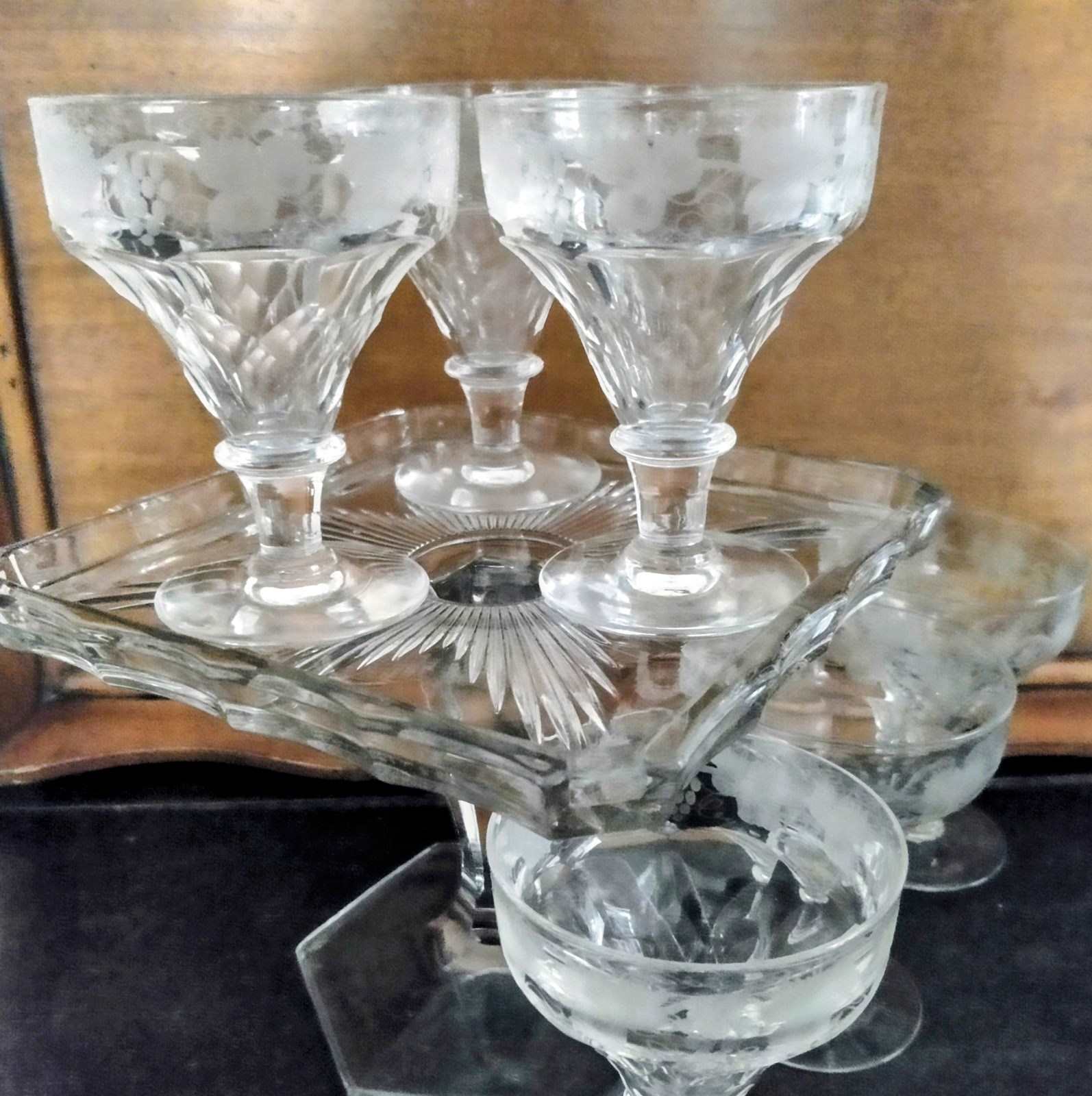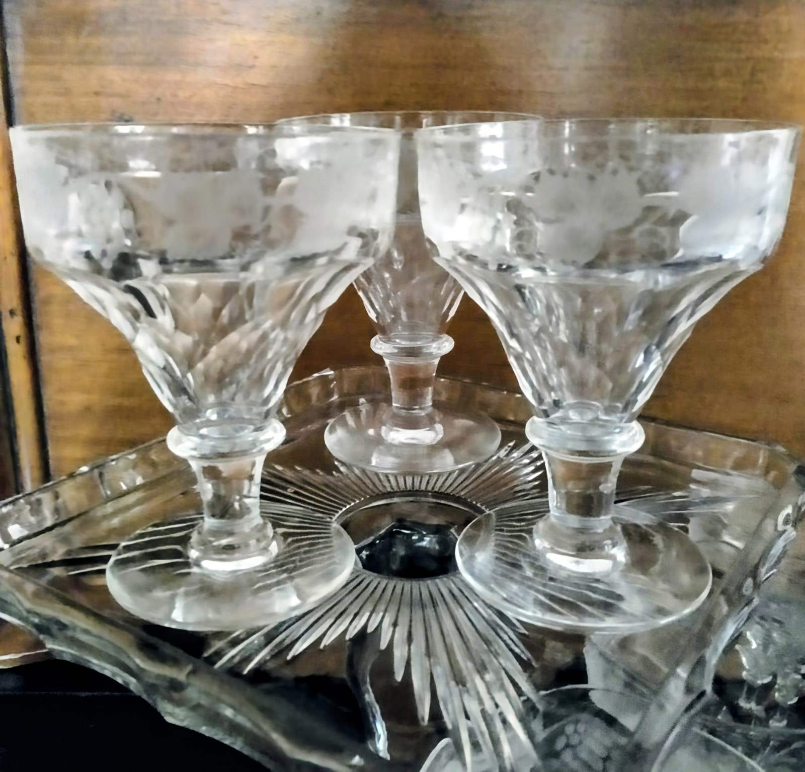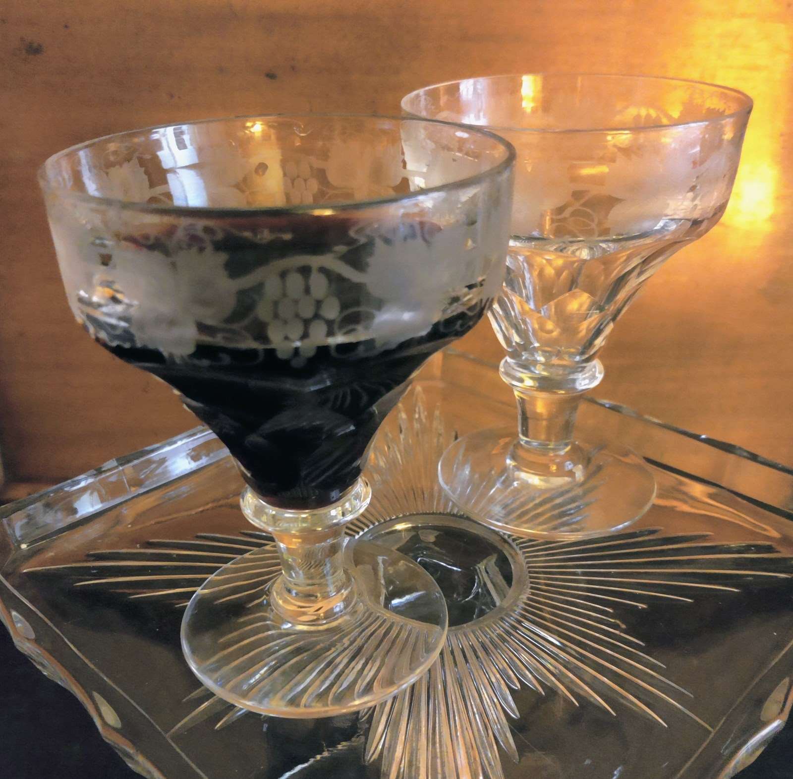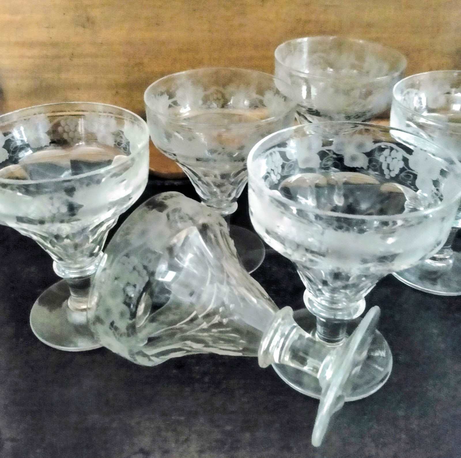 Fabulous Set Of Large Etched Glass Wine Rummers