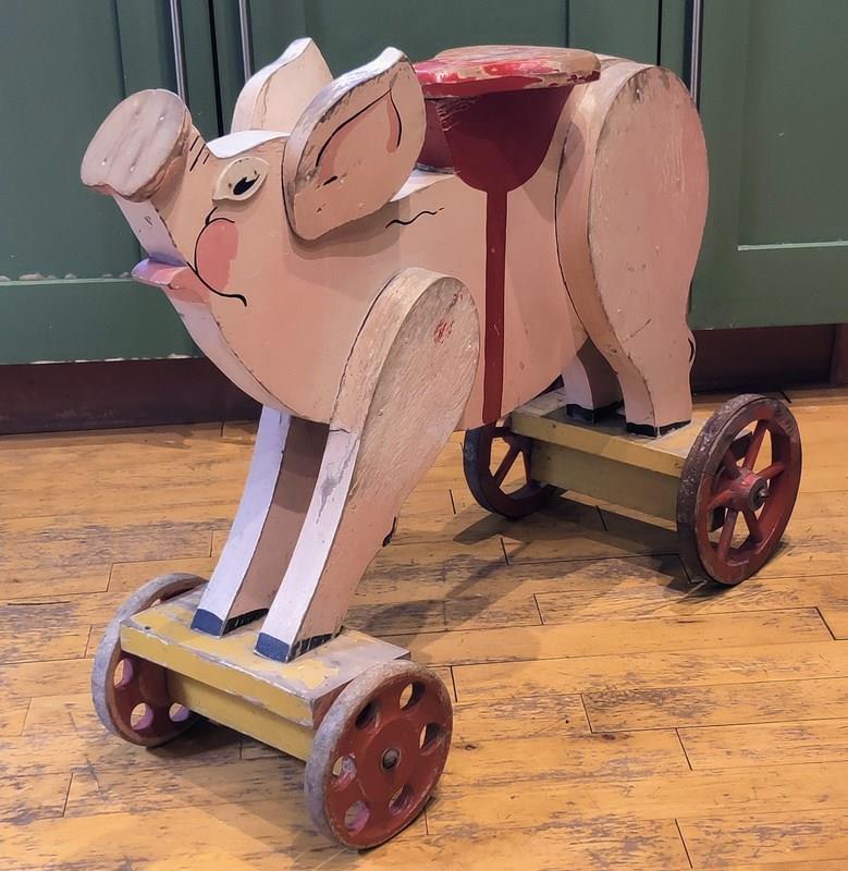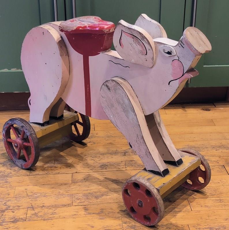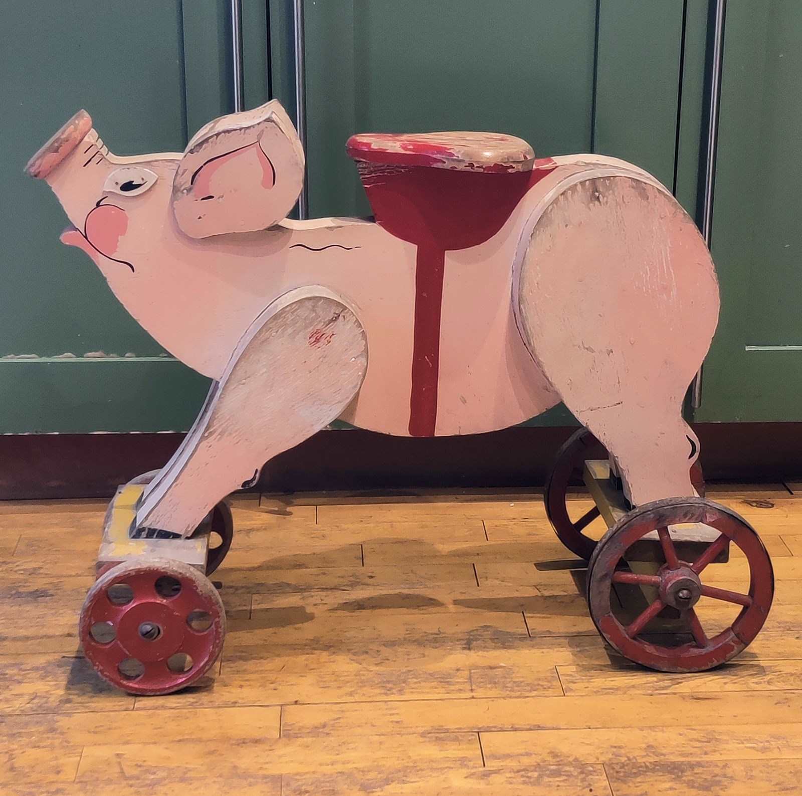 Sit-on Fairground ‘Piggy’ still working but distressed paintwork and needs a new curly tail! Image 6