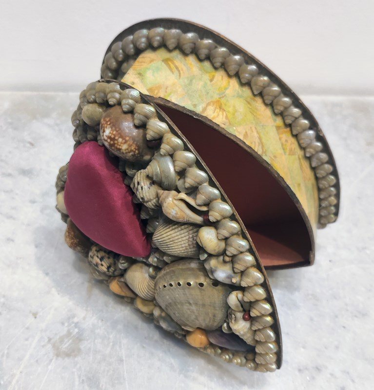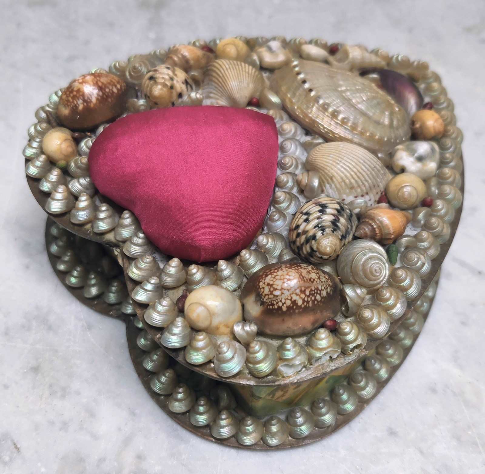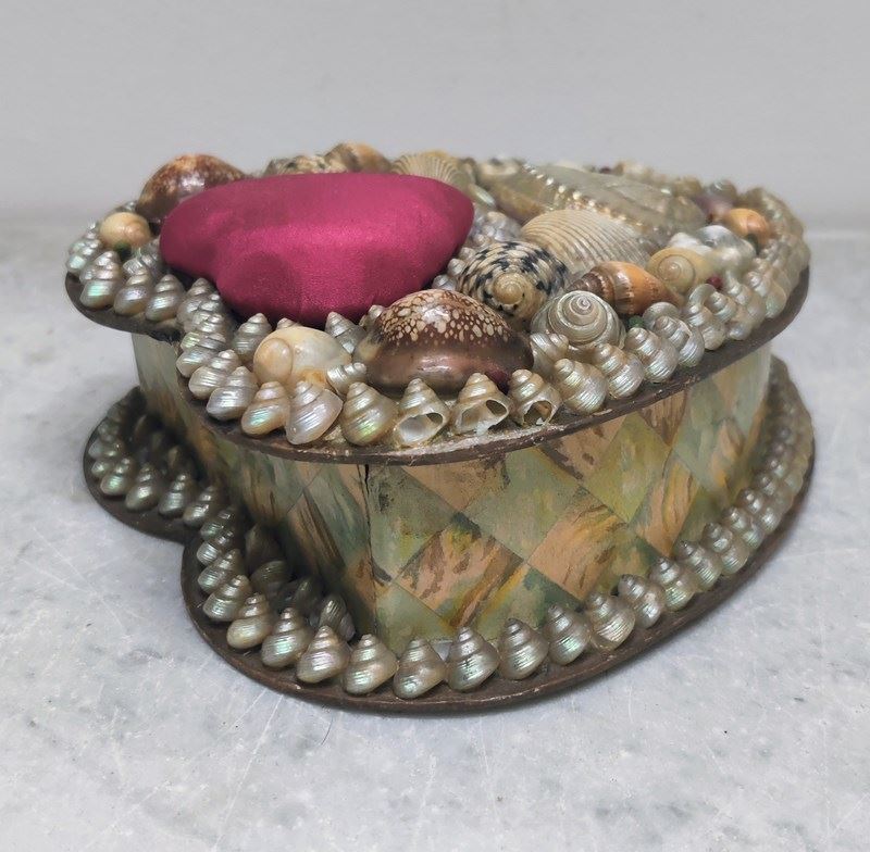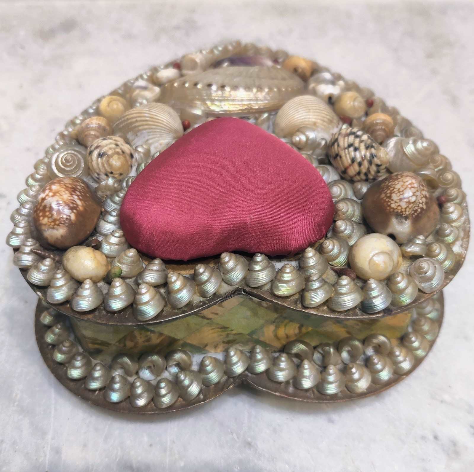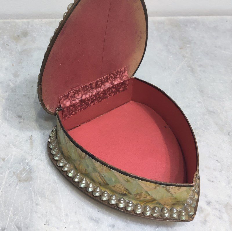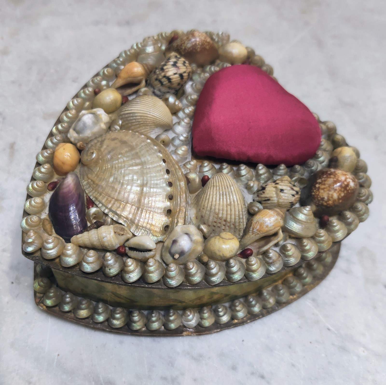 Wonderful Heart Shaped Shell Box with Satin Heart on the lid for Brooches and Hatpins