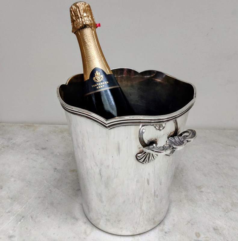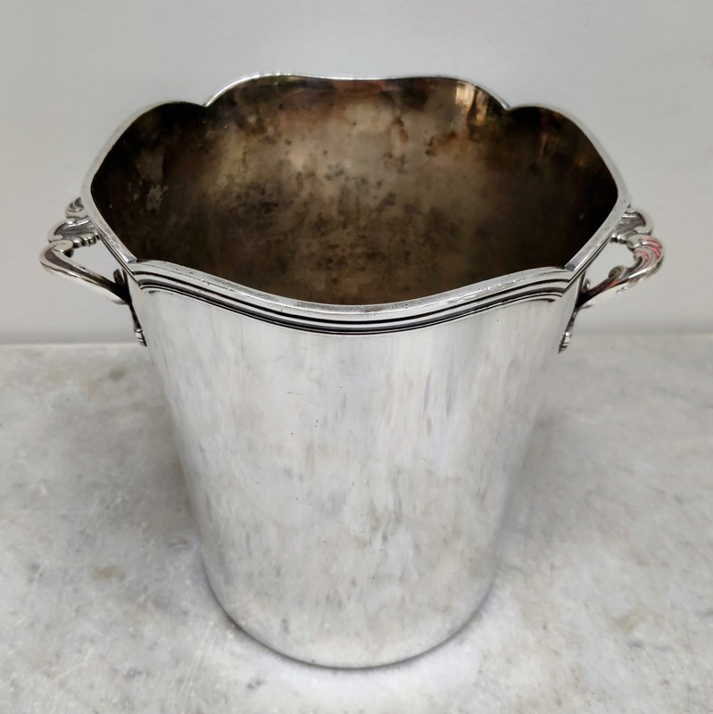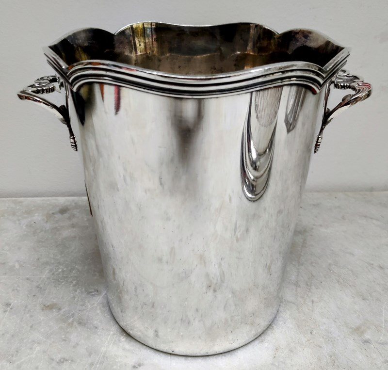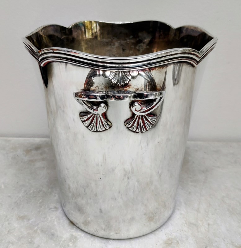 Very heavy Silver Plated Champagne Bucket, with pretty scalloped rim and shell scroll handles