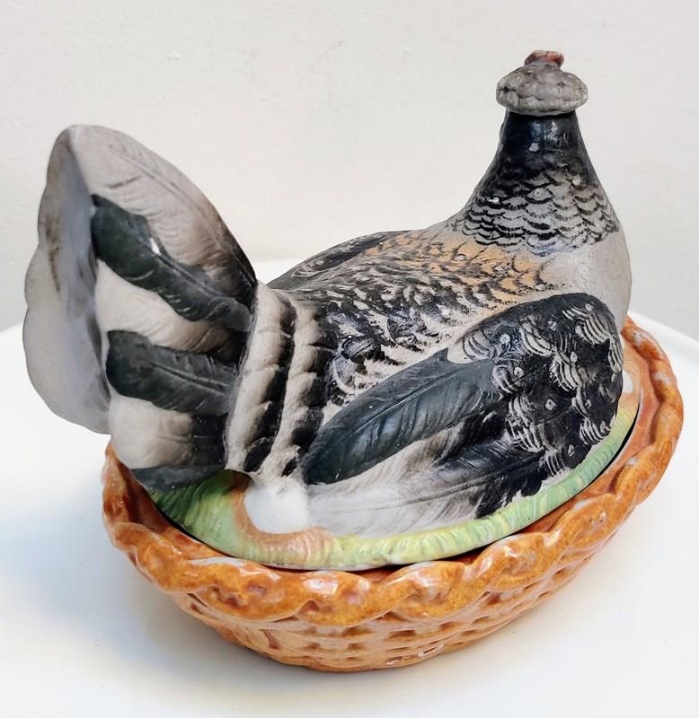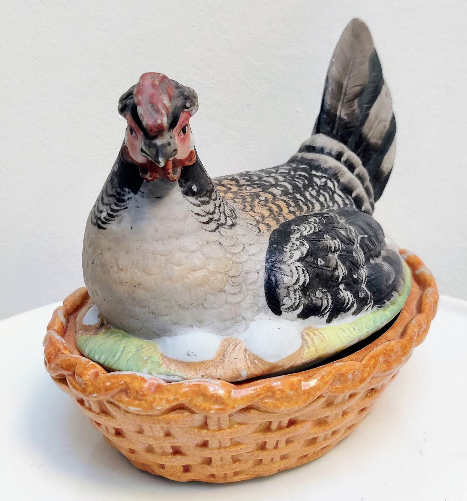 Traditionally used for coddling eggs, (Eggs are coddled by submerging the eggs in their shells under boiling water inside the hen until gently poached),for storing eggs or for decorative storage