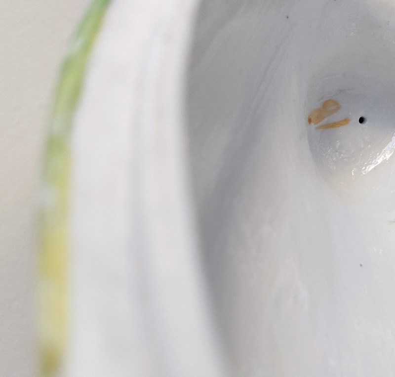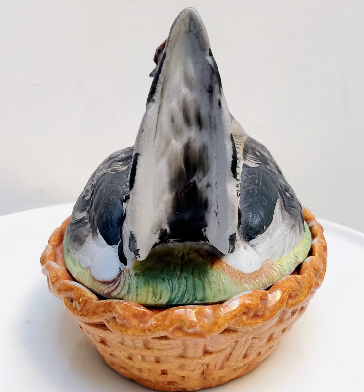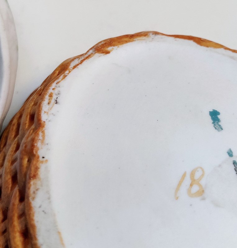 Painted Bisque with wonderful, deep, rich colours; the basket is enamelled in deep mustard