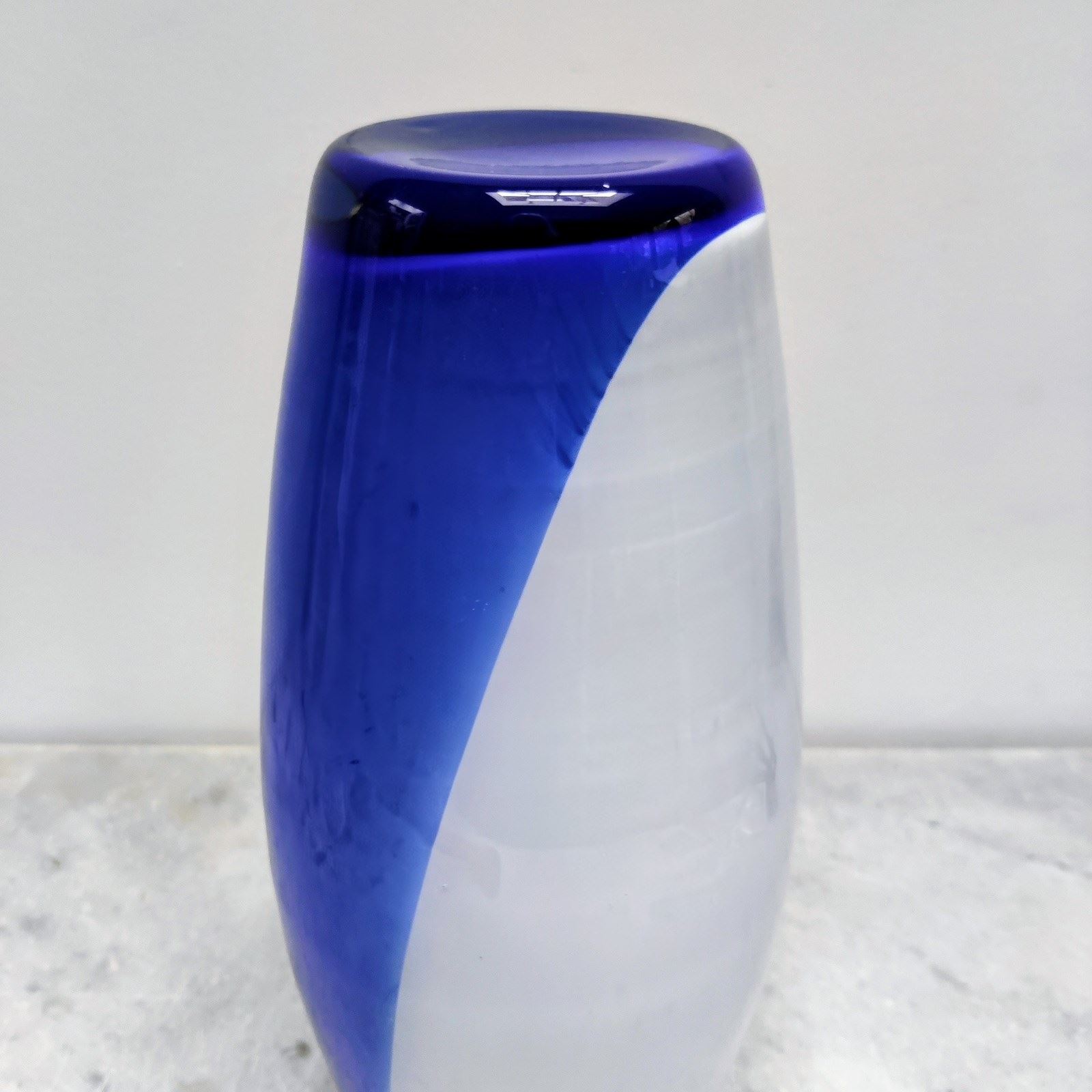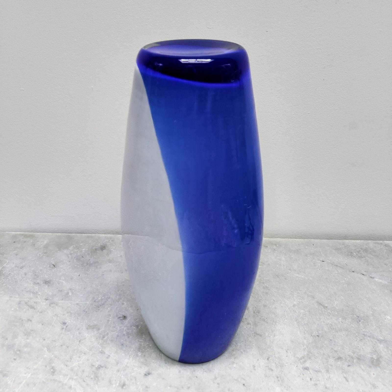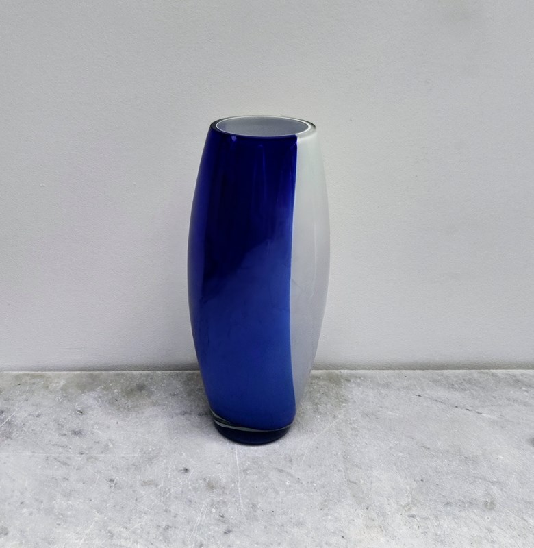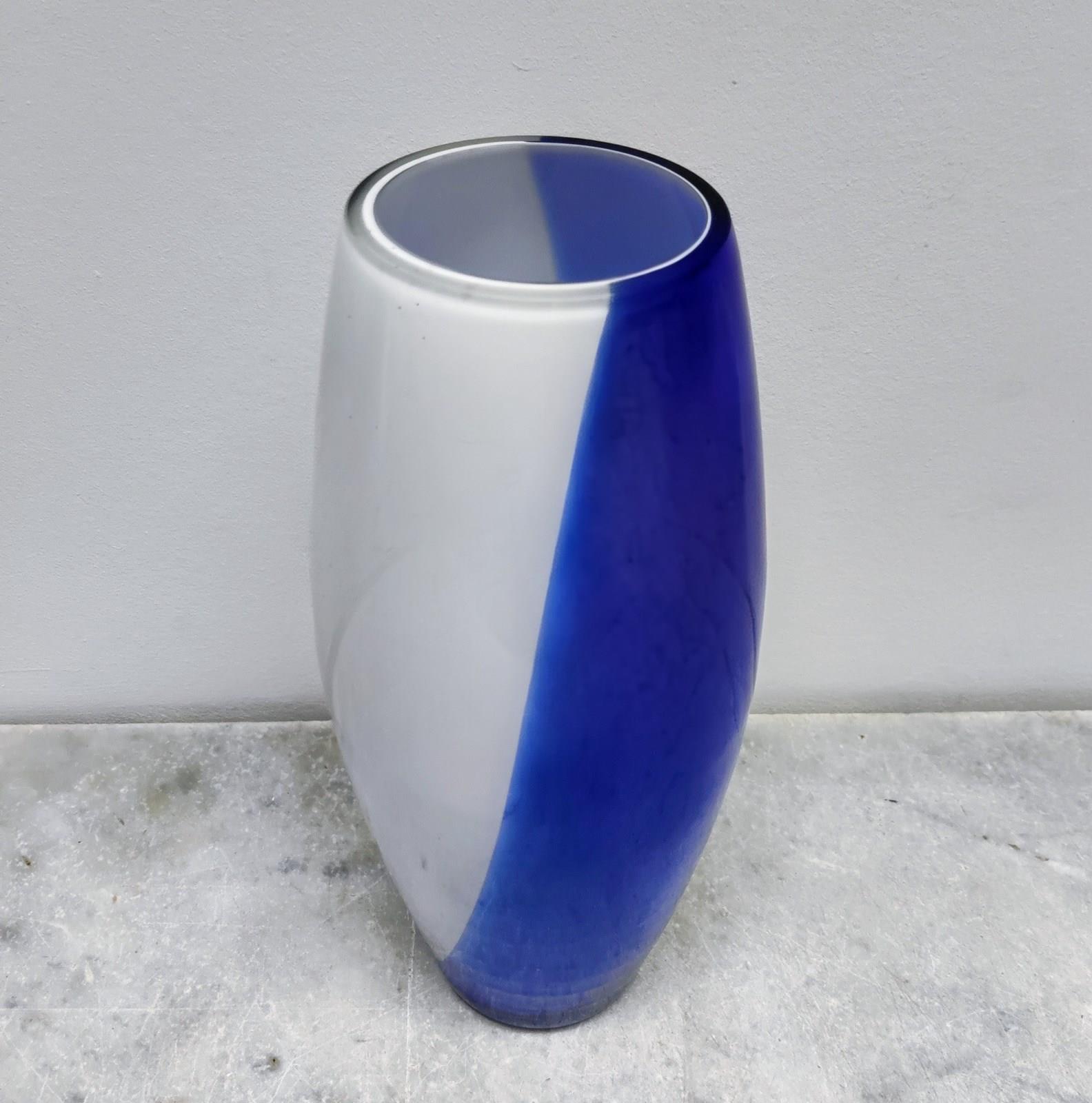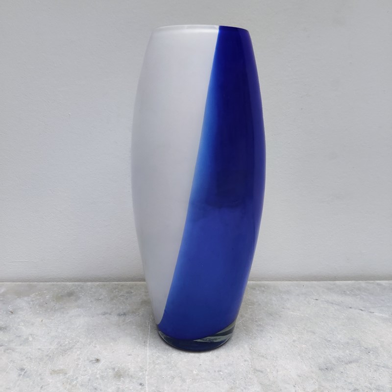 Huge Mid Century Blue & White Glass Vase