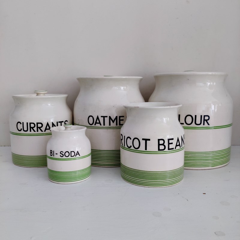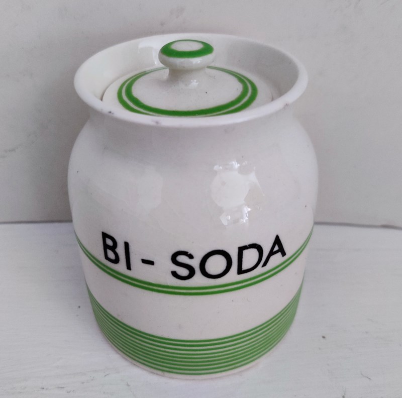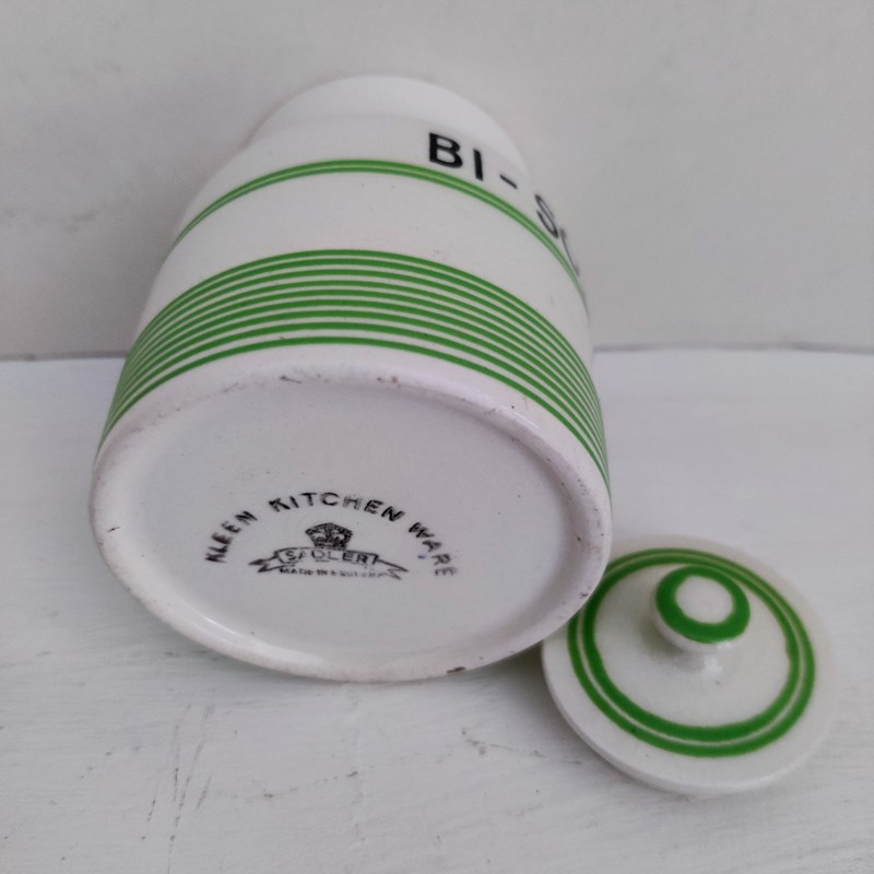 Rare cream with green stripes 'Kleen' Kitchen Bi-Soda Jar by James Sadler