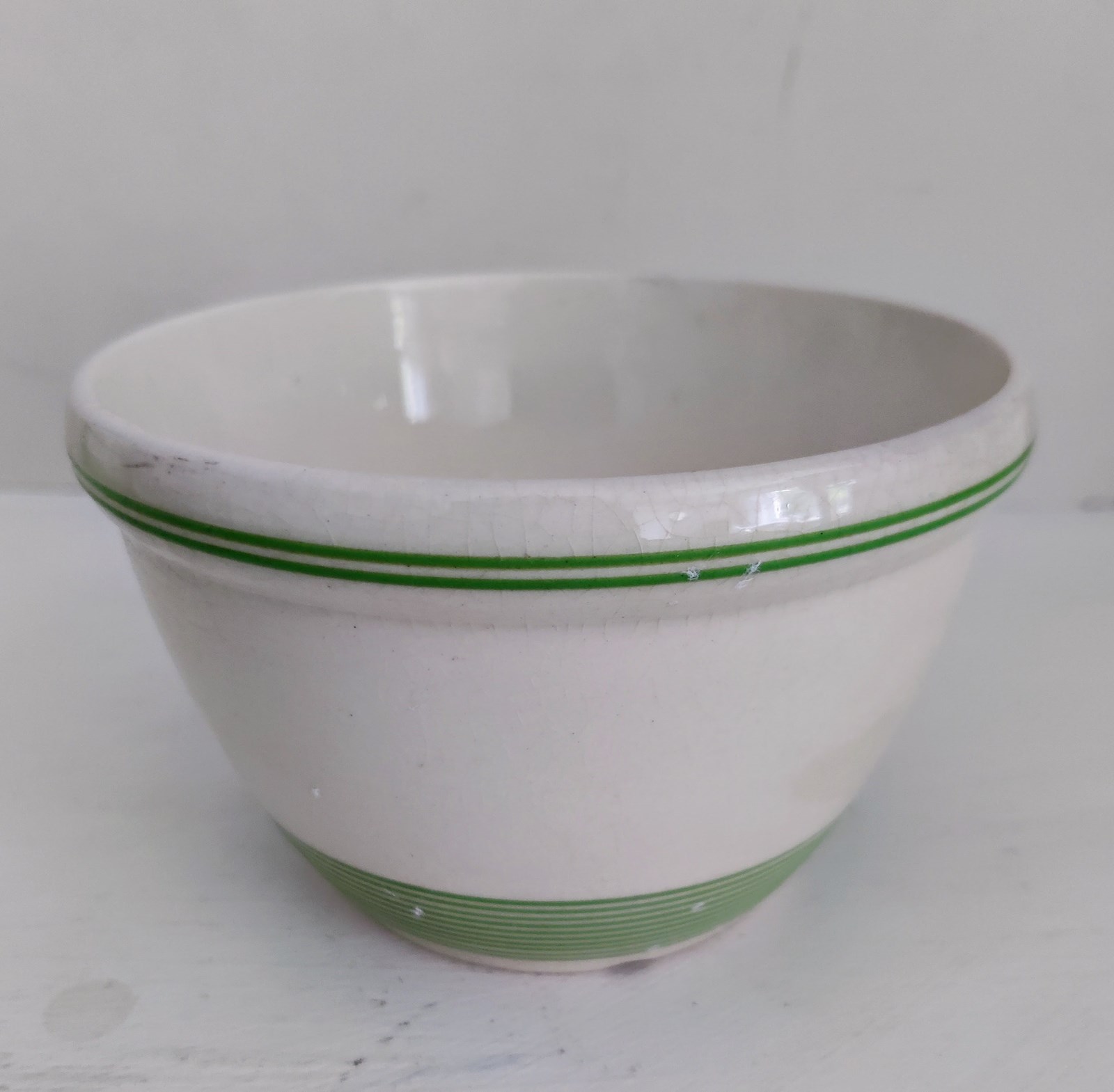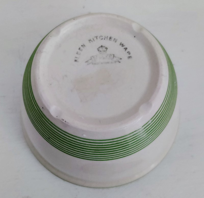 Charming cream with green stripes 'Kleen' Kitchen Pudding Basin by James Sadler
