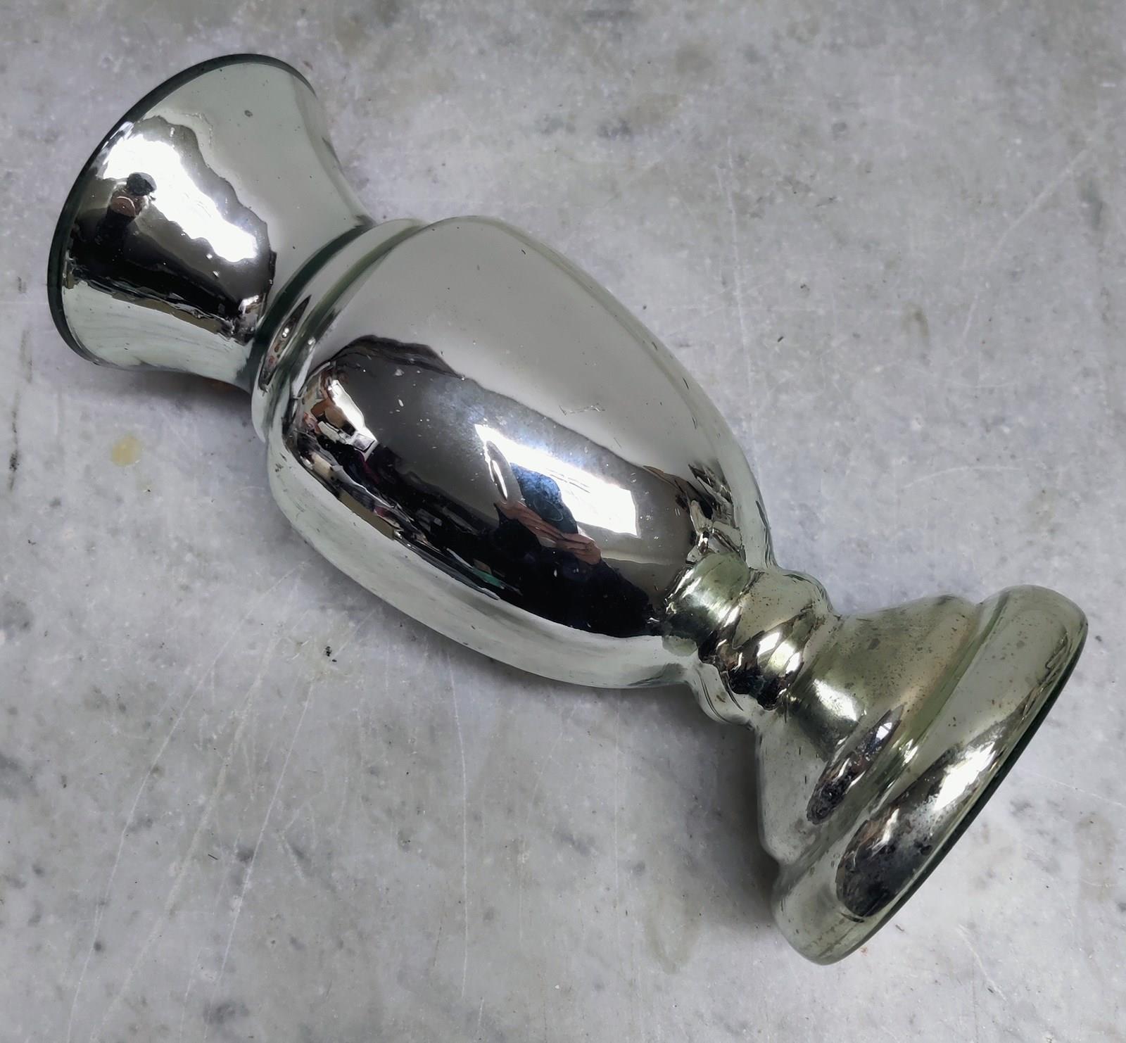 Mercury glass (silvered glass) is double walled glass with a silvering solution applied between the layers giving it a shining silver appearance