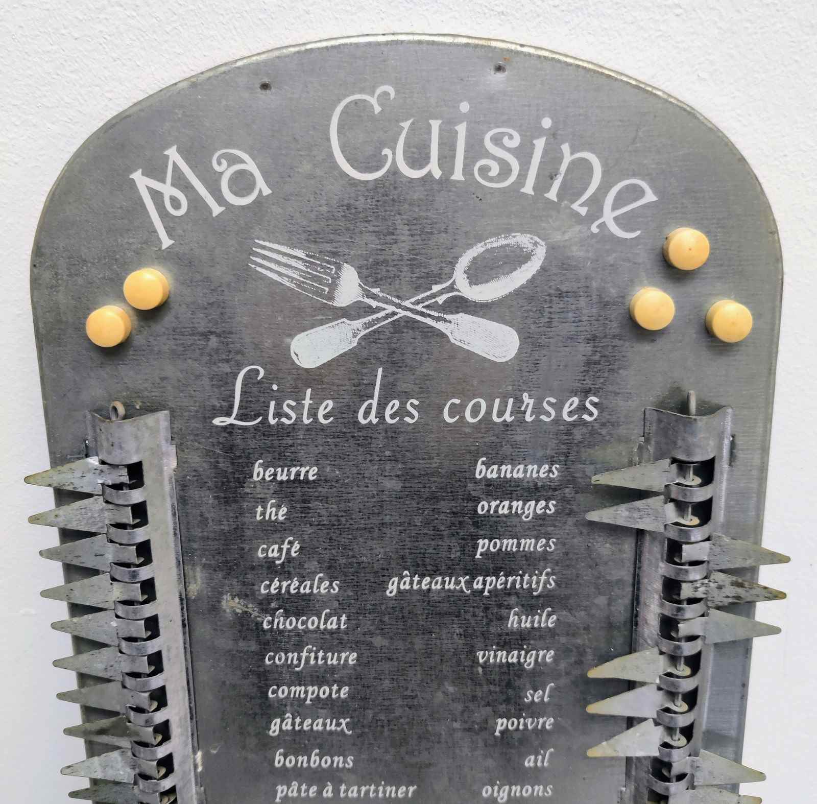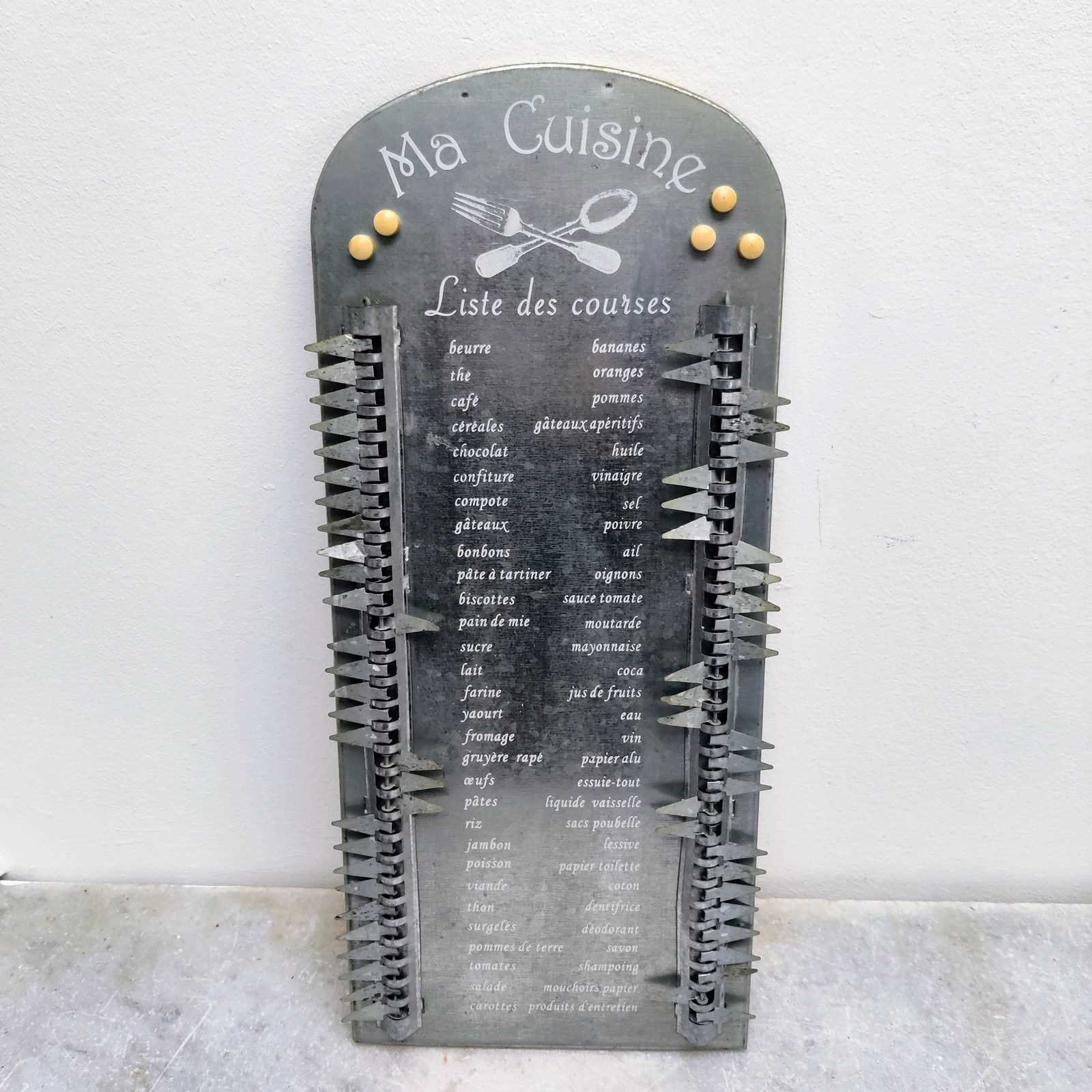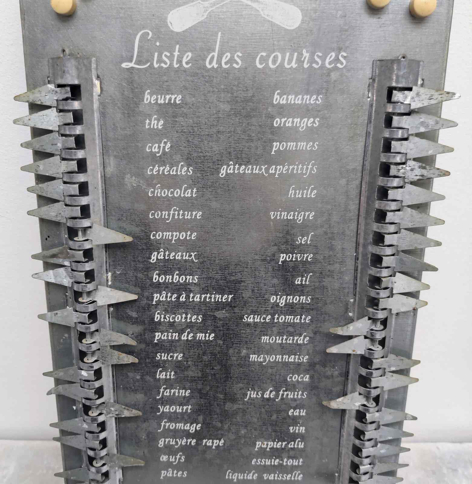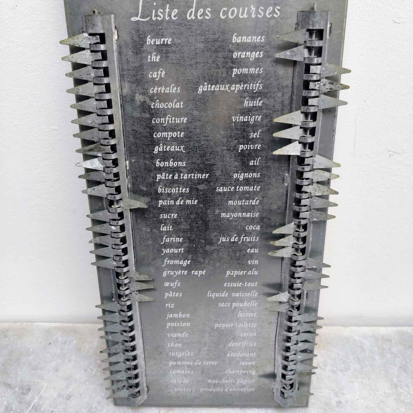 Stylish French metal Shopping List, with hanging tag