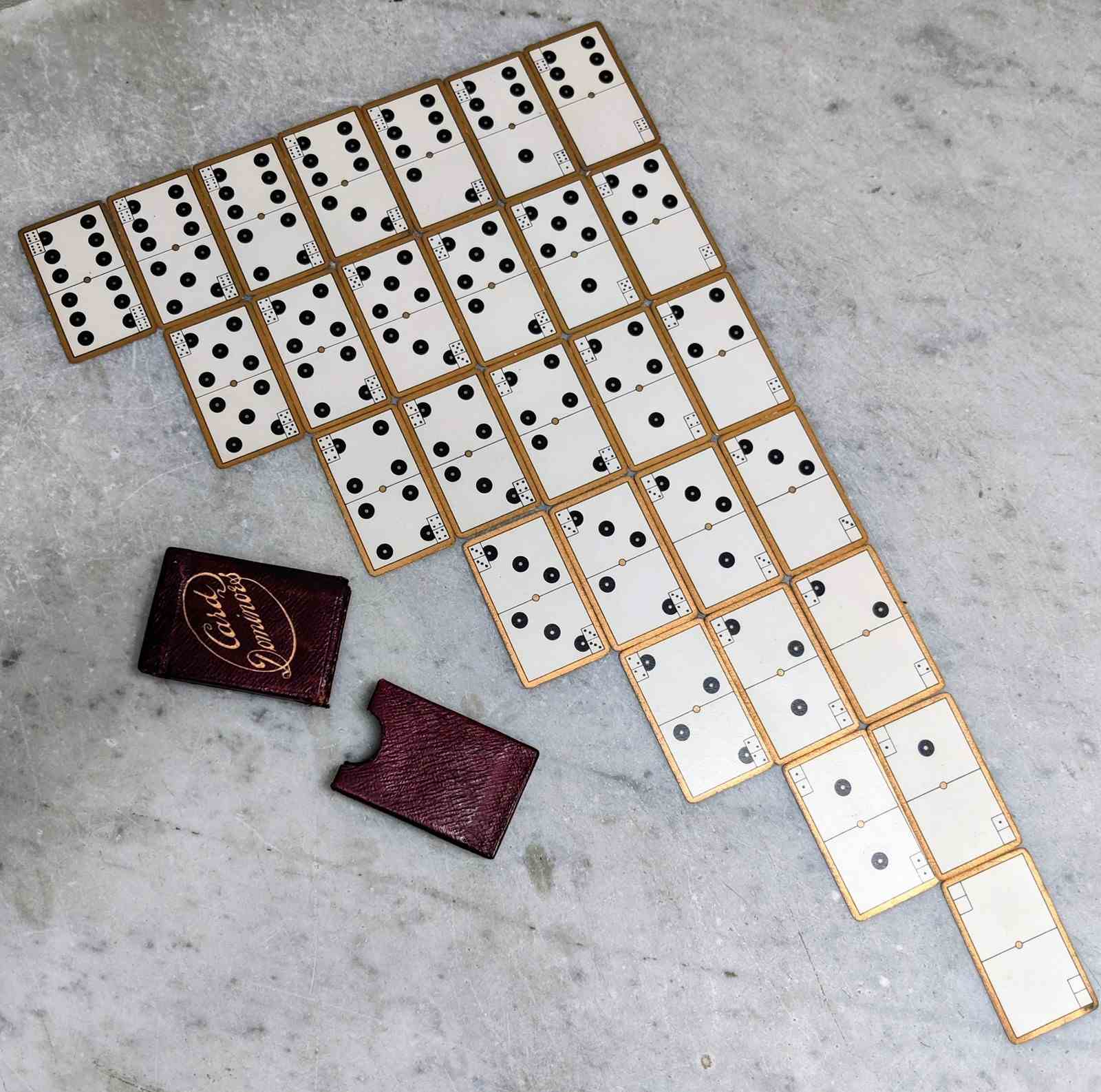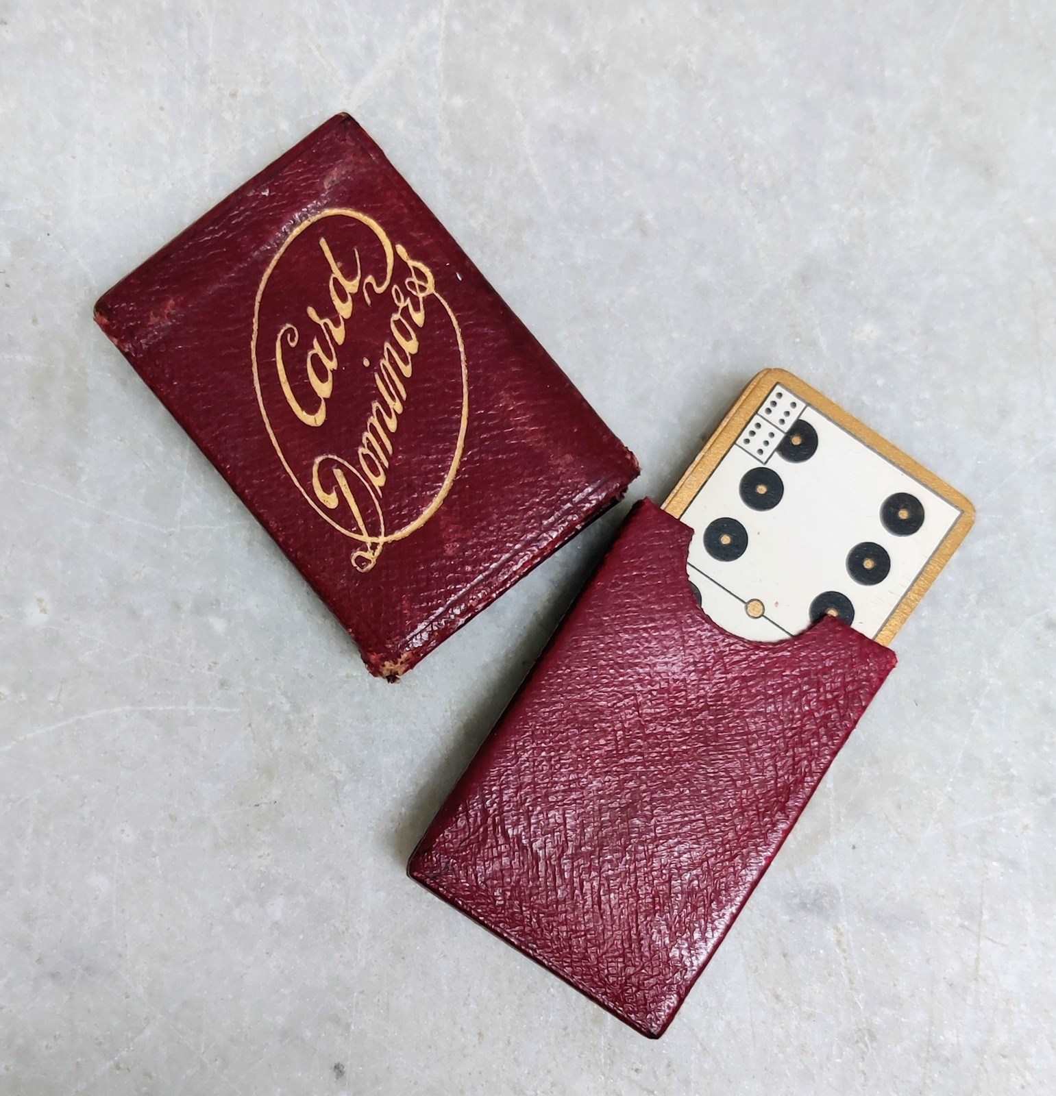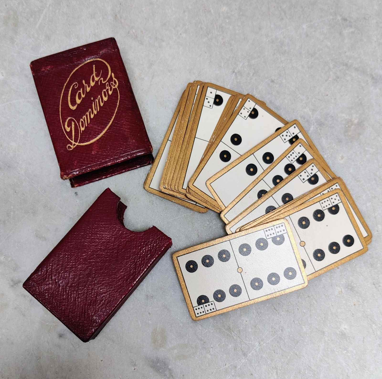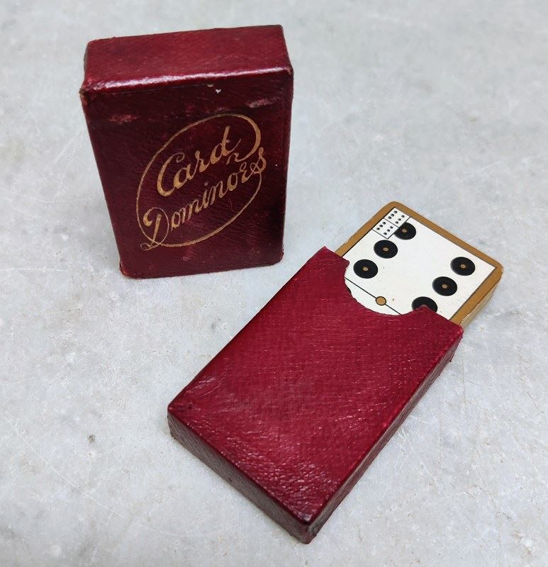 Leather bound box of "CARD DOMINOES'