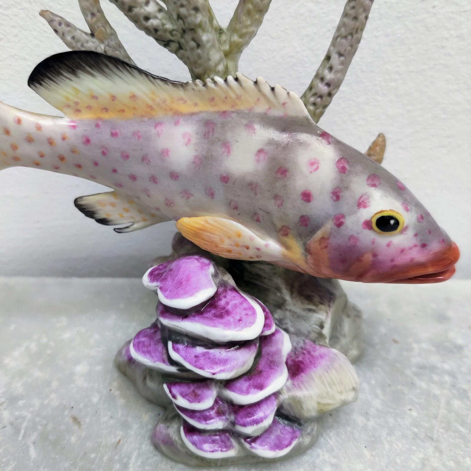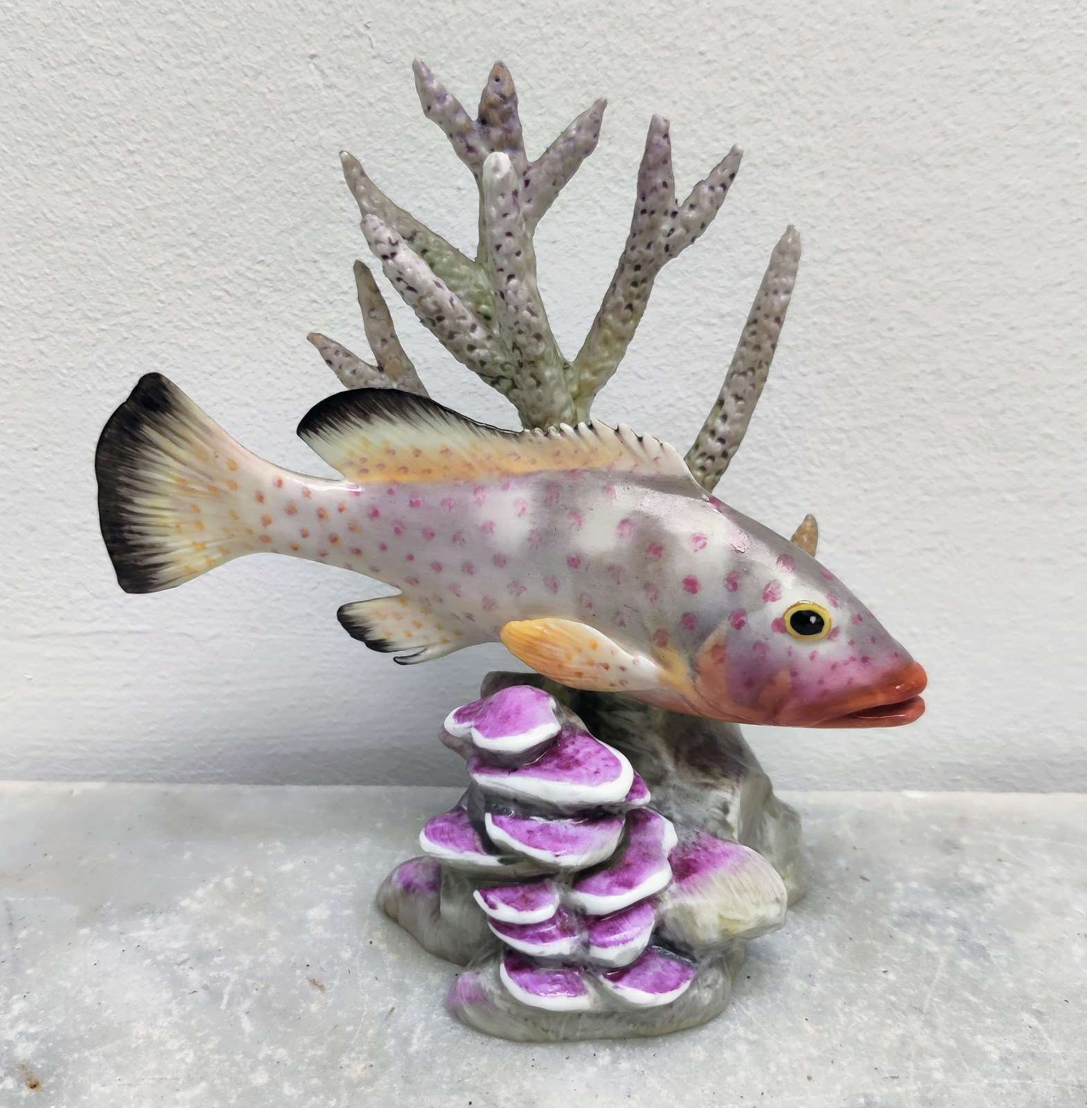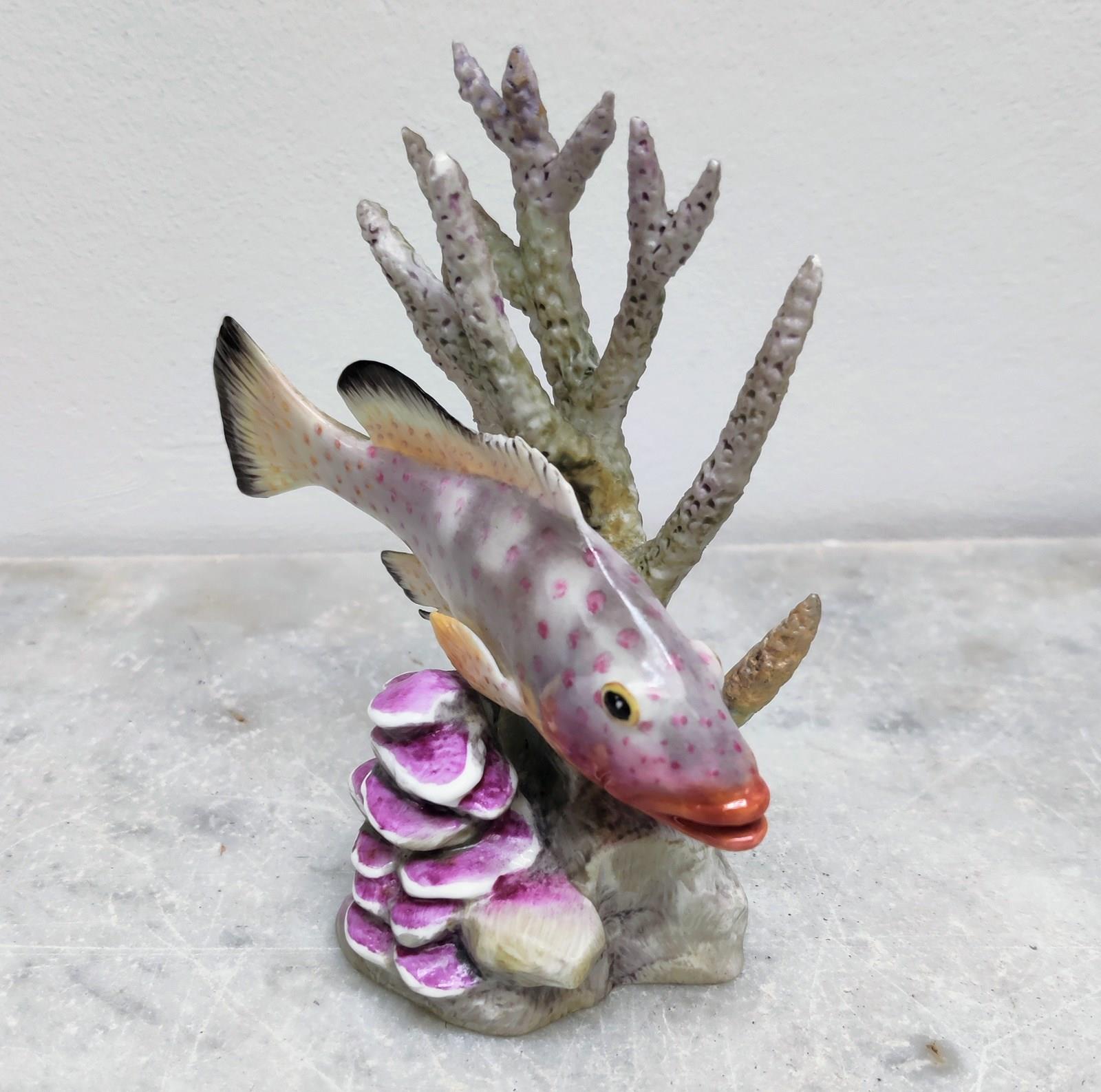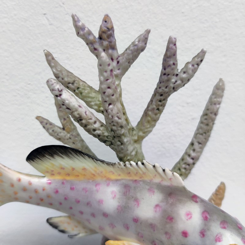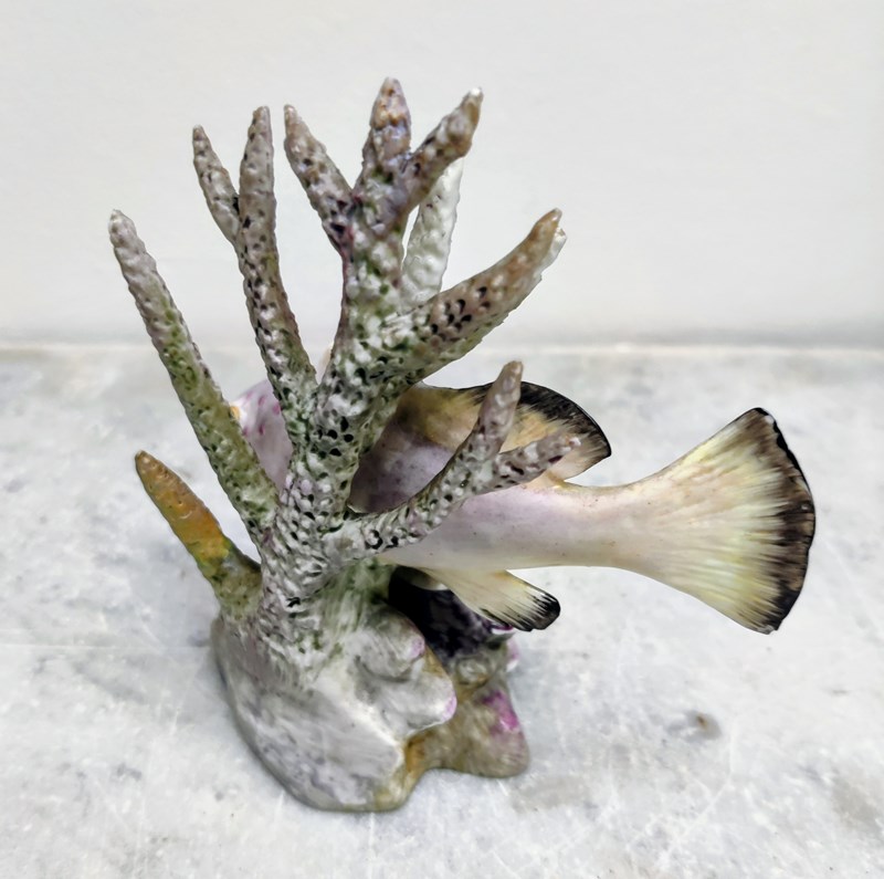 Beautiful porcelain fish, portrayed swimming between seaweed and shells