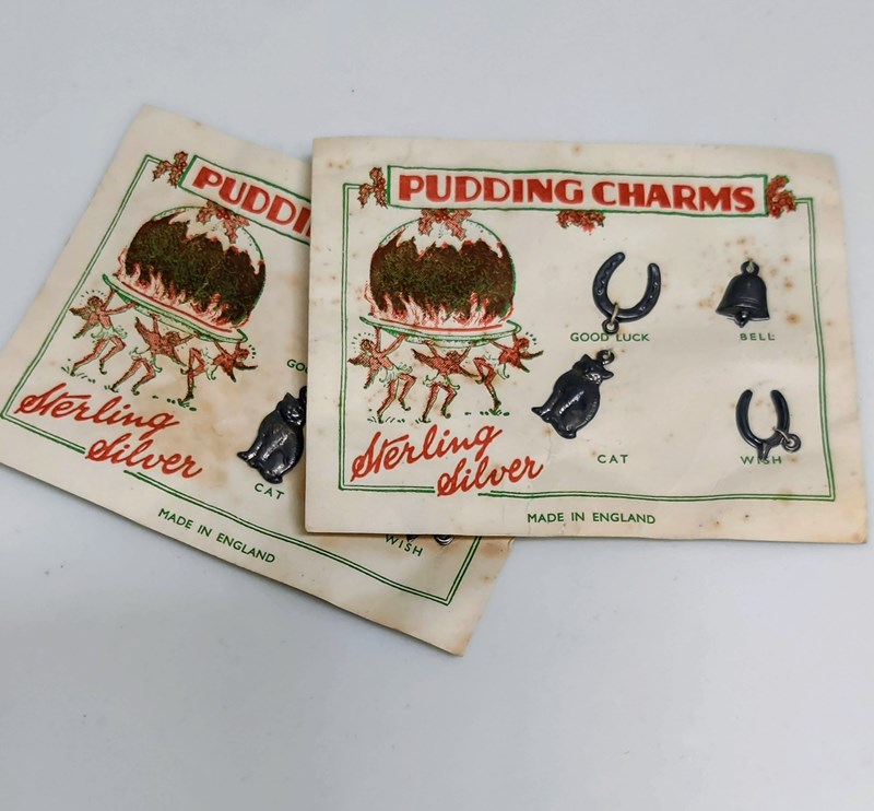 The Silver 'Charms' were cooked in the Christmas Pudding to bring good luck to the lucky finder/ swallower!