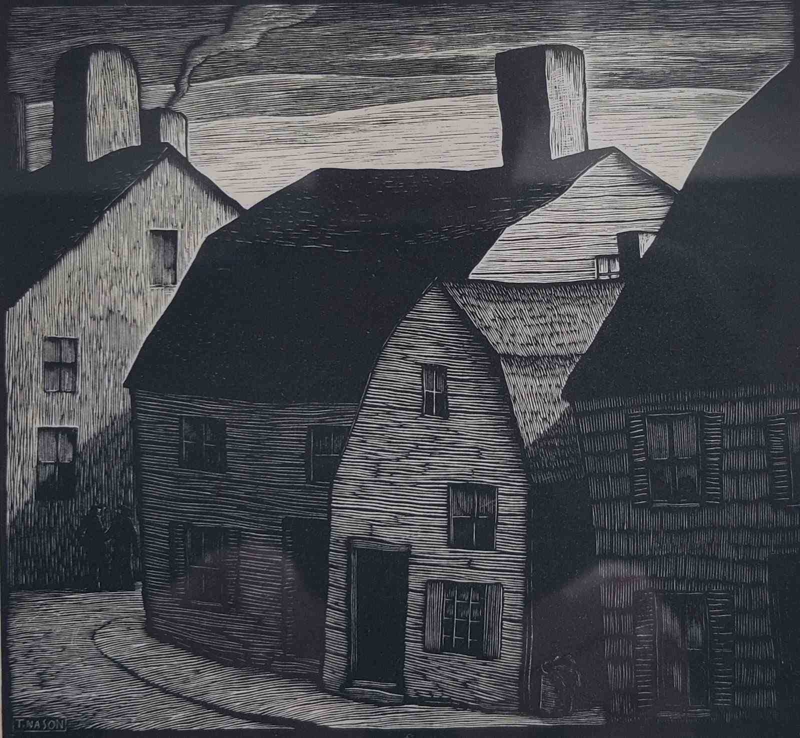 Stylish 1931 Woodcut of 'Sunday at Marblehead' by T Nason 1889-1971 USA