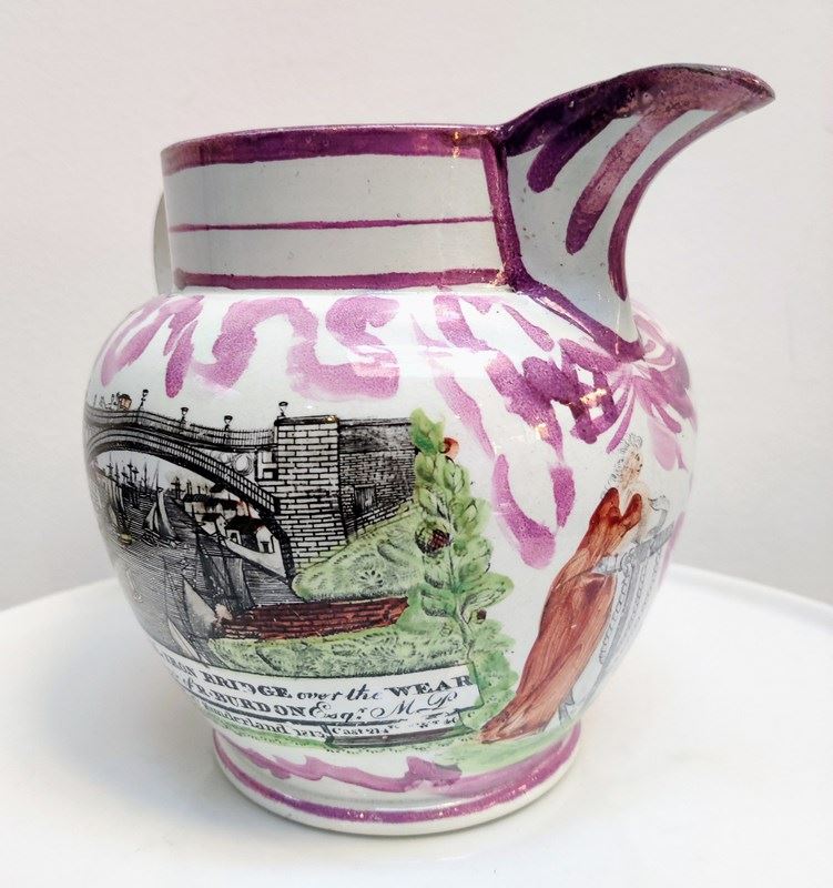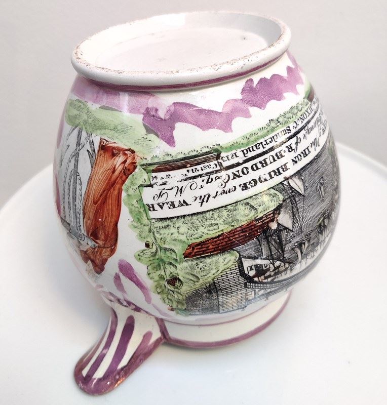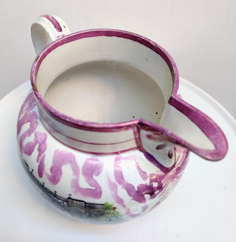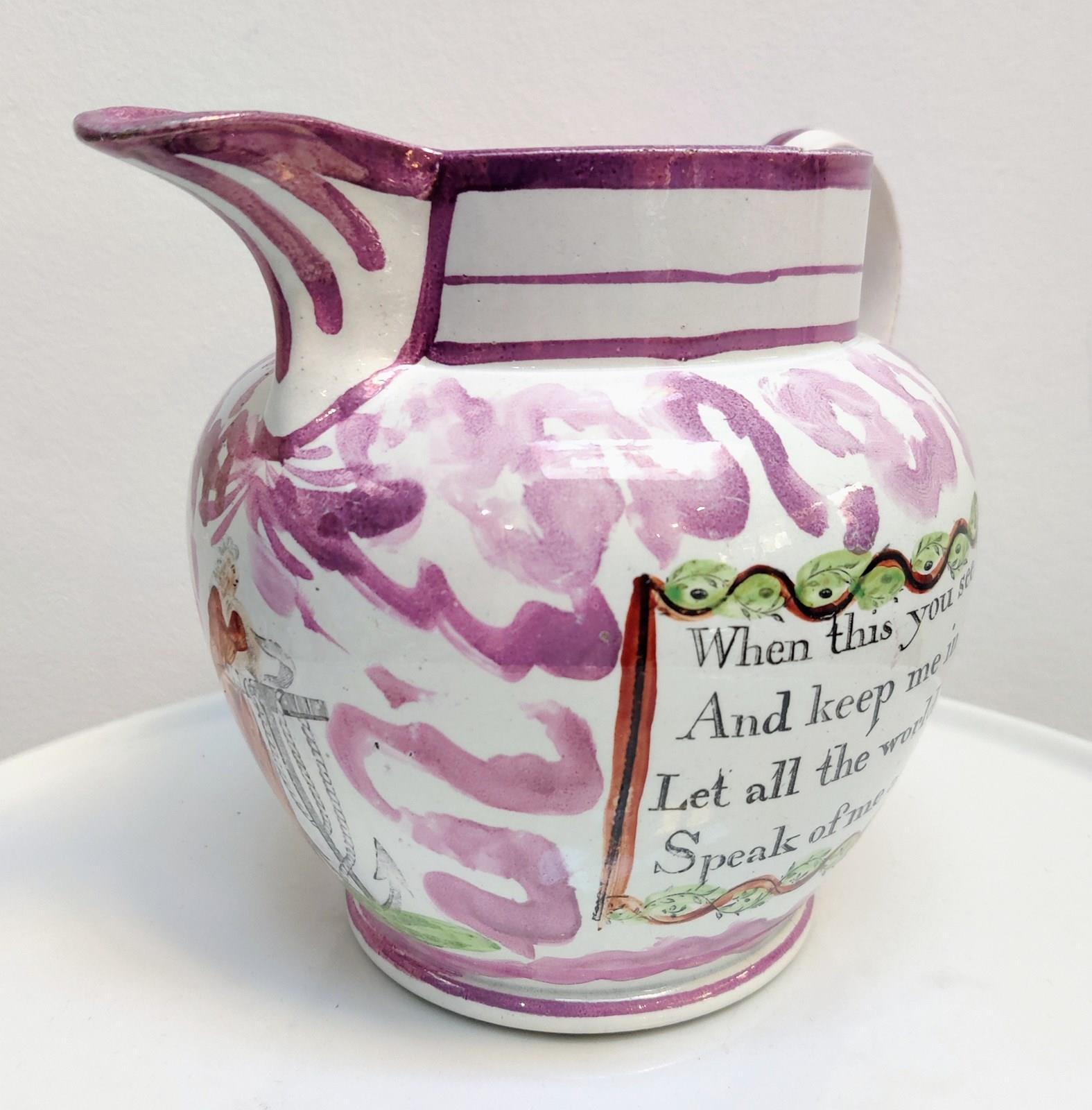 Under the spout- A lone figureof a woman in classical dress with an Anchor looking out to sea, possibly another common feature of these lustre jugs- A Sailor's Farewell'