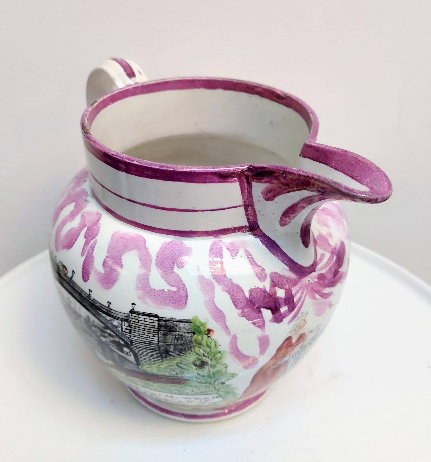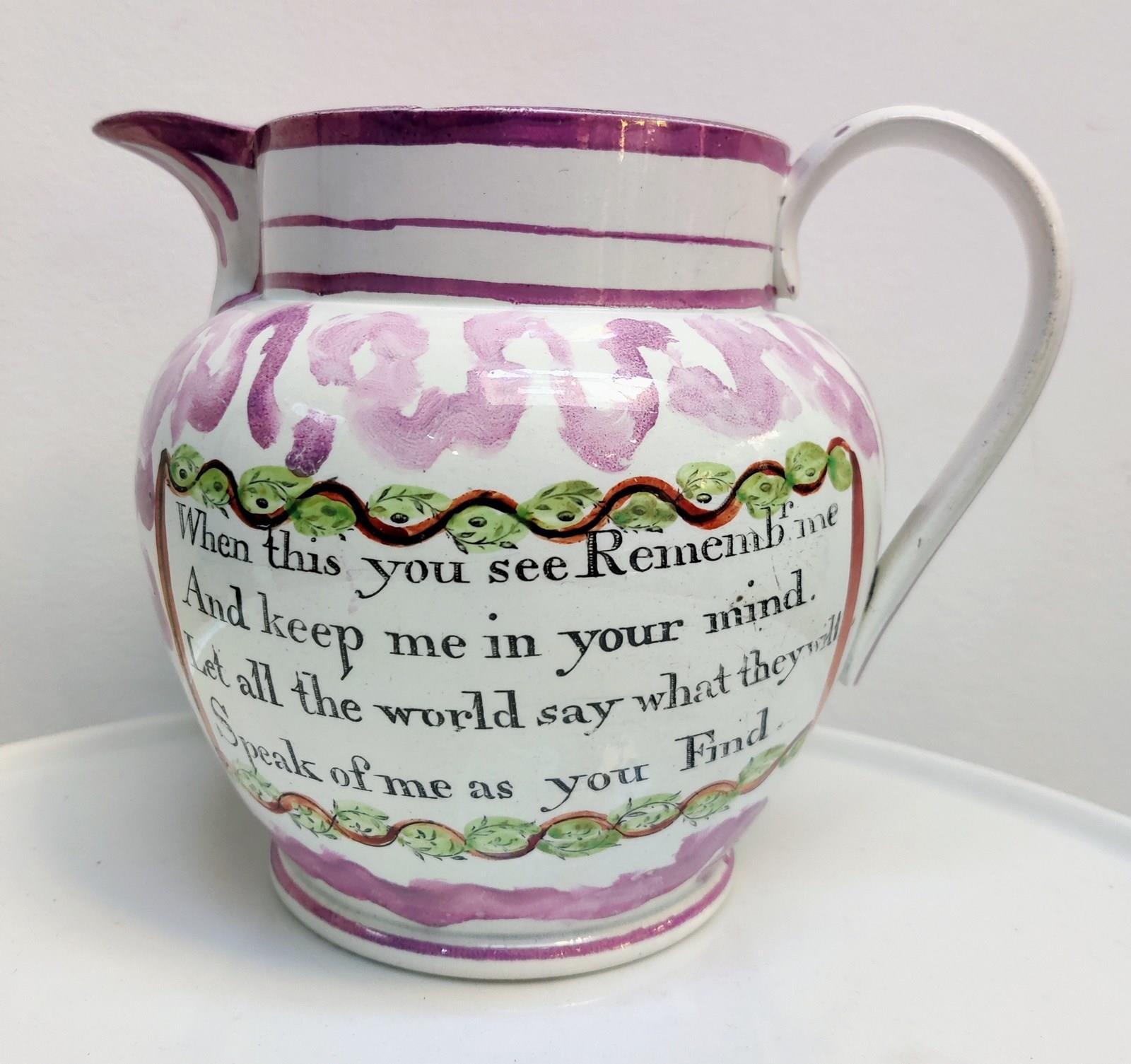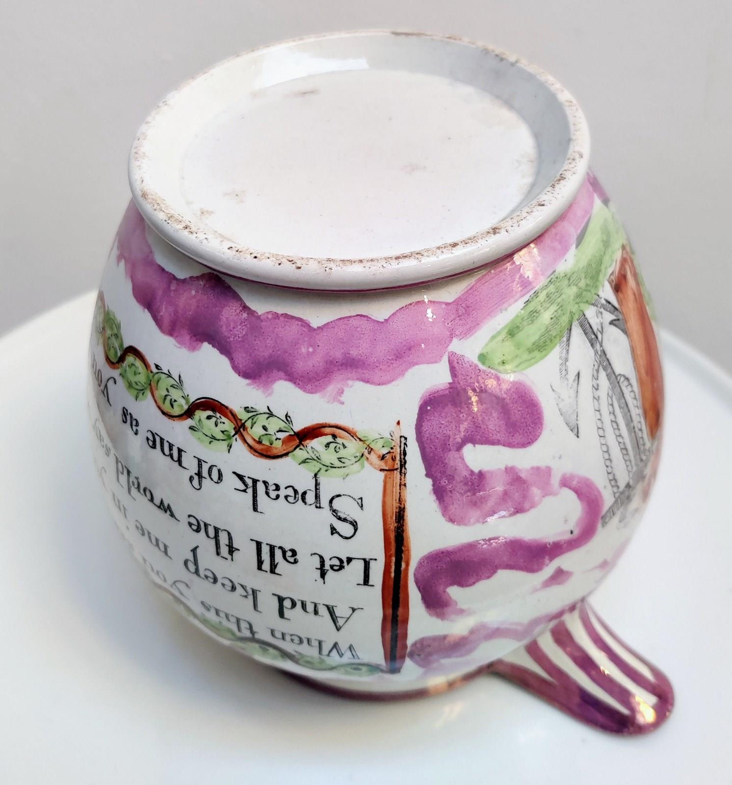 Under the spout- A lone figureof a woman in classical dress with an Anchor looking out to sea, possibly another common feature of these lustre jugs- A Sailor's Farewell'