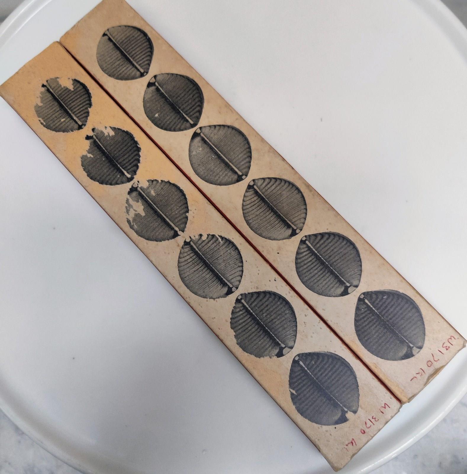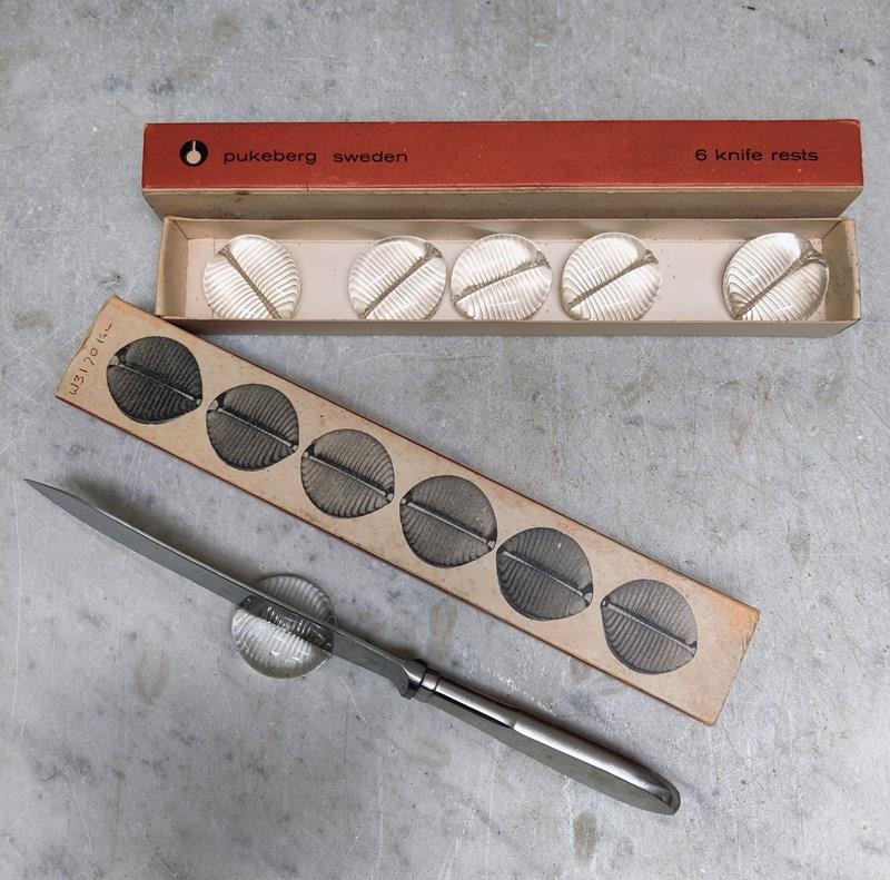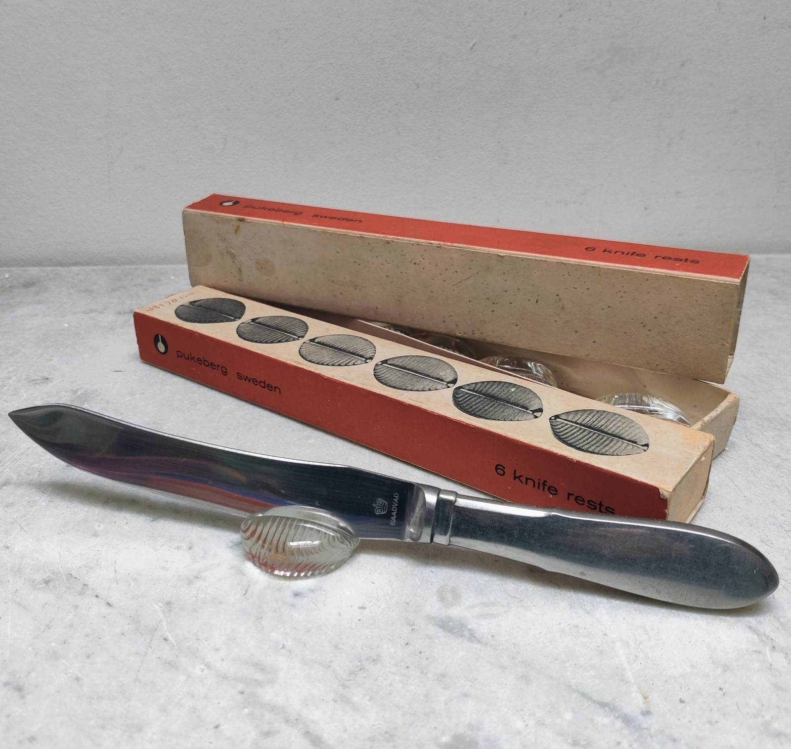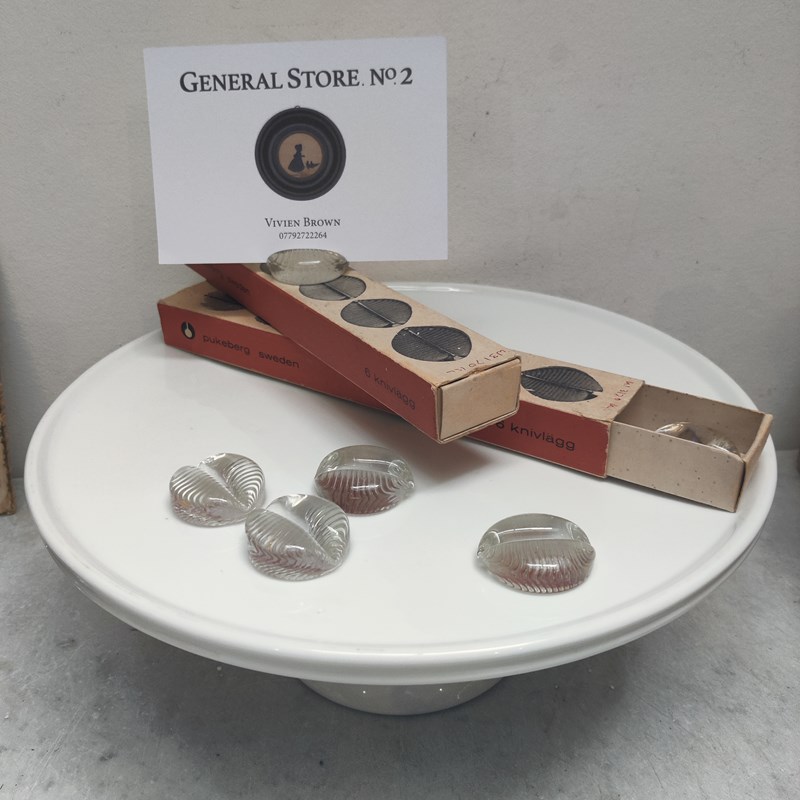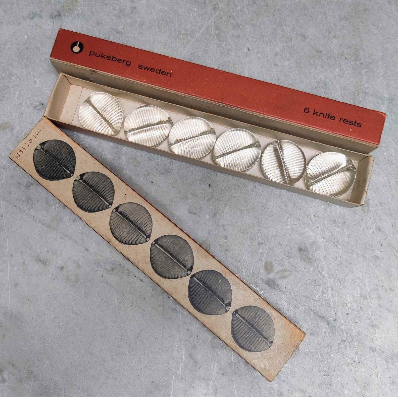 A pair of boxed sets of 6 stylish moulded glass knife rests, moulded as Cowrie Shells