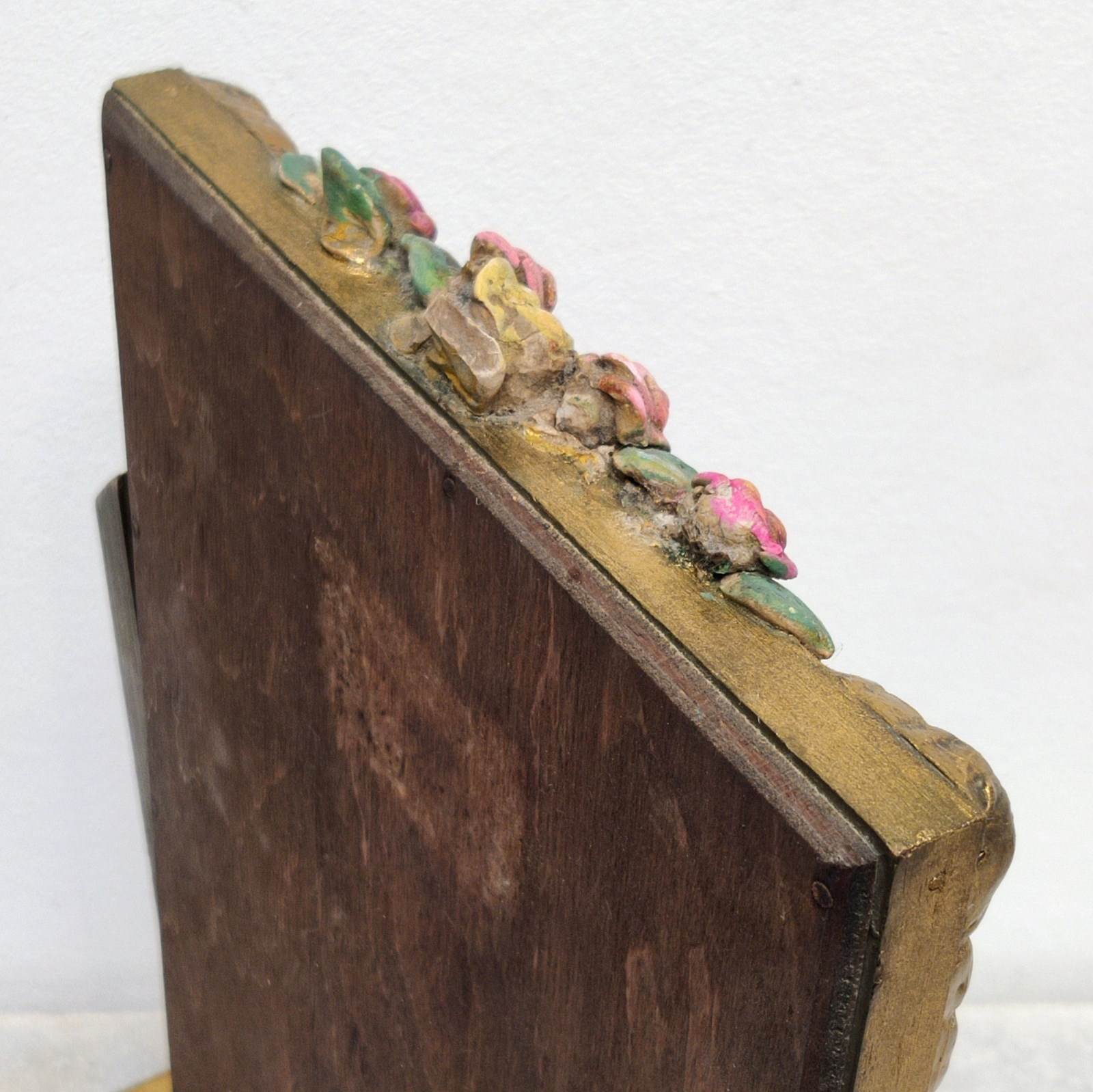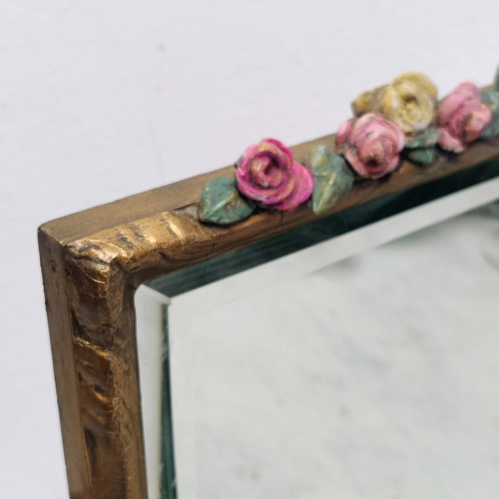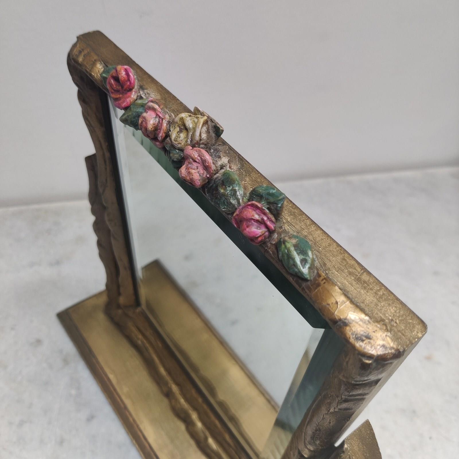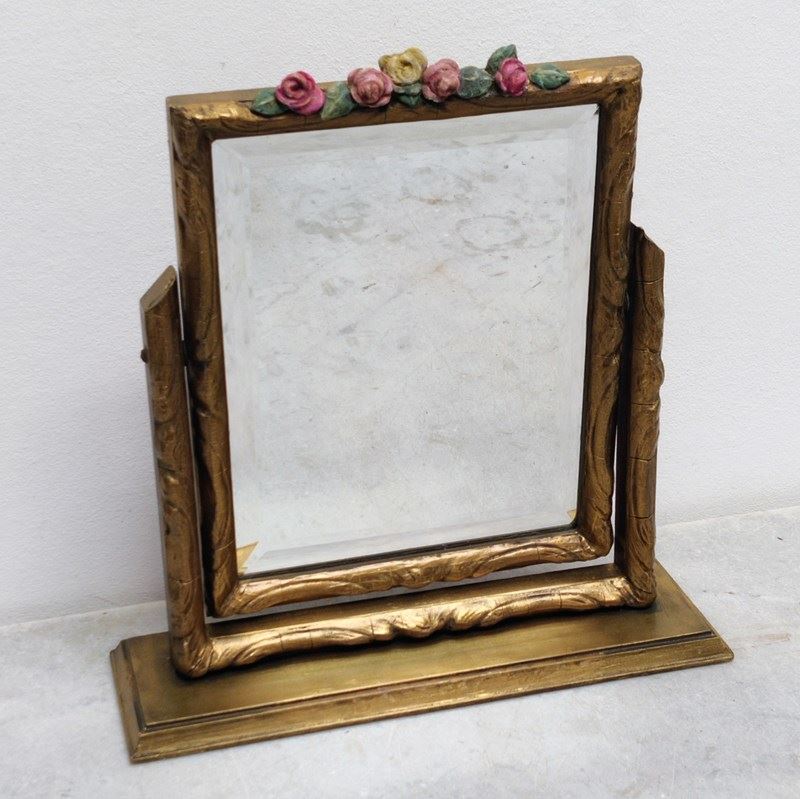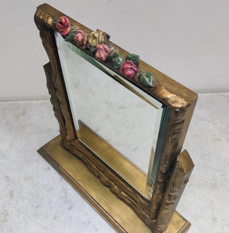 Pretty Art Deco dressing table-top Barbola mirror with bevelled glass