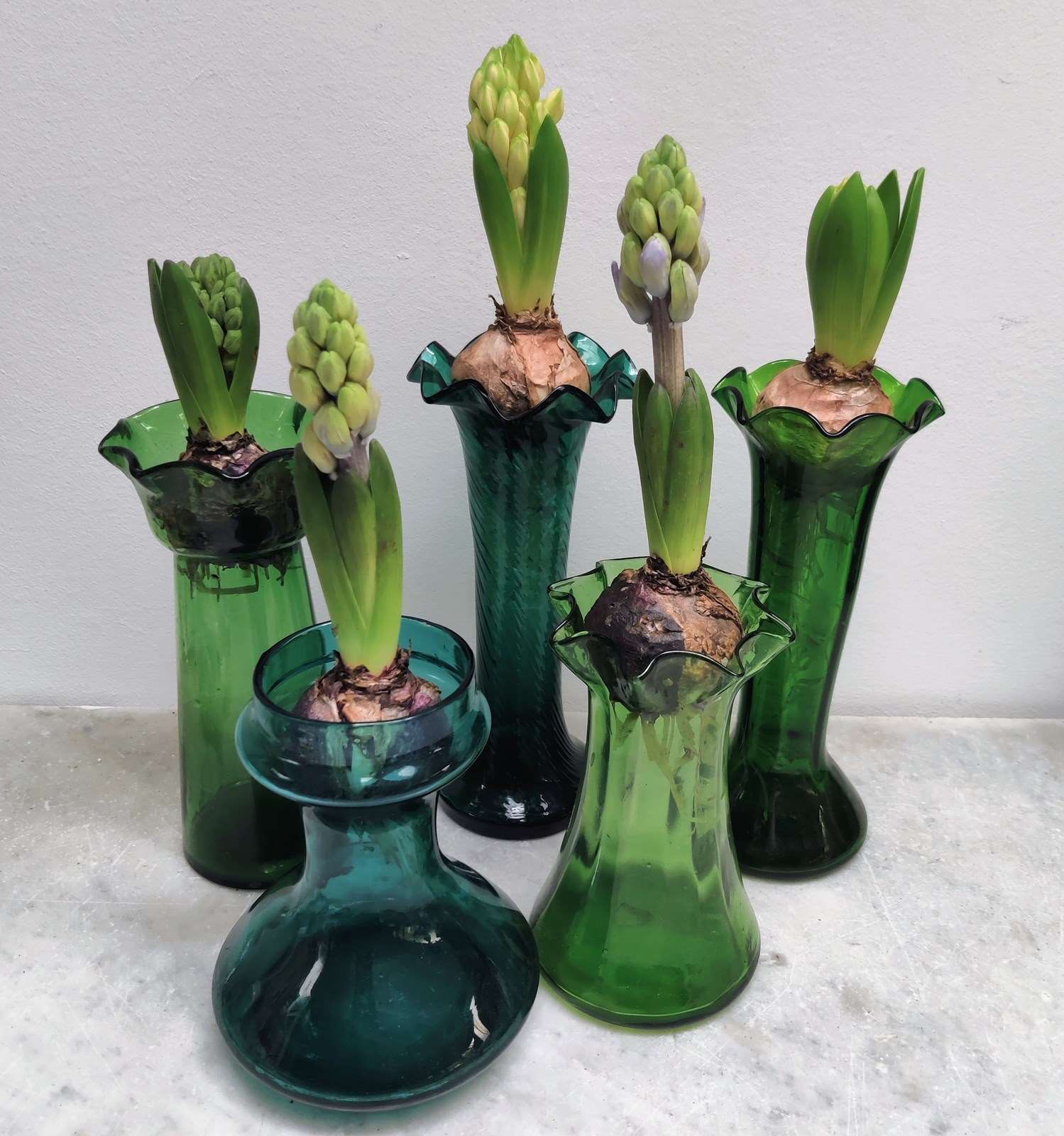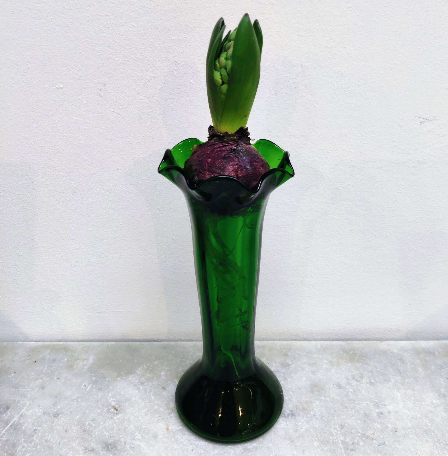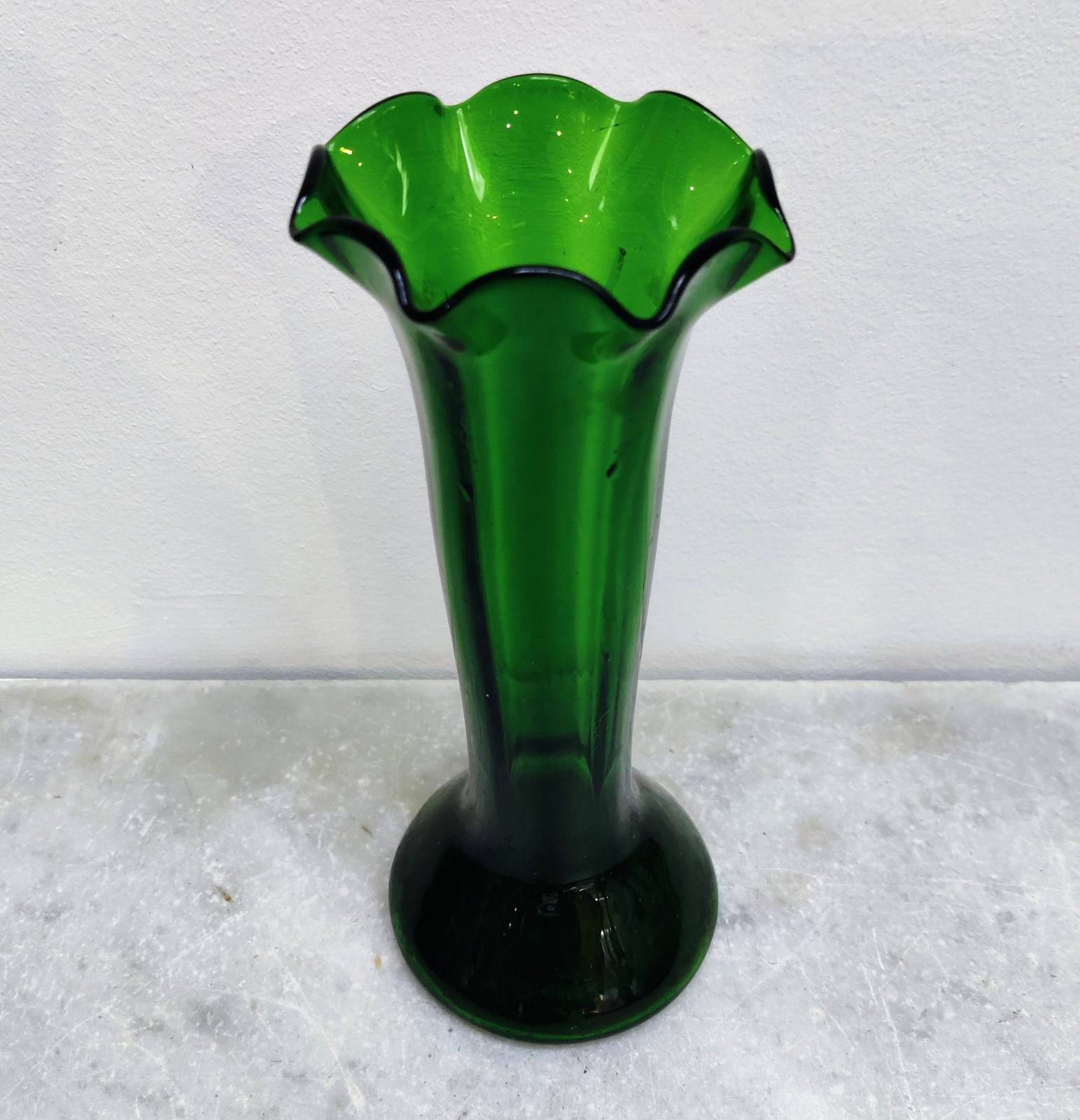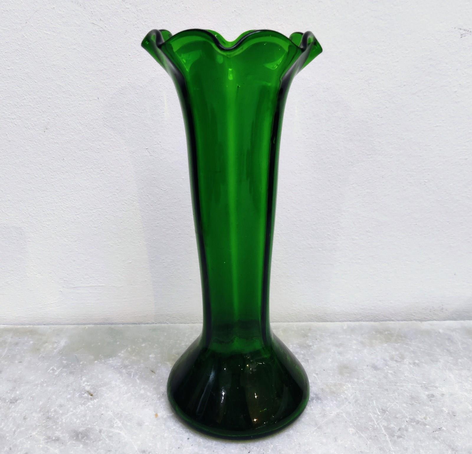 A tall, deep Grass Green bulb vase with a pretty fluted top