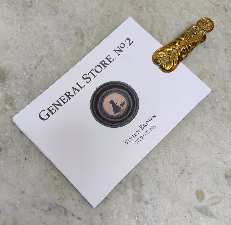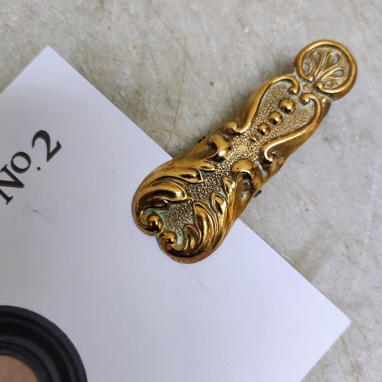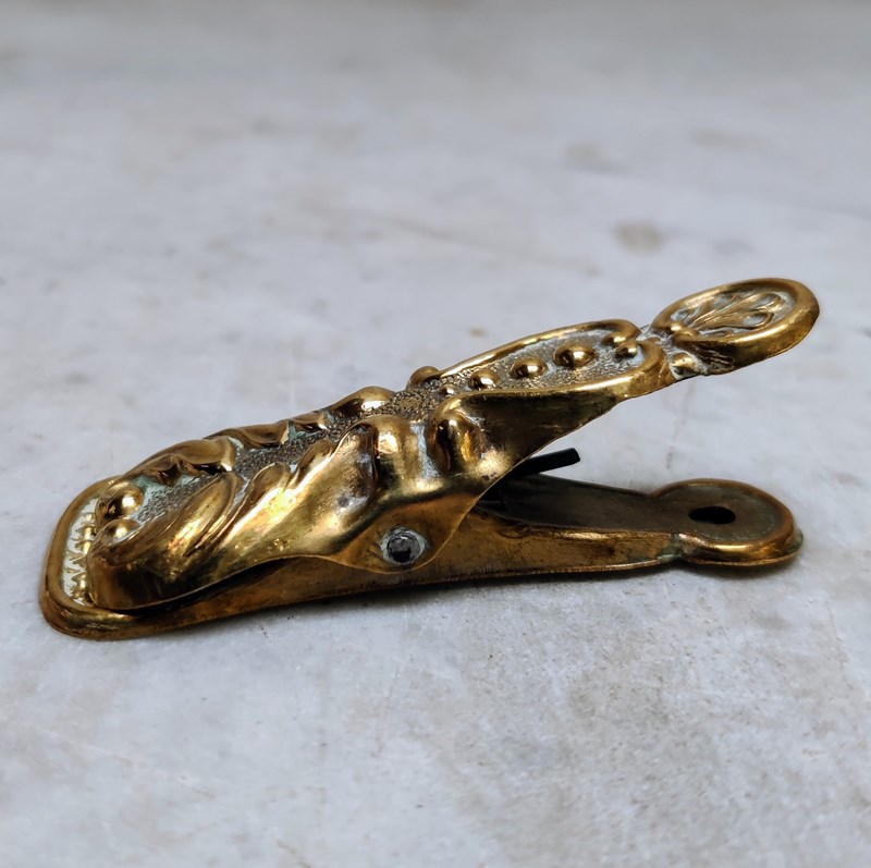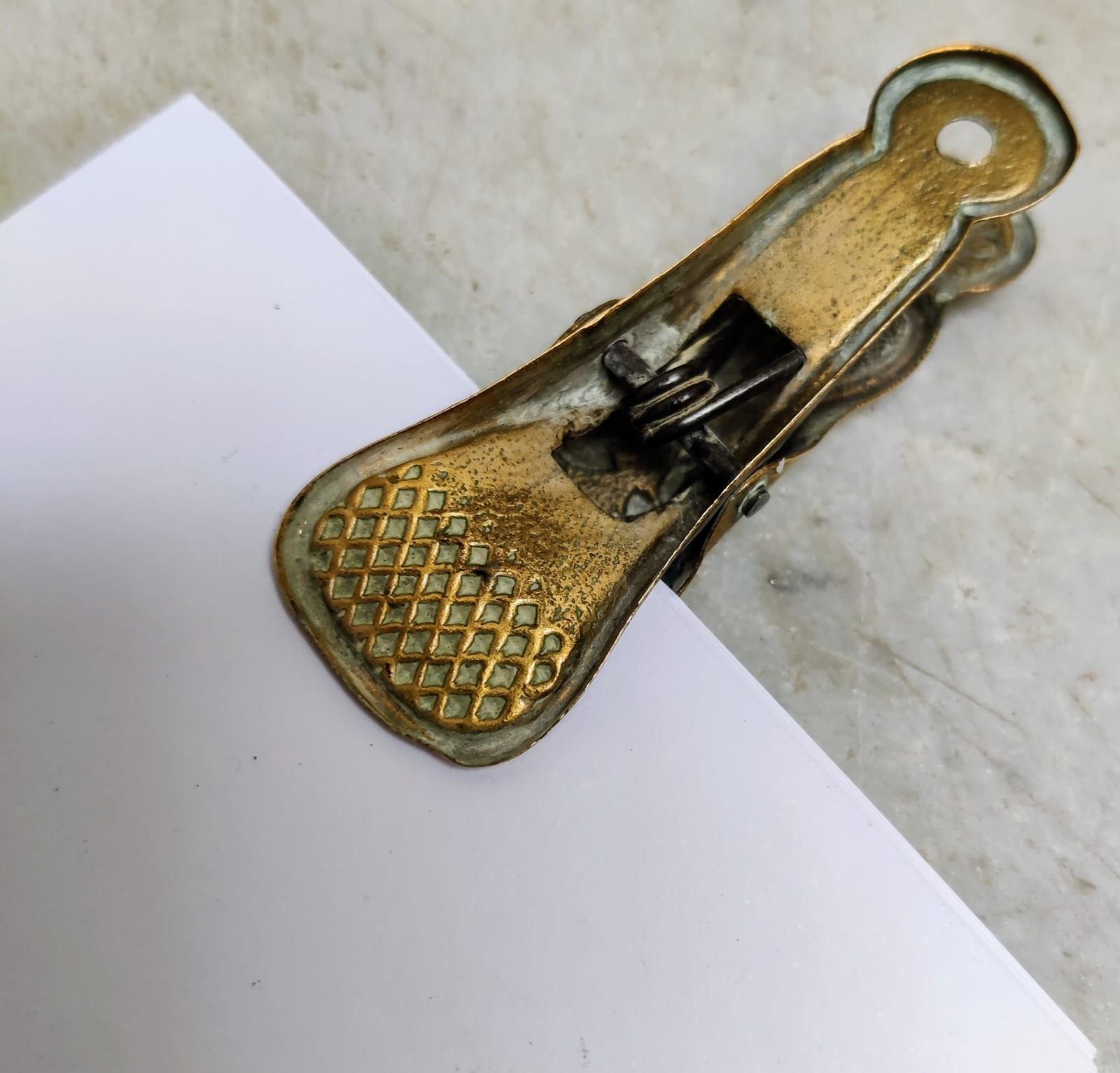 Tiny & charming, very ornate pressed brass Victorian note clip