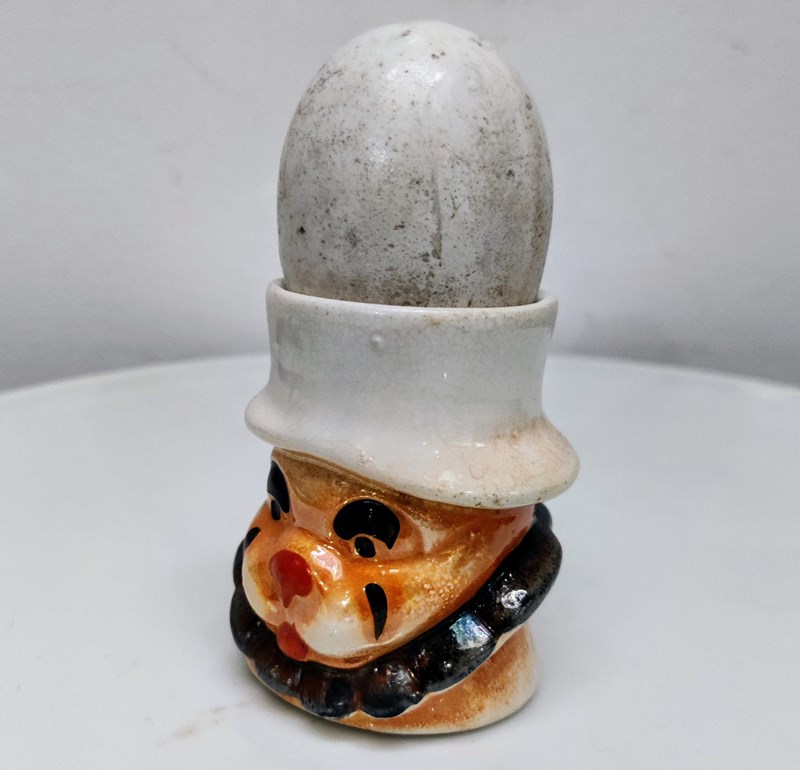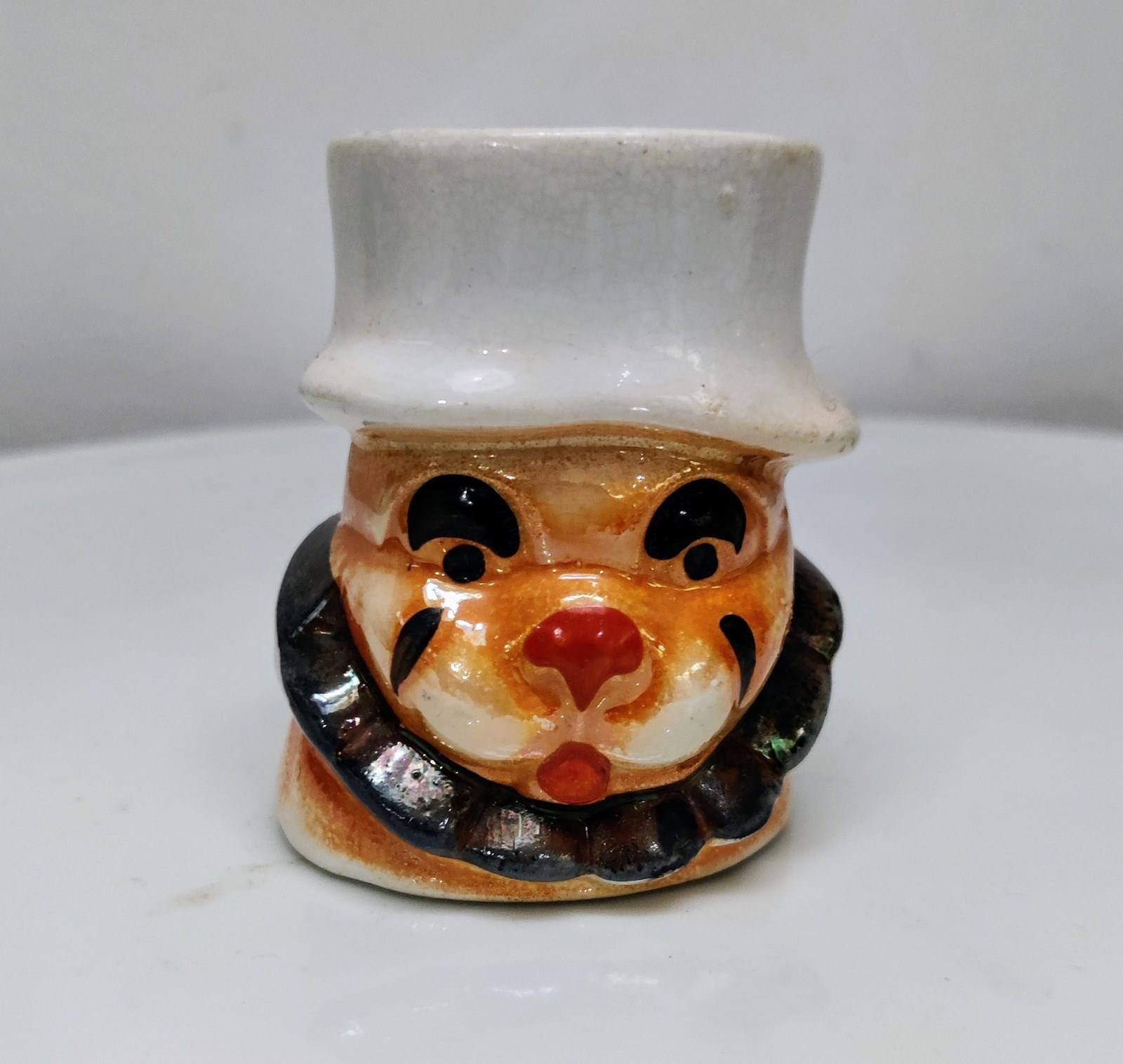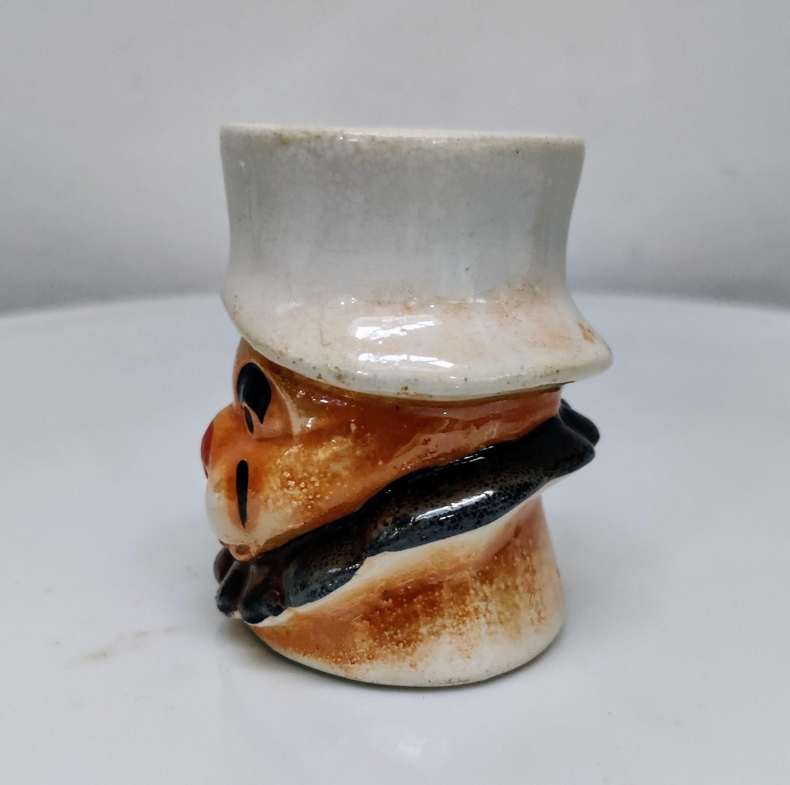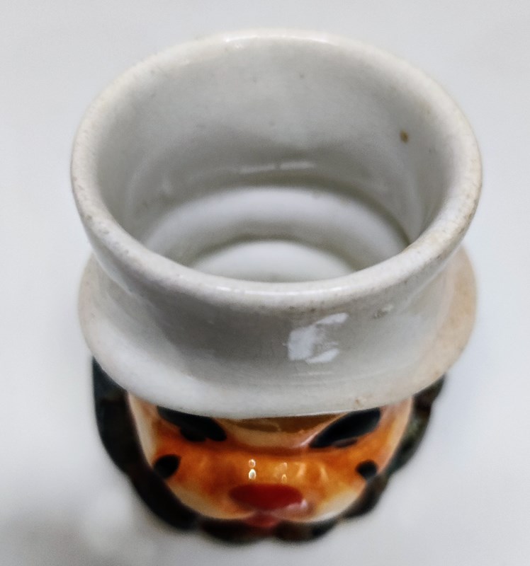 1930's china egg cup, depicting 'Toby' the dog from the 'Punch and Judy' shows