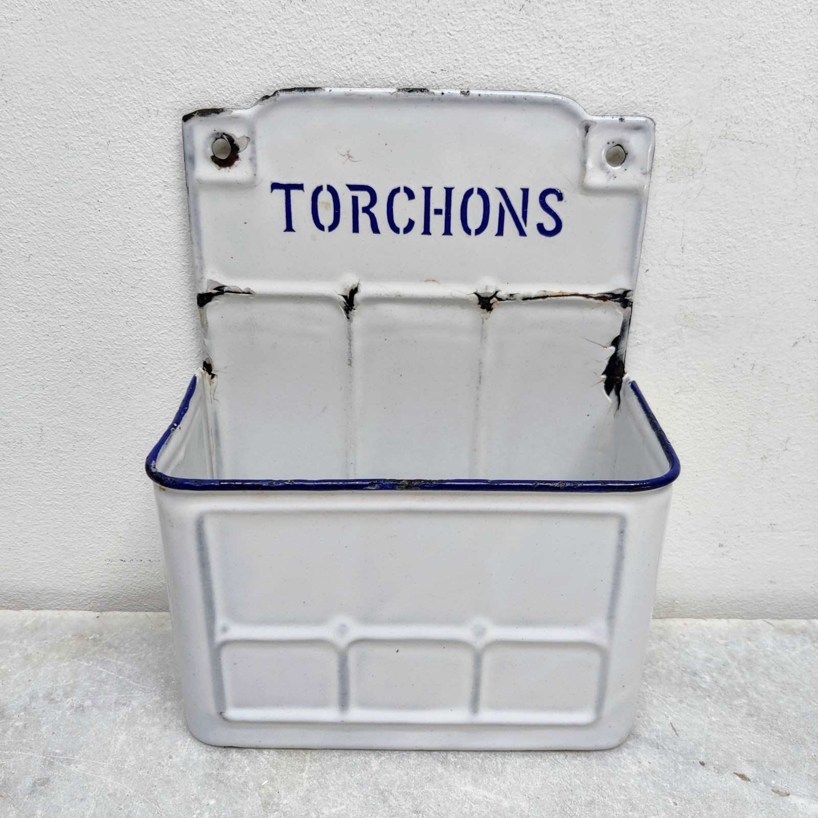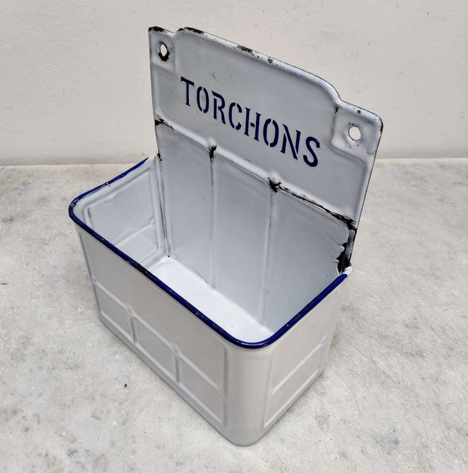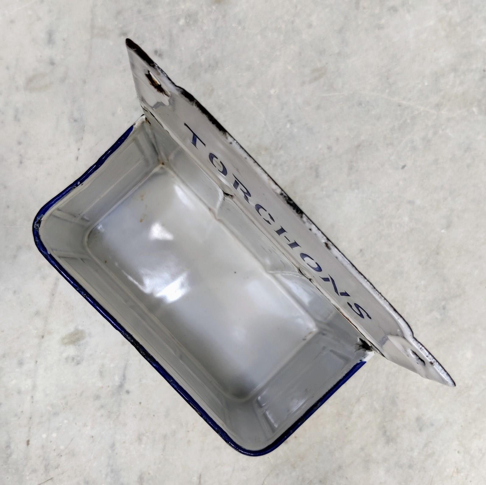 Unusual but useful, French enamel 'Torchons'- napkin holder
