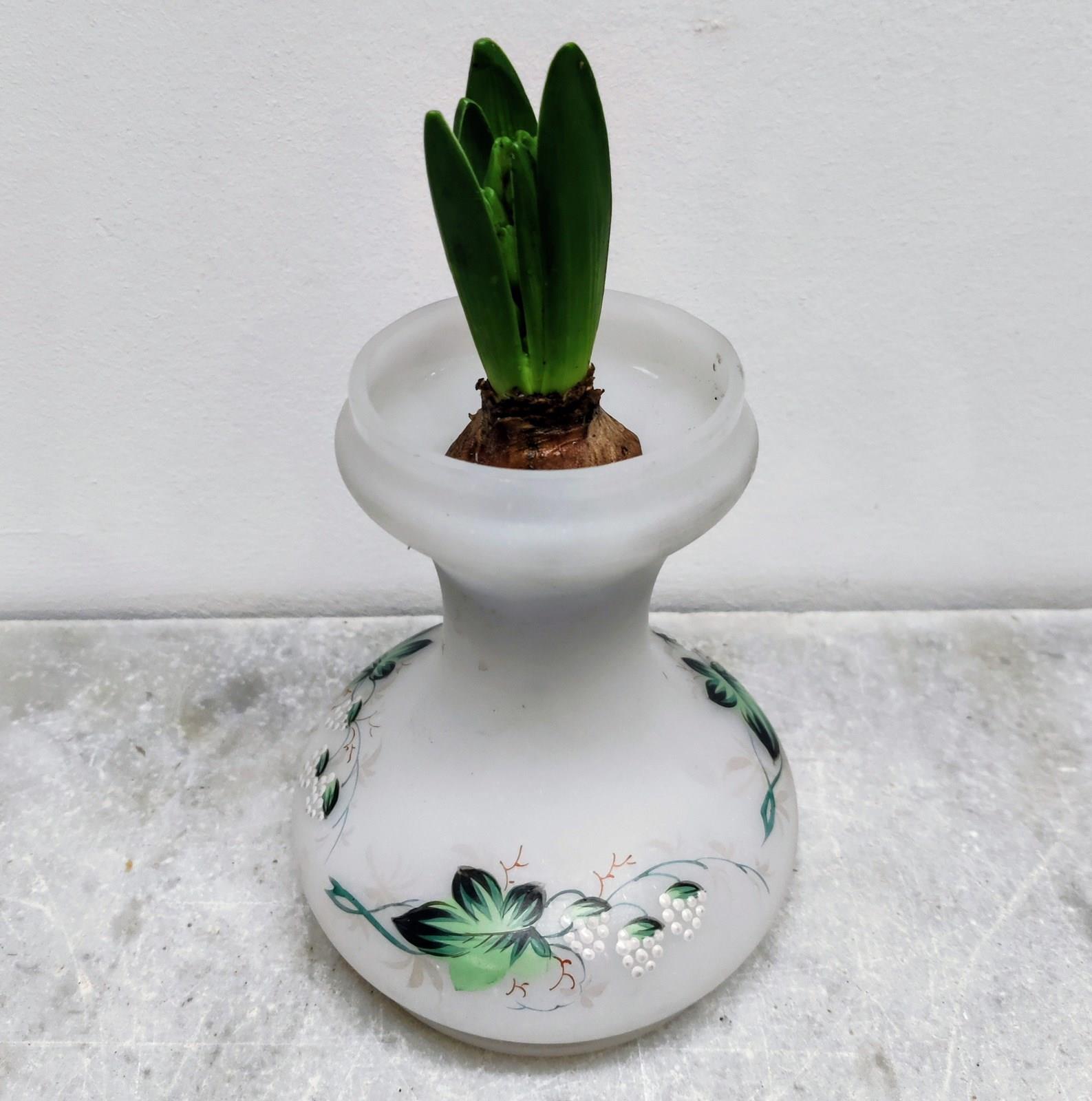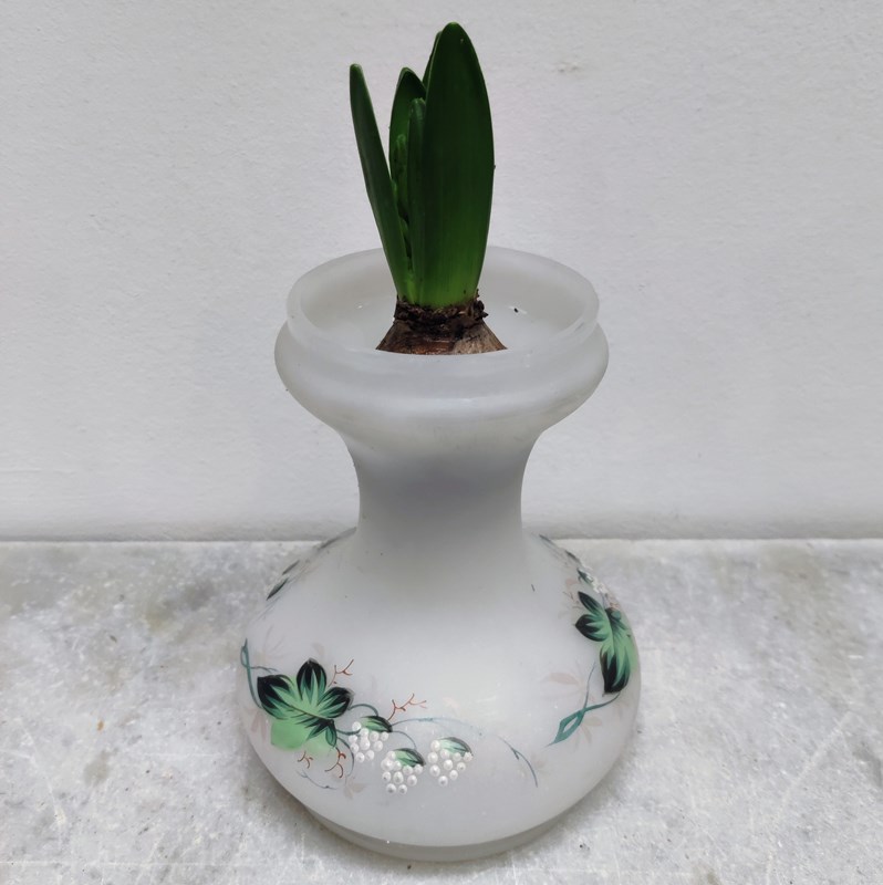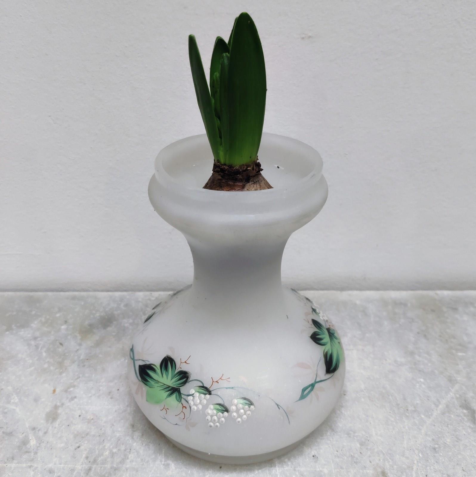 White Frosted Glass Hand Painted Bulb Vase