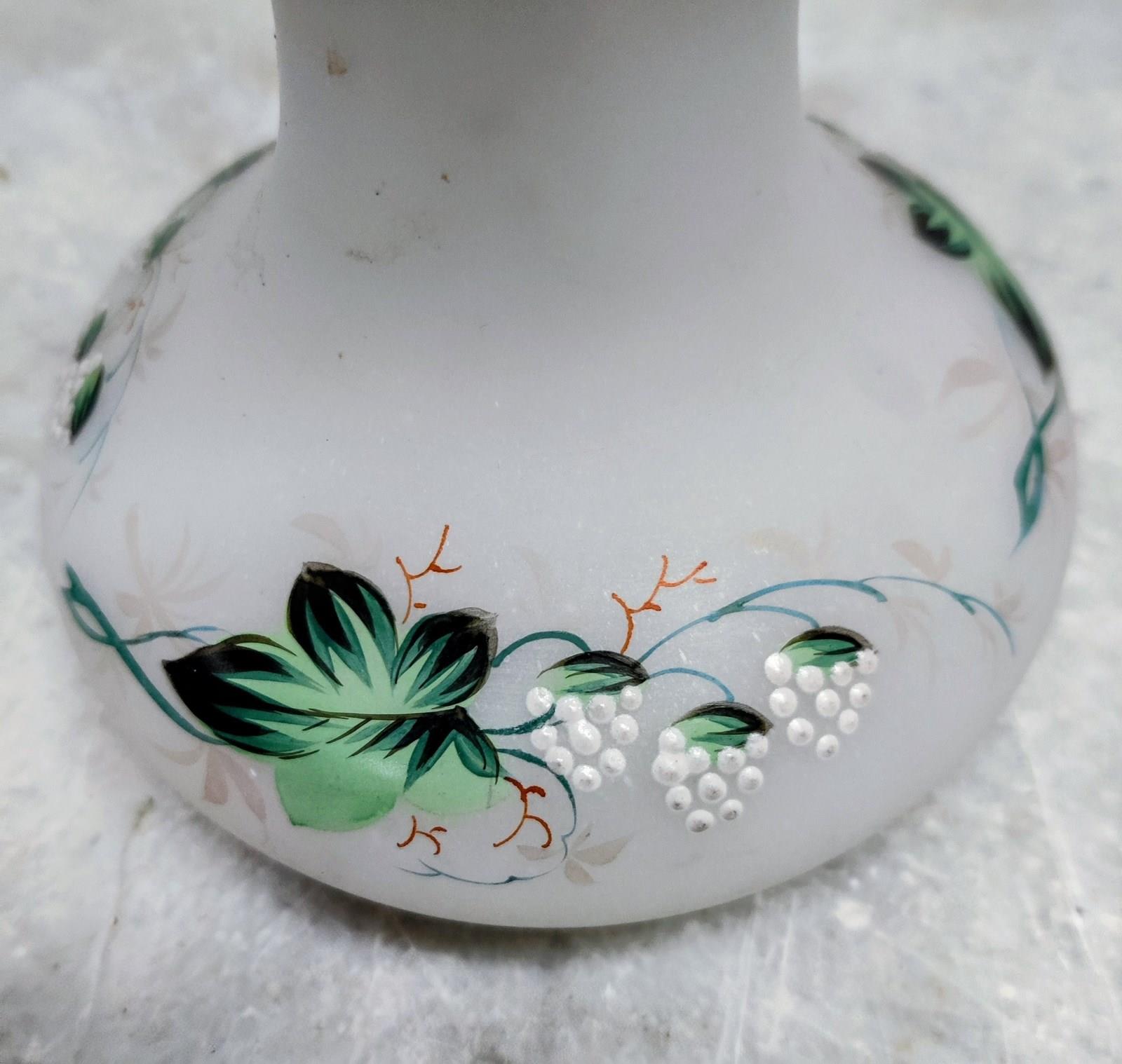 Lovely White Frosted bulb vase with a garland of hand painted white grapes and vine leaves