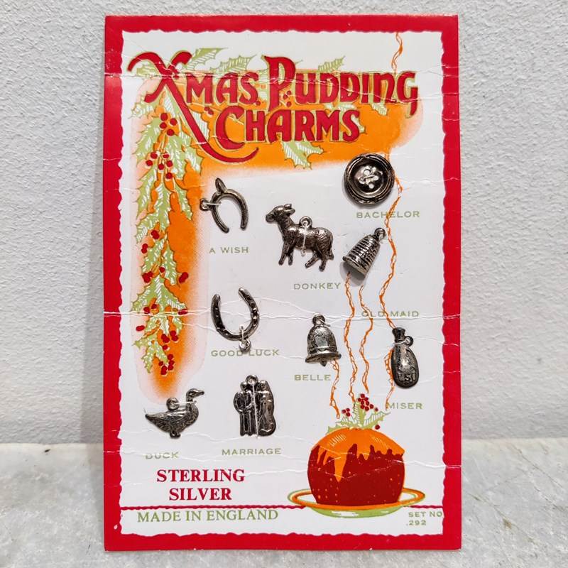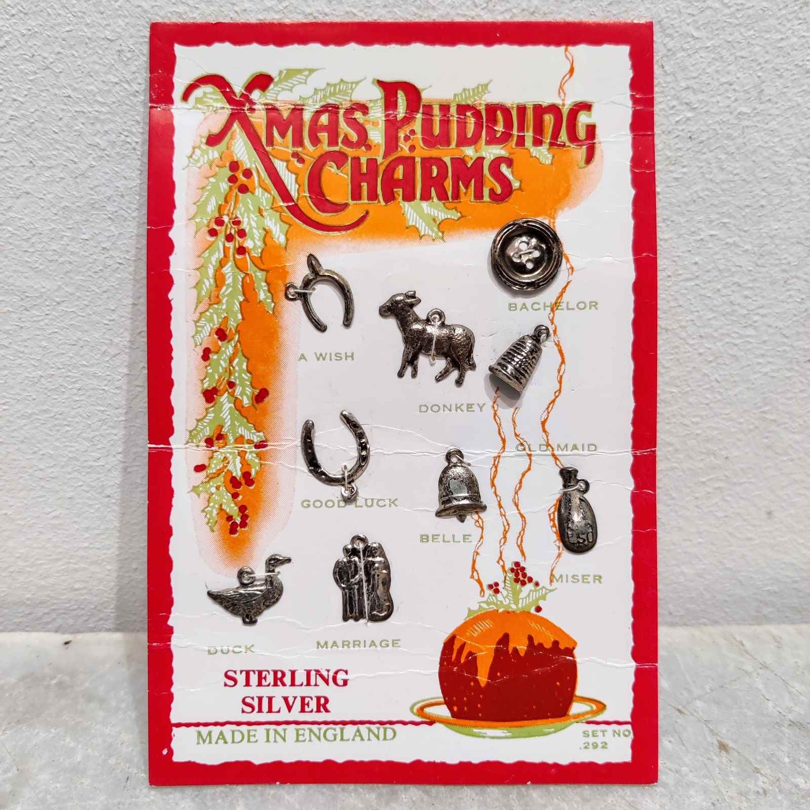 'XMAS PUDDING CHARMS' in Sterling Silver on it's original card
