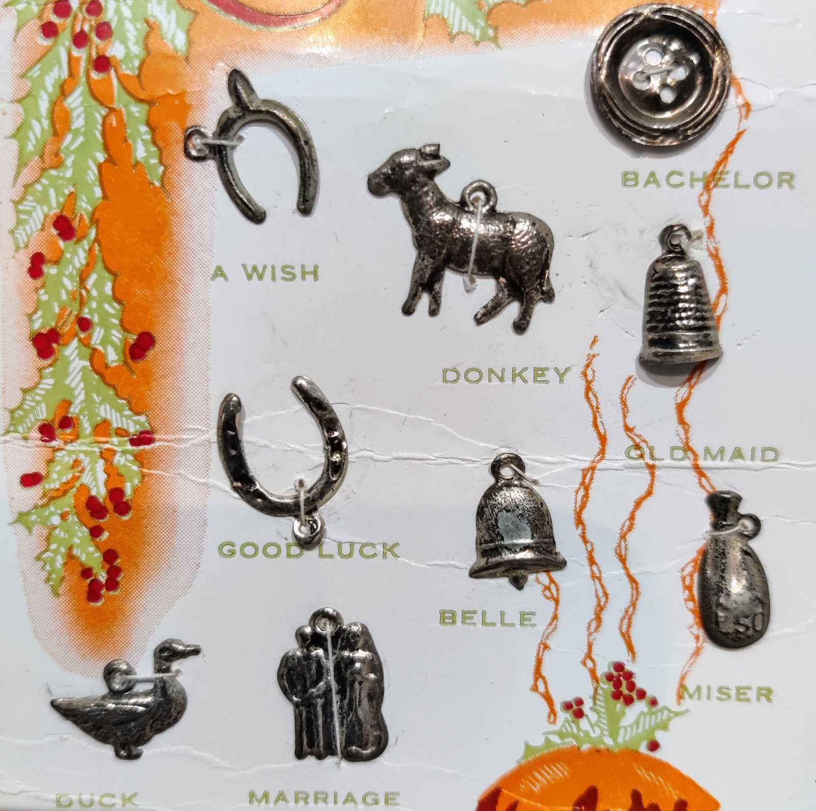 These 9 Silver 'Charms' were cooked in the Christmas Pudding to bring good luck to the lucky finder/ swallower!