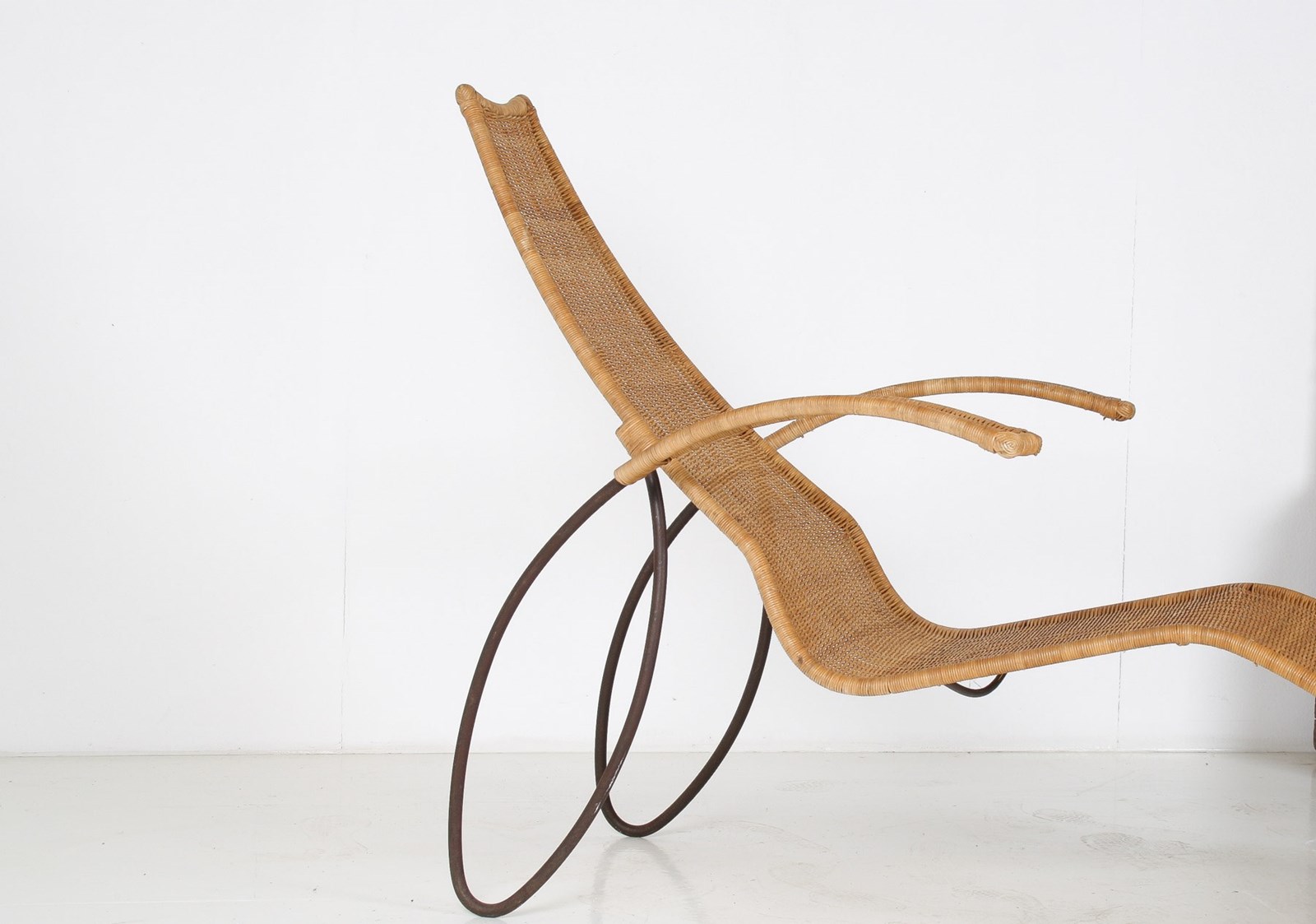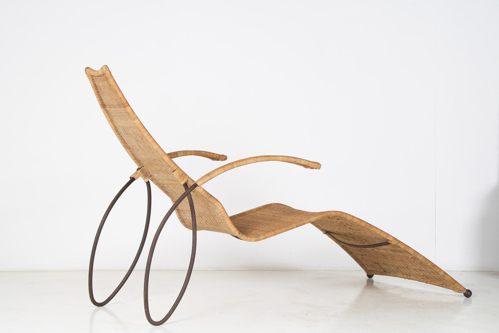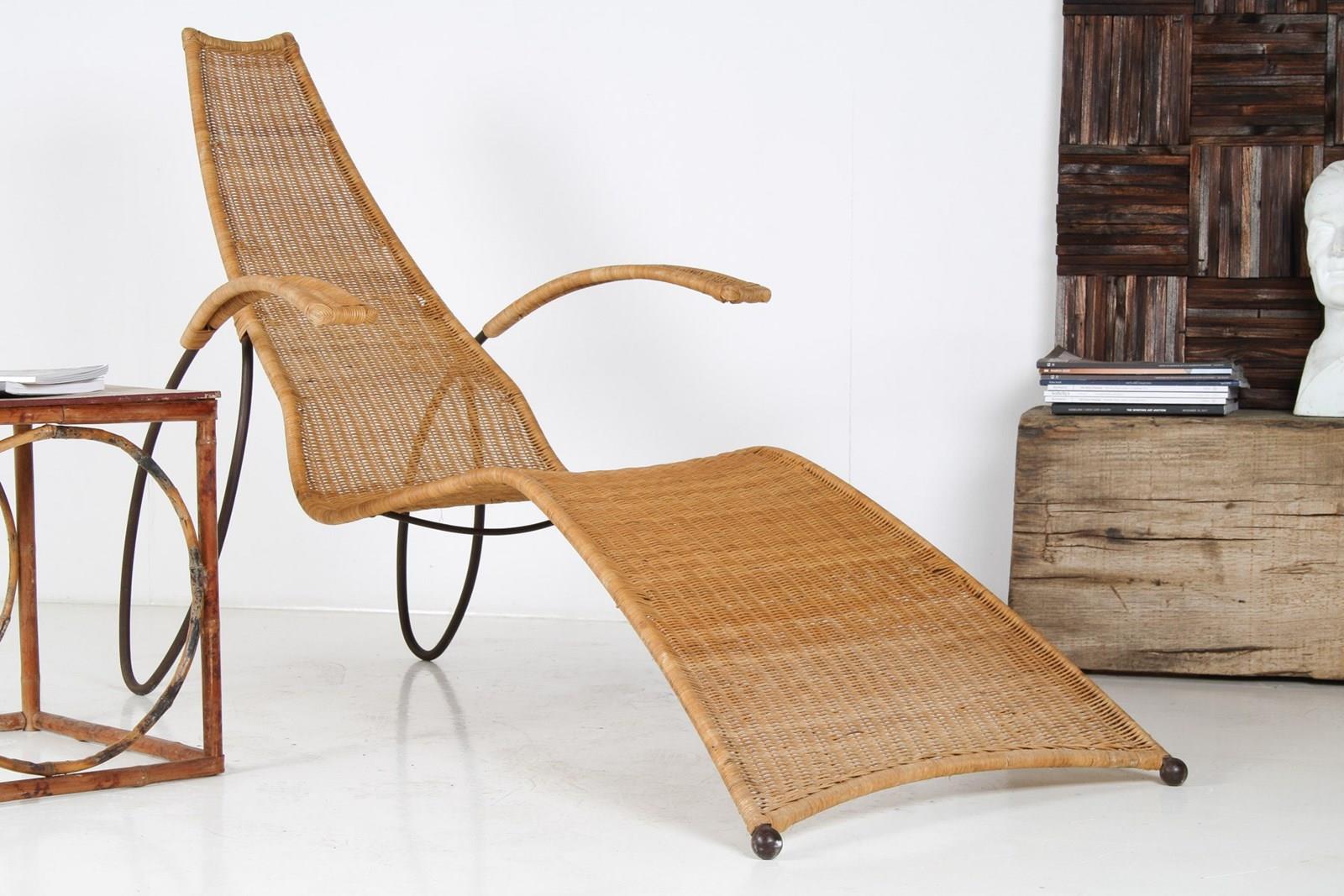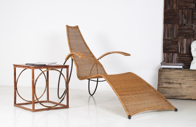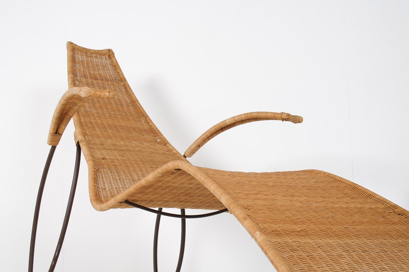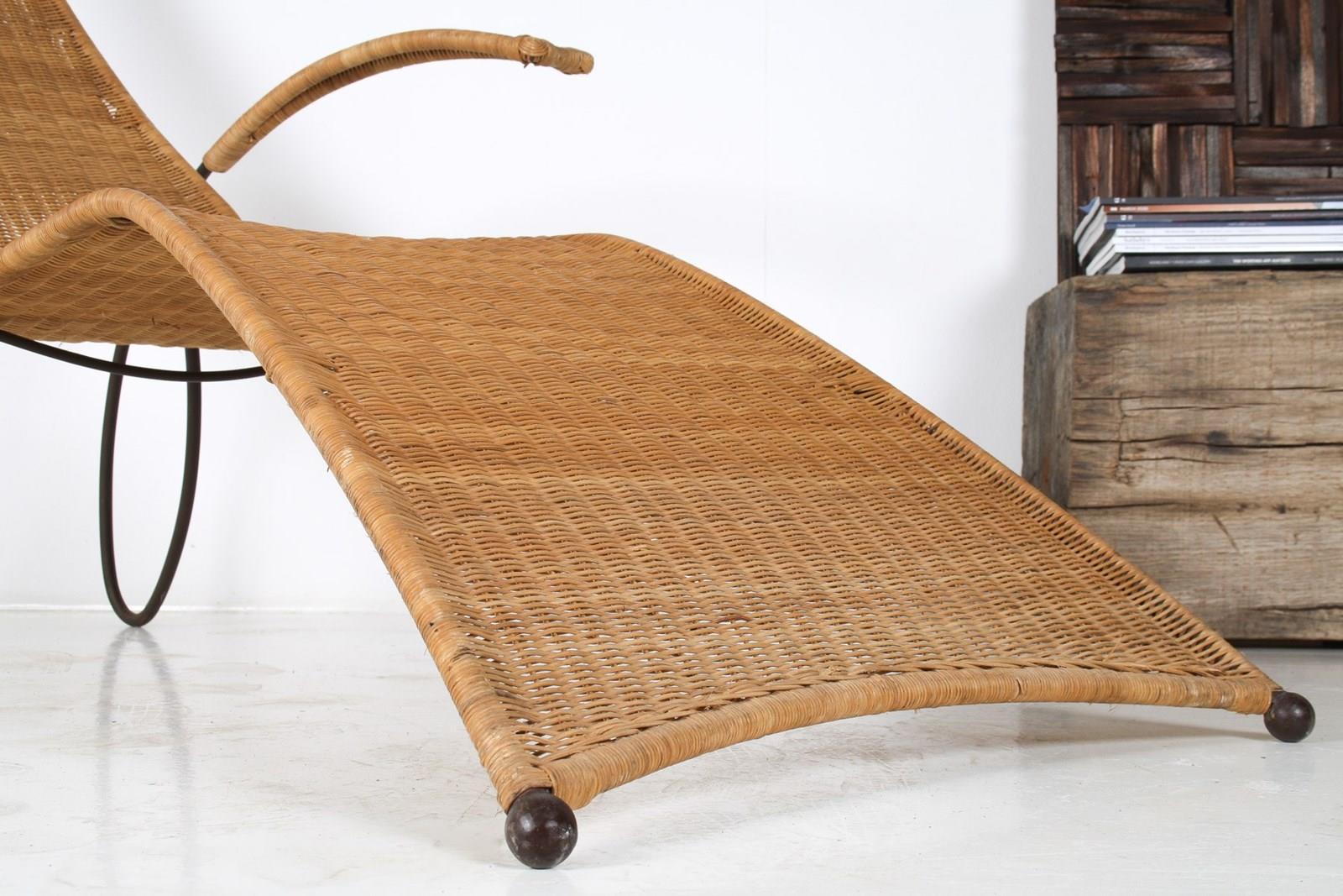 1930S Modernist Wrought Iron Frame Wicker Sun Longer Chaise