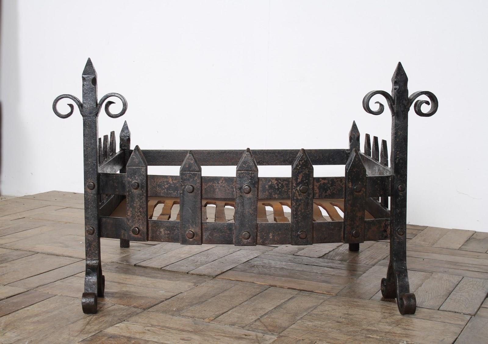 An impressive wrought iron fire basket with superb craftsmanship reclaimed from the Welsh Borders.